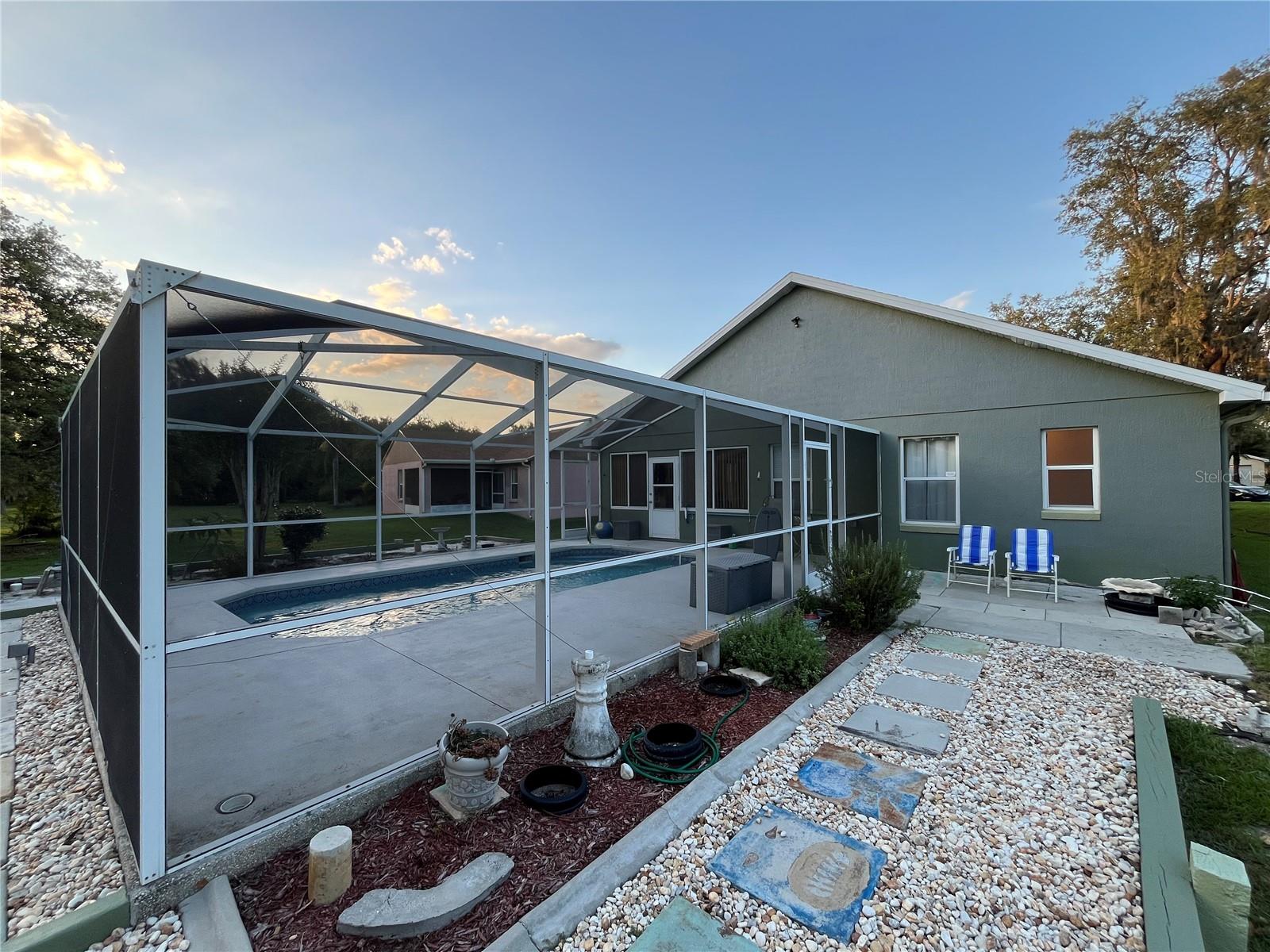 Seeking a serene and peaceful residence? Consider this nice three-bedroom, two-bathroom house. Enjoy the picturesque view of the golf course from the patio. Always great to have your own pool to relax in! It is located on a cul-de-sac. Close proximity to Kissimmee State Park and Bok Tower Gardens. The property boasts beautiful landscaping and a well-maintained home with partially remodeled master bathroom and new faucets in the second bath and kitchen. Recent updates since 2018 include a septic pumping, new well pump, pool pump, and pool cage topper, as well as a new hot water heater and guttering. The exterior features new paint, and the kitchen is equipped with all new appliances. This property meets all the criteria for a move-in-ready home
