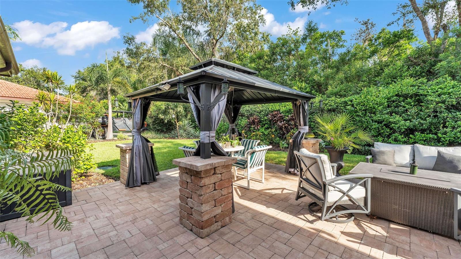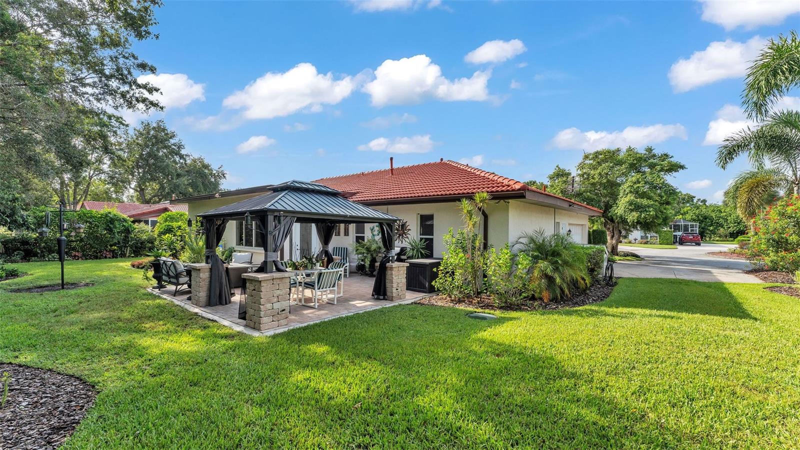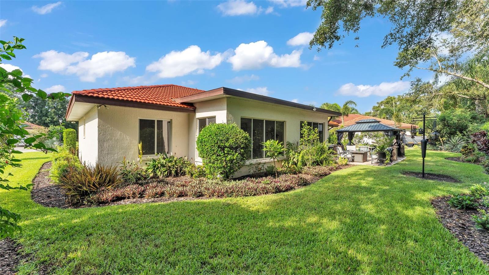 Beautifully maintained 3BR/2BA home on a quarter-acre lot, tucked away on a quiet cul-de-sac in the sought-after Lake Wales Country Club. Natural light fills the home, which boasts a split floor plan with a private master ensuite and tile flooring throughout the main living areas. This home has been well cared for and features a new water heater, new washer and dryer, a drainfield installed less than five years ago and a generator-ready setup for added peace of mind. The kitchen features granite countertops, maple cabinetry, a double pantry for extra storage, and a built-in office nook. Enjoy the benefits of a natural gas hookup, which provides consistent performance for cooking, heating, and more. The spacious Florida room overlooks a lush, landscaped backyard with no rear neighbors, offering exceptional privacy and a peaceful view. Step outside to your private outdoor retreat, complete with a patio and gazebo and a natural gas hookup for your grill. It is perfect for weekend barbecues or simply unwinding after a day on the golf course. Enjoy resort-style amenities including a heated community pool, tennis courts, and golf course access, all while savoring the privacy and tranquility of your own home. Whether you are looking for a high-end winter retreat or a serene full-time residence, this property offers the perfect blend of comfort, style, and low-maintenance living.