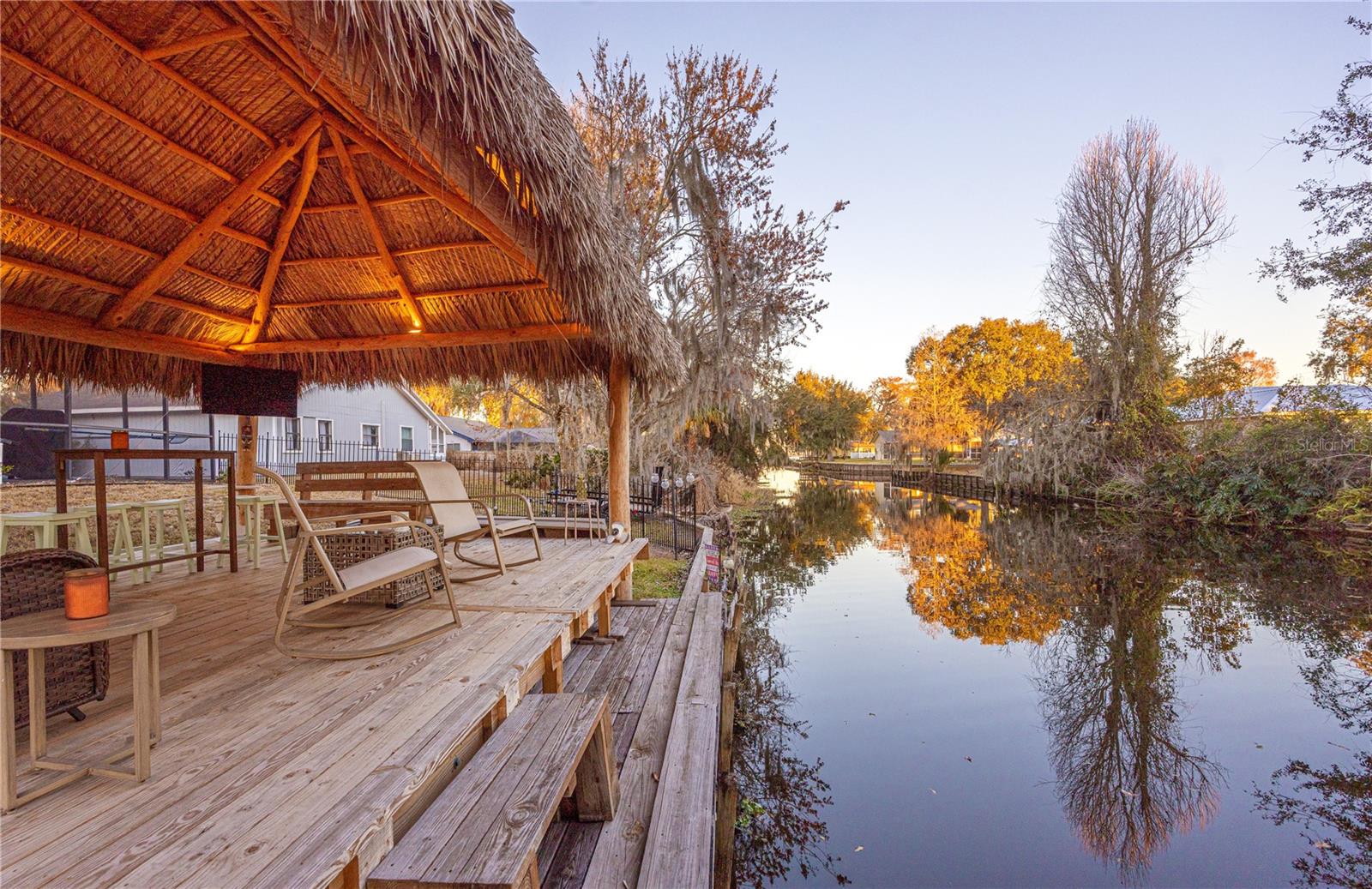 Gorgeous waterfront living at an incredible value. This 4-bedroom, 2-bath home with a 2-car garage sits on .35 acres directly on the canal 3 houses down from the mouth of Lake Pierce, a 3,700+ acre fishing and boating lake. Enjoy a large, screened pool, covered boat dock, perfect for fishing, and keeping your boat out of the weather, updated seawall, fenced yard, and stunning water views from your backyard oasis. Enjoy some peaceful time or have family and friends over to hang out underneath the beautiful TIKI HUT! (FUN FACT- the Tiki Hut was built in February 2025 by Seminole Tribe members!) Inside, the home features a gorgeous, open kitchen with lots of cabinets and countertops, crown molding throughout most of the living areas, and a cozy wood-burning fireplace in the family room for those rare, cooler Florida evenings. Three large sliding glass doors open to the pool and lanai, creating seamless indoor-outdoor living and incredible lake views. The screened lanai overlooks the pool, deck, Tiki Hut and boathouse, making it the perfect setting for relaxing, fishing, or evening gatherings. Both bathrooms offer 36” granite vanities and direct access to the pool deck, ideal for entertaining. Recent updates include new flooring, new paint, new roof in March 2024, new drainage upgrades in August 2025, overhead water piping, HVAC system with new duct vents, and a resurfaced pool with an updated pump. Located on a quiet cul-de-sac just minutes from town, this home is centrally positioned between Florida’s east and west coast beaches. Enjoy nearby attractions such as Bok Tower Gardens, Cherry Pocket Lakefront Restaurant, LEGOLAND® Florida, and convenient access to the Orlando area. This is true Florida waterfront living. Don’t miss your chance to make it yours.