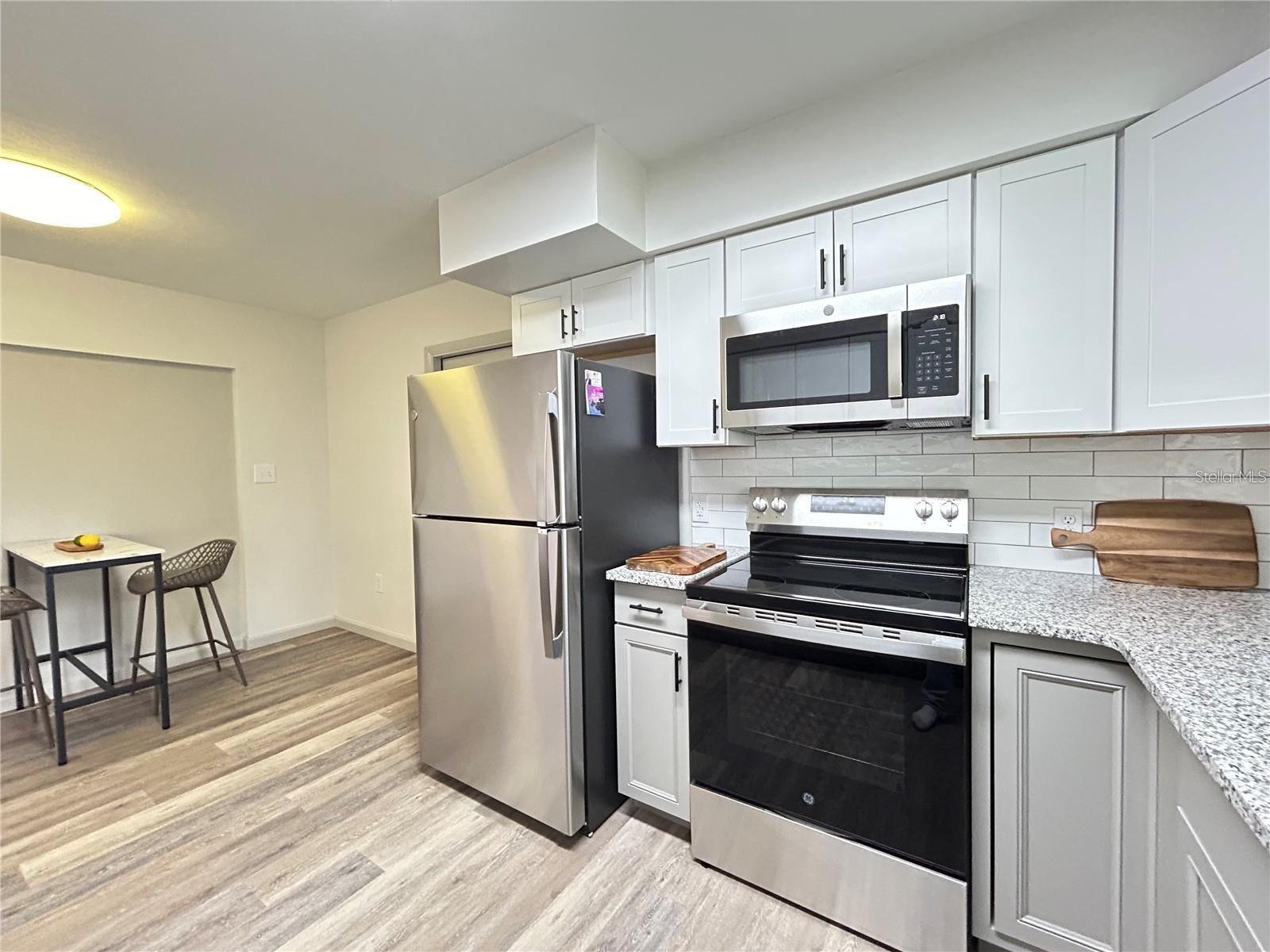 Completely renovated in 2025 with spacious backyard. NO HOA FEES/DUES. USDA 100% Financing! Enjoy the freedom of home ownership in this tastefully remodeled home which features a gorgeous kitchen with granite counters, stainless appliances, subway tile back-splash and luxury vinyl flooring. The den/office, which is located behind New barn doors off the dining room can serve as a 3rd sleeping area. The list of brand new items and upgrades are as follows; New HVAC system, New water heater, Fresh paint inside and out, New range with smooth cooktop, New microwave, New dishwasher, New refrigerator with icemaker, New cabinets, New granite counters, New kitchen sink and faucet, New luxury vinyl flooring throughout, New lighting, New closet doors, all New blinds and New stained wooden accents. The refreshed bathroom boasts a separate tub and shower with new faucets, New dual vanity with new faucets, new glass shower door, ceramic tile floor and brand New wallpaper. Enjoy Alfresco dining or relaxing near a firepit on the outside rear patio complete with privacy screen and grill shelf. The spacious rear yard affords ample area for many activities. The location is convenient to HWY 27, Crooked Lake and Warner and Webber Colleges.