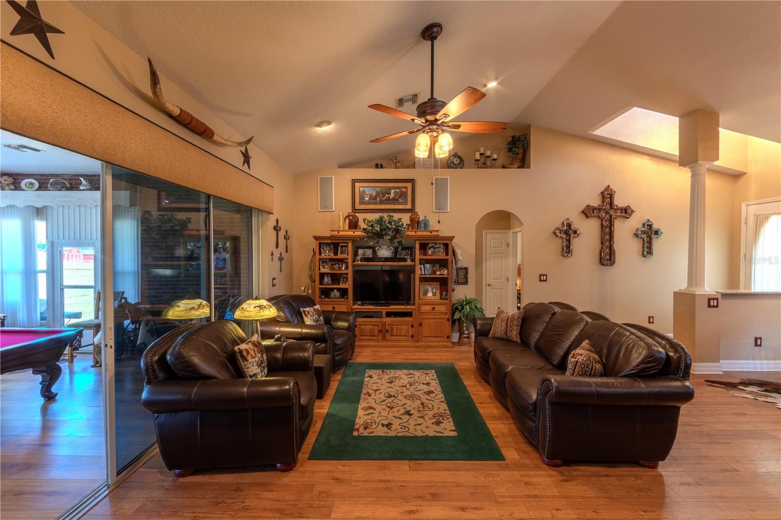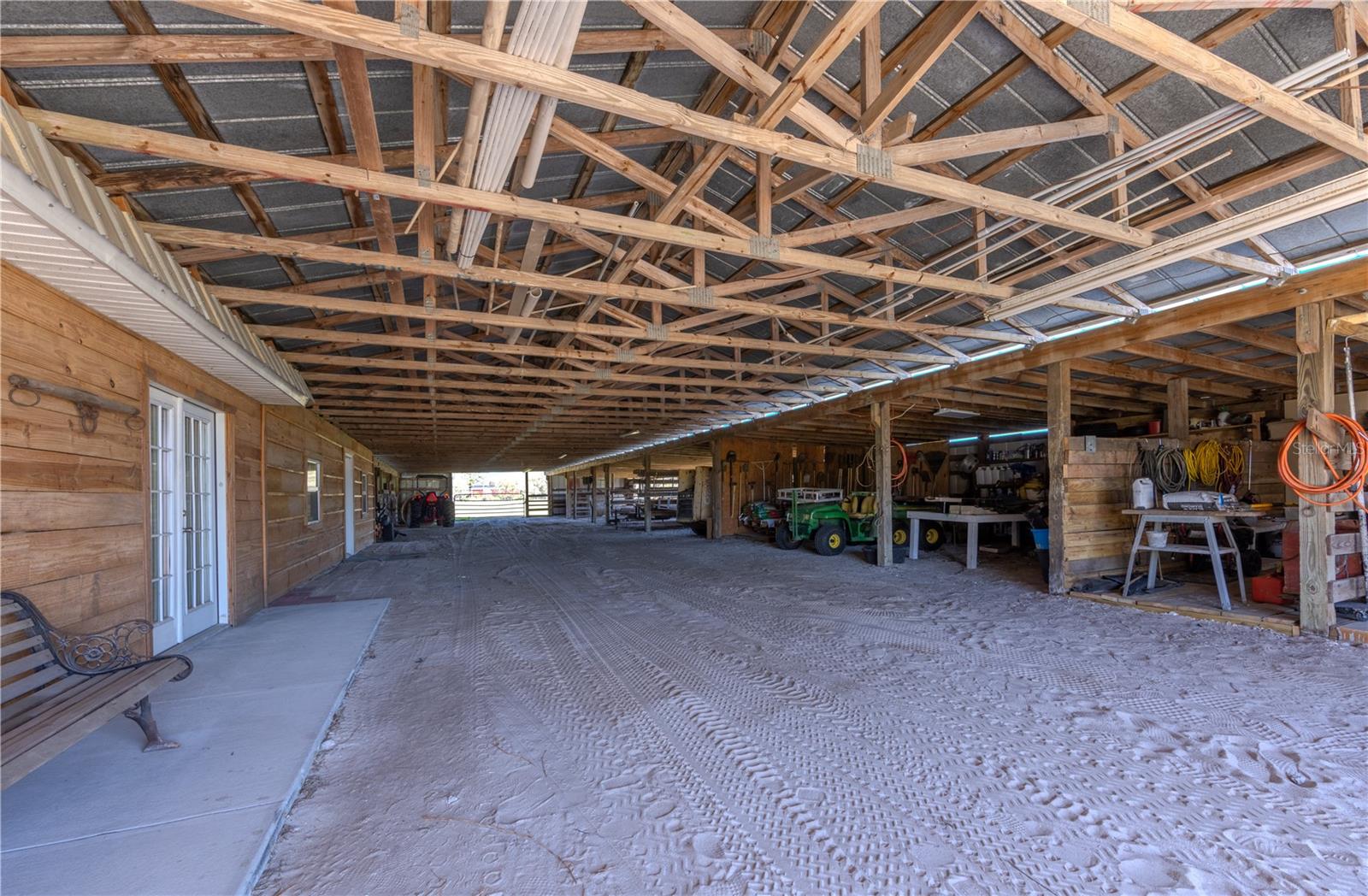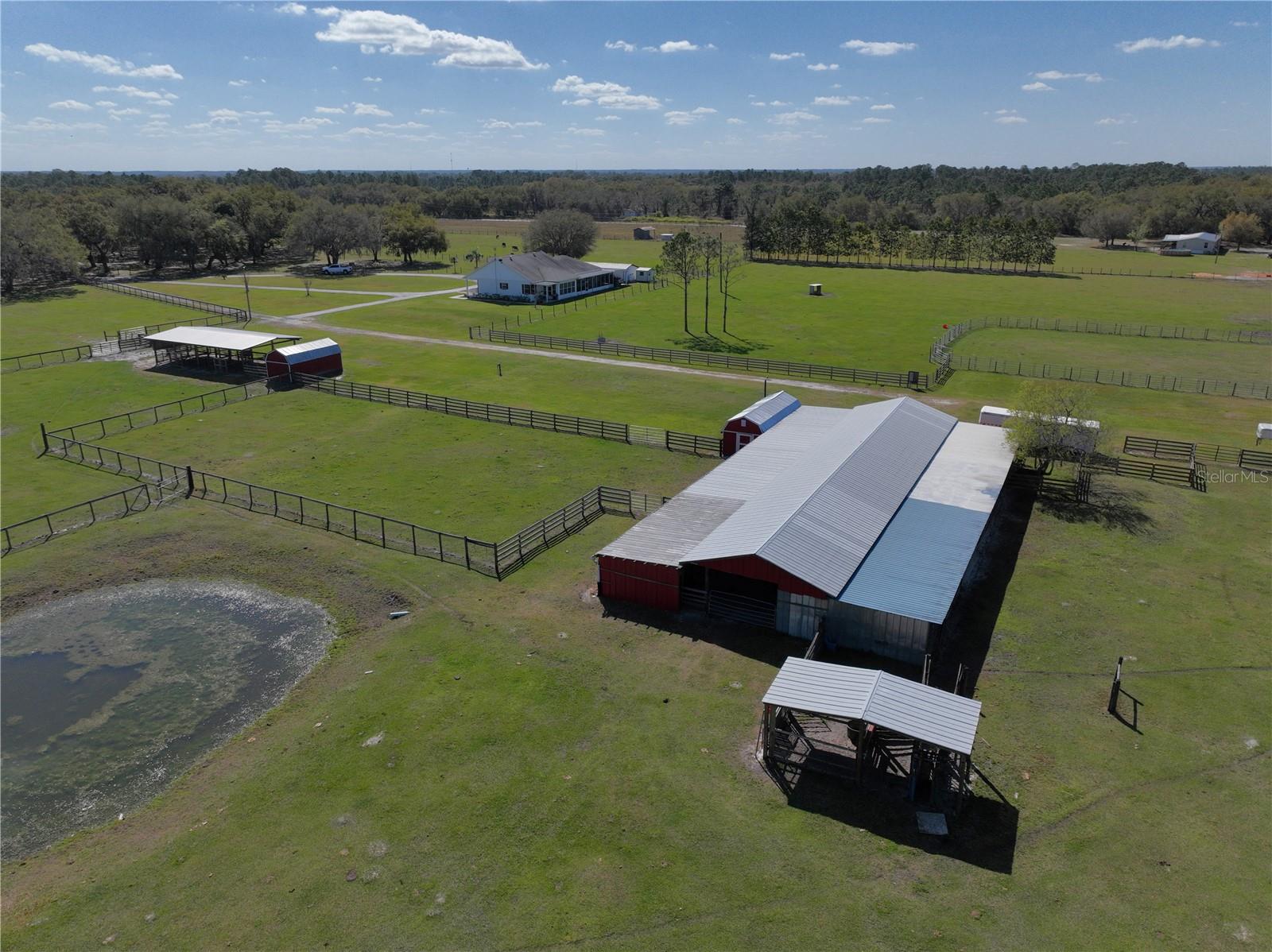 Nestled on an expansive 29+/- acre canvas of natural Florida beauty, this Ranchette style compound comes with a 2,283 sq ft main residence, multiple large barns and sheds, a gated entrance and paved driveway, along with numerous other amenities that make this one of the most turnkey family retreats in all of Polk County. Given the central location, it is a quick 1 hour drive to Vero Beach and the east coast, a 2 hour drive to West Palm beach and south Florida, and a 1.5 hour drive to Orlando or Tampa The home itself boasts 3 bedrooms and 2 bathrooms along with bonus rooms that offer flexibility for various uses. The master suite is complemented with a vast walk-in closet adorned with custom shelving along with amenities like a jetted tub, separate shower, and double vanity. The home is also wired for a surround sound system and features a tankless water heater for fast hot water. The kitchen is equipped with newer appliances, granite countertops, and oversized wood cabinets. Other features of the home include dormer windows, a full house generator, water purifier, and a large laundry room with ample storage space. One of the rooms is currently utilized as a home office, providing comfort and flexibility to work from home while enjoying the occasional view of wild turkey or deer in the front yard. Outside, discover a paradise for outdoor enthusiasts with large oak trees scattered generously throughout the premises amidst well maintained pastures. A large covered carport, numerous sheds, RV hookup, and a 500-gallon diesel tank offer convenience at every turn. Meanwhile, the expansive grounds boasts a round pen and multiple barns, making it ideal for horse boarding, training, or simply enjoying the tranquility of country living. The 5,500 sq ft pole barn comes complete with a tack room/feed area, along with a large air conditioned room that serves as a great area to lounge around and enjoy time with friends and family. Additionally, there is a 4 stall barn with its own feed shed to further compliment this meticulously crafted country estate. If desired, the property is currently parceled in such a way that one could sell off numerous tracts with ease to either recoup some of their investment, or deed a portion of the land to a family member.