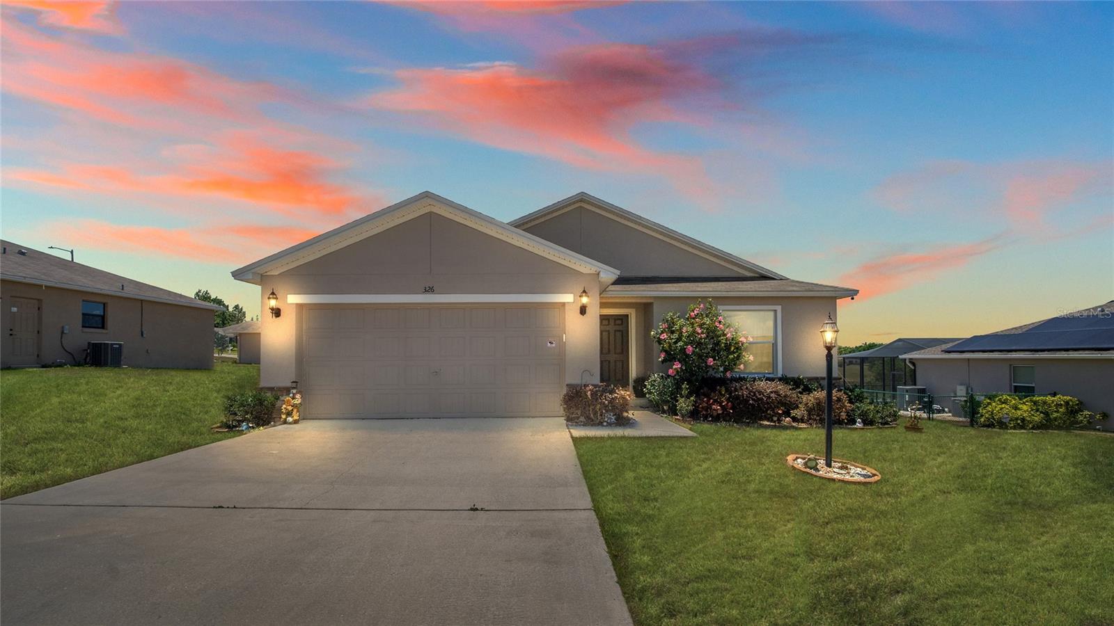 Welcome to "The Charlotte," a delightful 3-bedroom, 2-bathroom home nestled in the serene gated community of Lake Wales. This home offers an ideal balance of comfort and convenience, perfect for first-time homebuyers or those looking for a low-maintenance lifestyle. Spanning 1,266 square feet, this home features an inviting open floor plan, where tall vaulted ceilings in the foyer open up to a spacious great room. The heart of the home is the kitchen, equipped with a large island that seamlessly integrates with the dining area, making it perfect for social gatherings and family meals. The master suite is a private haven, complete with a walk-in closet and an optional upgrade to a luxurious master bathroom, providing a spa-like experience at home. Residents of this beautiful home will enjoy the security and community amenities provided by the gated setting, including a playground just a short 190-foot walk away, ideal for families. Moreover, this home boasts a stunning view of a tranquil lake from the backyard, offering a perfect backdrop for relaxing evenings and weekend activities. Its proximity to Eagle Ridge Mall, only two miles away, ensures that shopping, dining, and entertainment options are never far from reach. "The Charlotte" combines elegance, functionality, and an unbeatable location to create a living experience that's truly exceptional.