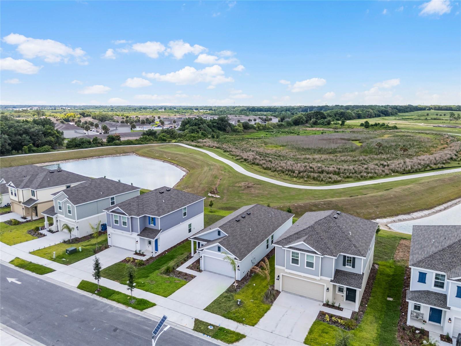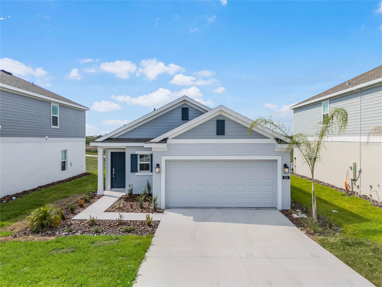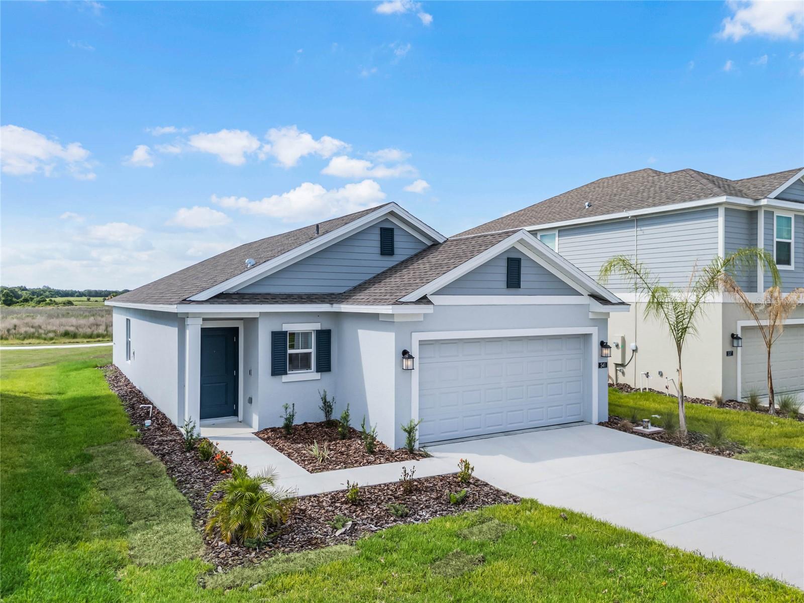One or more photo(s) has been virtually staged. Discover your dream home in this brand-new, one-story single-family house situated in a prime location close to US Hwy 27 and Legoland. The house features 3 bedrooms and 2 full bathrooms. It comes with new appliances, solid surface countertops throughout, and oversized tile flooring in the wet areas. The contemporary design elements will make you fall in love with it immediately, ready for you to move in with just your furniture and belongings. The heart of the home - The kitchen area boasts a spacious island, beautiful light grey cabinets, and top-of-the-line appliances, perfect for cooking and entertaining. The unique part of this house is that there is a Scenic Backyard, enjoy breathtaking views with two water views, and a conservation area. No rear neighbors, ensuring privacy and a serene environment. The owner’s suite features an oversized bedroom connected to a bathroom with his and her sinks and a roomy walk-in closet. Leoma’s Landing is the perfect place to raise a family or retire. In a prime location, residents can access an array of parks, lakes, and attractions such as Bok Tower Gardens and Lake Kissimmee State Park. For those who enjoy shopping, dining out, and entertainment, Historic Downtown Lake Wales is just moments away. Don't miss out on this exceptional property that combines modern living with natural beauty. Schedule a viewing today and make this stunning house your new home!