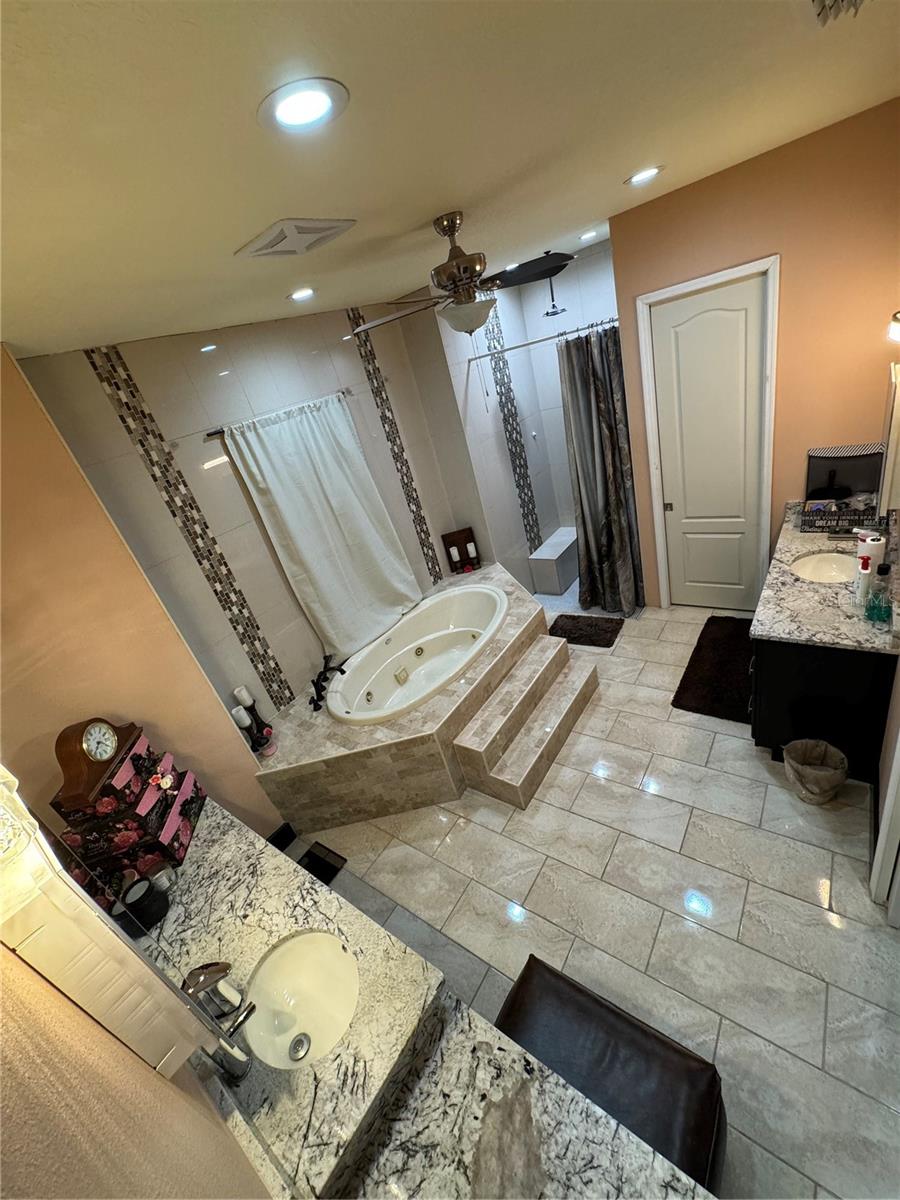 Sitting in a 5.4 Acres corner lot fenced all around with 1 main automatic gate and 2 side manual gates. The property features a MAIN HOUSE with one Master bedroom with tray ceiling, and two guest bedrooms. Family room has a tray ceiling kitchen island counter holds 5 bar stools Granite counter tops with back splash, Stainless steel appliances. An enclosed lanai with custom glass windows and tall sliding glass doors, complete outdoor kitchen with stainless steel appliances. Indoor laundry with large capacity washer and dryer. Finished attic/climate controlled storage room with recess lighting, wall power outlets, HVAC vents and spray insulation. 2 separate car garages and Paved driveway holds up to 4 cars. The MOTHER-IN-LAW SUITE Has a separate main entrance with a covered 12 x 8 porch and an attached wheelchair ramp. it features a second key lockable door that is connected to the main house, giving the home owner the option to seal the suite off from the main house entirely and renting it as a private apartment. ADDITIONAL FEATURES: Stone work in front of the house Front porch with concrete columns, Double glass entry door, Indoor/Outdoor living - Enclosed Lanai equipped with custom sliding windows, tall sliding glass door, complete kitchen, recessed lighting, 2 ceiling fans, ceiling mounted power outlets and tv cable wiring, and home gym/yoga area. 2 French doors with built in blinds leading to lanai High cathedral ceilings Ceiling fans on all rooms, master bedroom and family room with retractable ceiling fans Ceramic tiles throughout the house, Solid wood cabinets in kitchen and all bathrooms, 2 Tankless water heaters (propane heated with underground tank) *saves electric bills* Well insulated special icynene foam insulation *saves electric bills* 2 HVAC air conditioning units Well with whole house water filtration system/water purifier no water bills/no city water 8 x 10 storage shed (pre wired for electricity/lighting) 50+ tropical fruit trees like mangos, lychee, longan, avocados, star fruit and soursop to name a few.