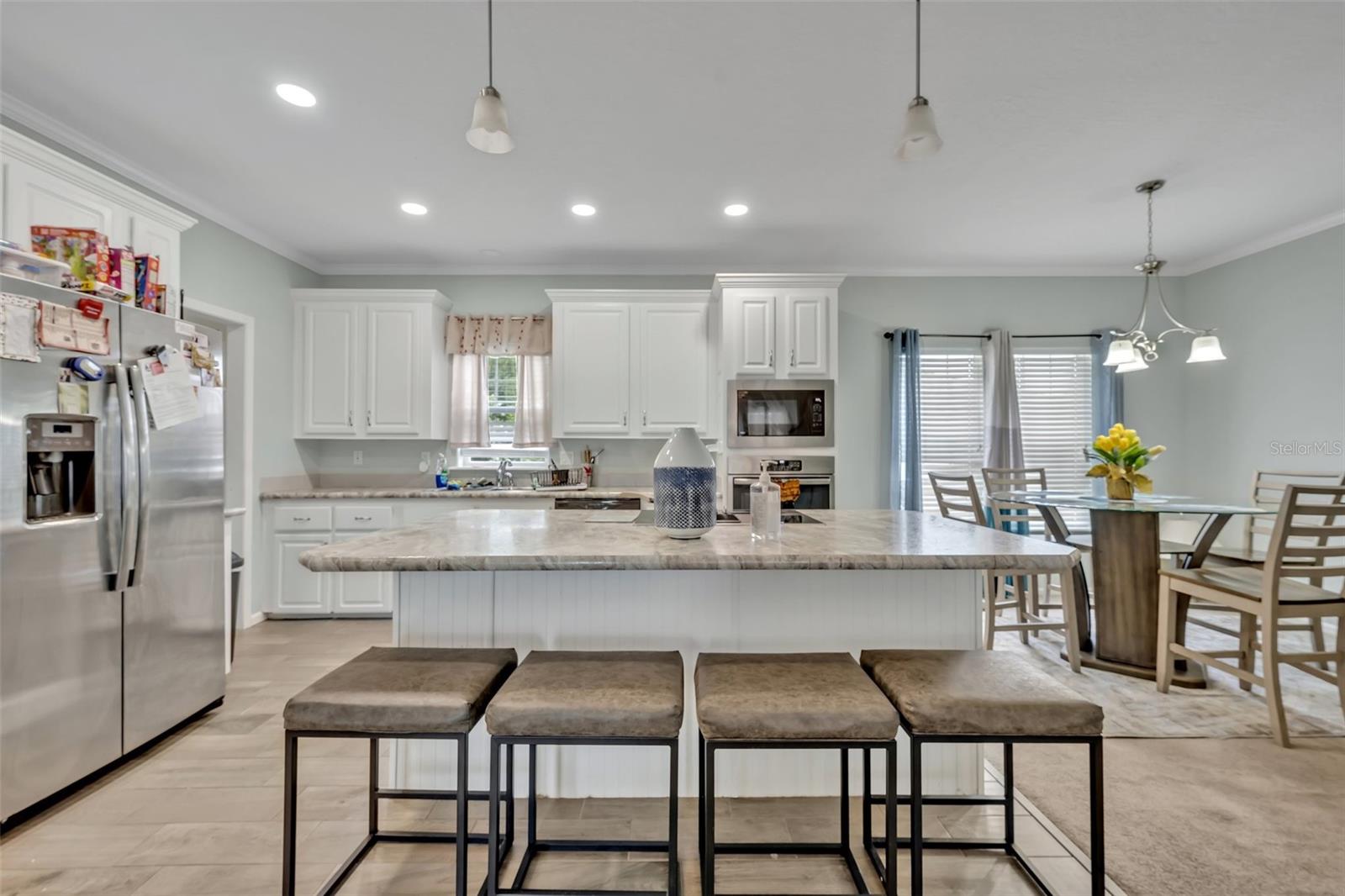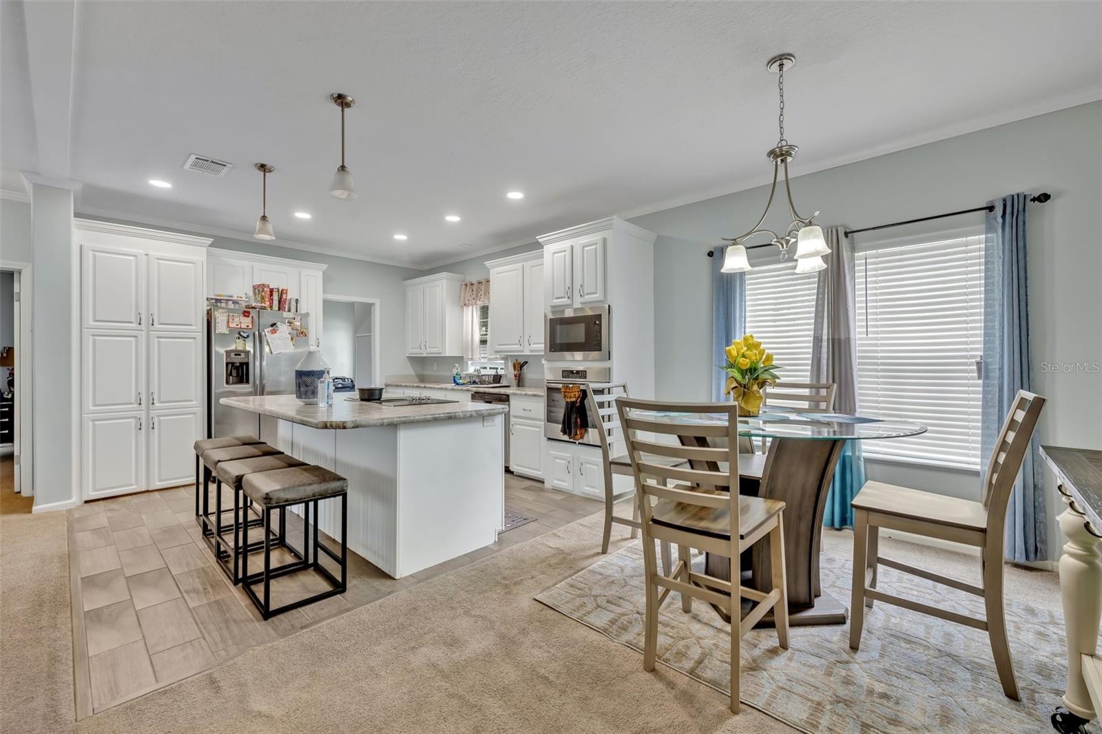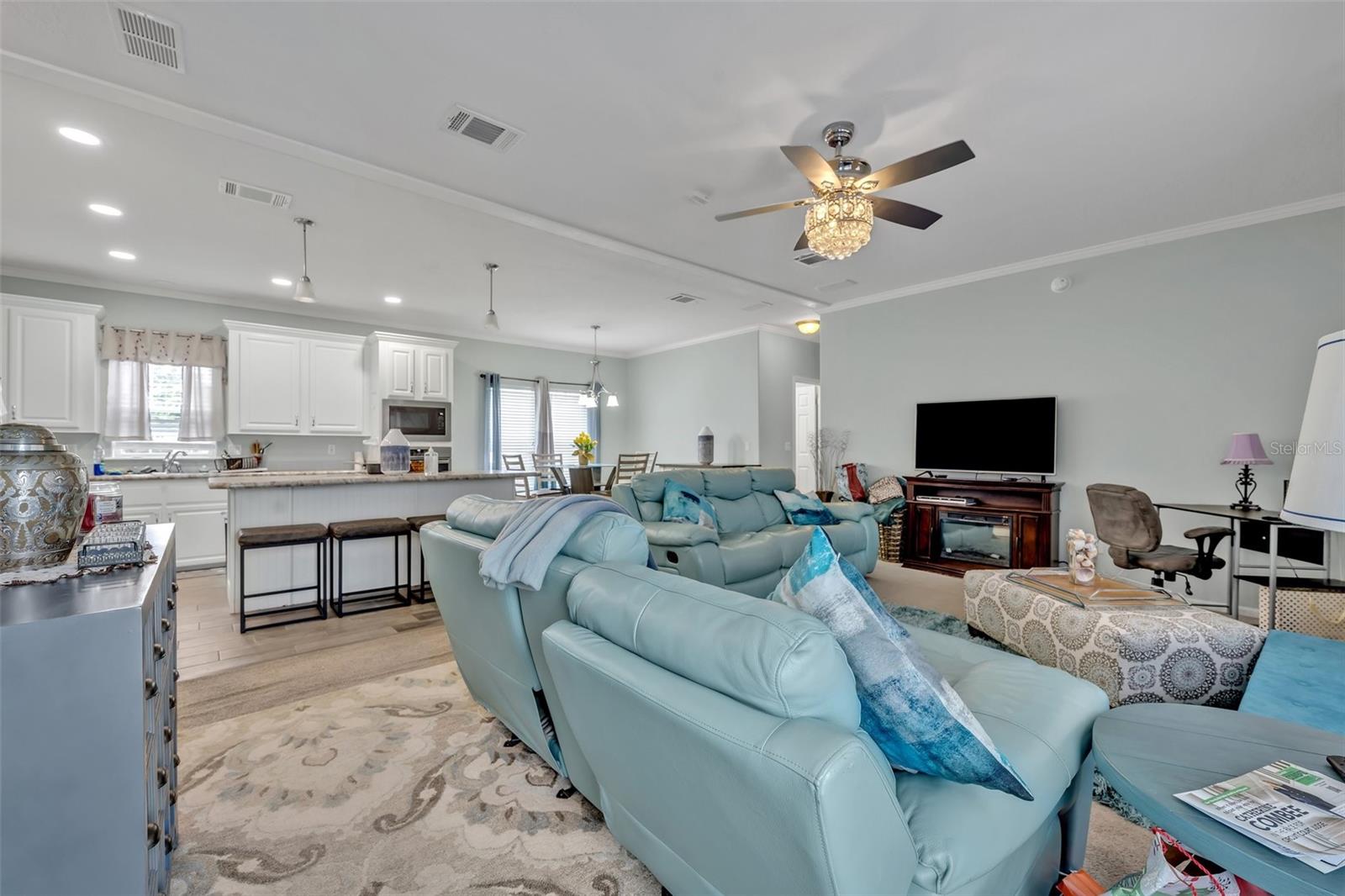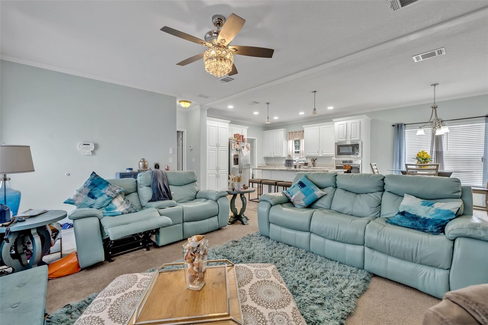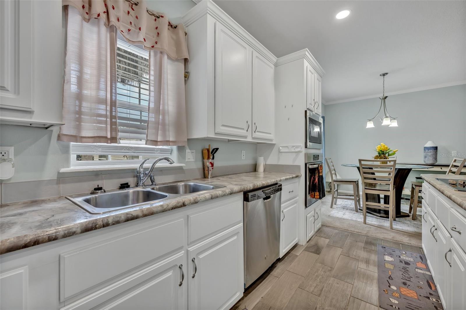 This beautiful, well-maintained Manufactured Home is only 5 years old and is located in the beautiful community of Nature’s Edge Resort. This desirable 55+ community offers peace and tranquility while still being conveniently located. The home features an Open Floorplan with a spacious Living Room which connects seamlessly to the large, well-appointed Kitchen. The Kitchen boasts Stainless Steel Appliances, including a Built-In Oven and Microwave, as well as a large Island complete with Built In Cooktop and Bar Seating. With ample cabinet space, a walk-in Pantry, and beautiful Stone Countertops, this Gourmet Kitchen is a Chef’s Delight! The Primary Bedroom includes a Walk-In Closet and a large Bathroom with separate Garden Tub and Glass Door & Tile Shower, as well as Dual Vanities. Two additional Bedrooms are also on hand along with a fully equipped Guest Bathroom. Both Bedrooms have comfy carpet floors and roomy, Walk-In Closets. The Laundry Room is easy to reach just beside the Kitchen and comes complete with almost new Samsung Washer & Dryer. Additional details like Crown Molding throughout the home and the built in Wine Rack located in the Island add even more charm and character to this lovely home. The Community includes a Clubhouse, Shuffleboard, and more. This sought-after 55+ community is conveniently situated between Tampa and Orlando and close to all central Florida Theme Parks and Attraction in a quiet country setting with shopping and medical facilities nearby. This home is perfect for year-round or seasonal residents.
