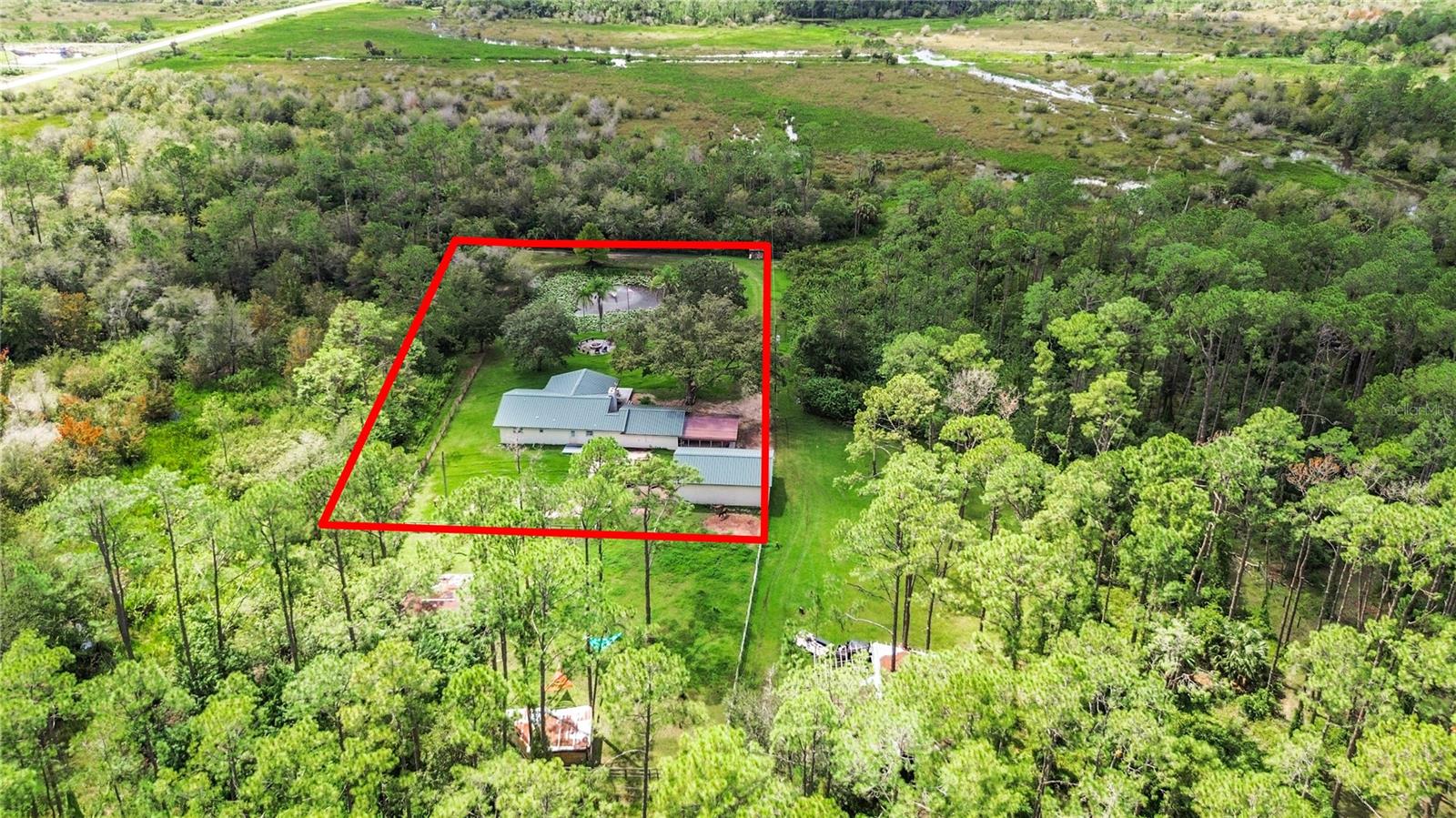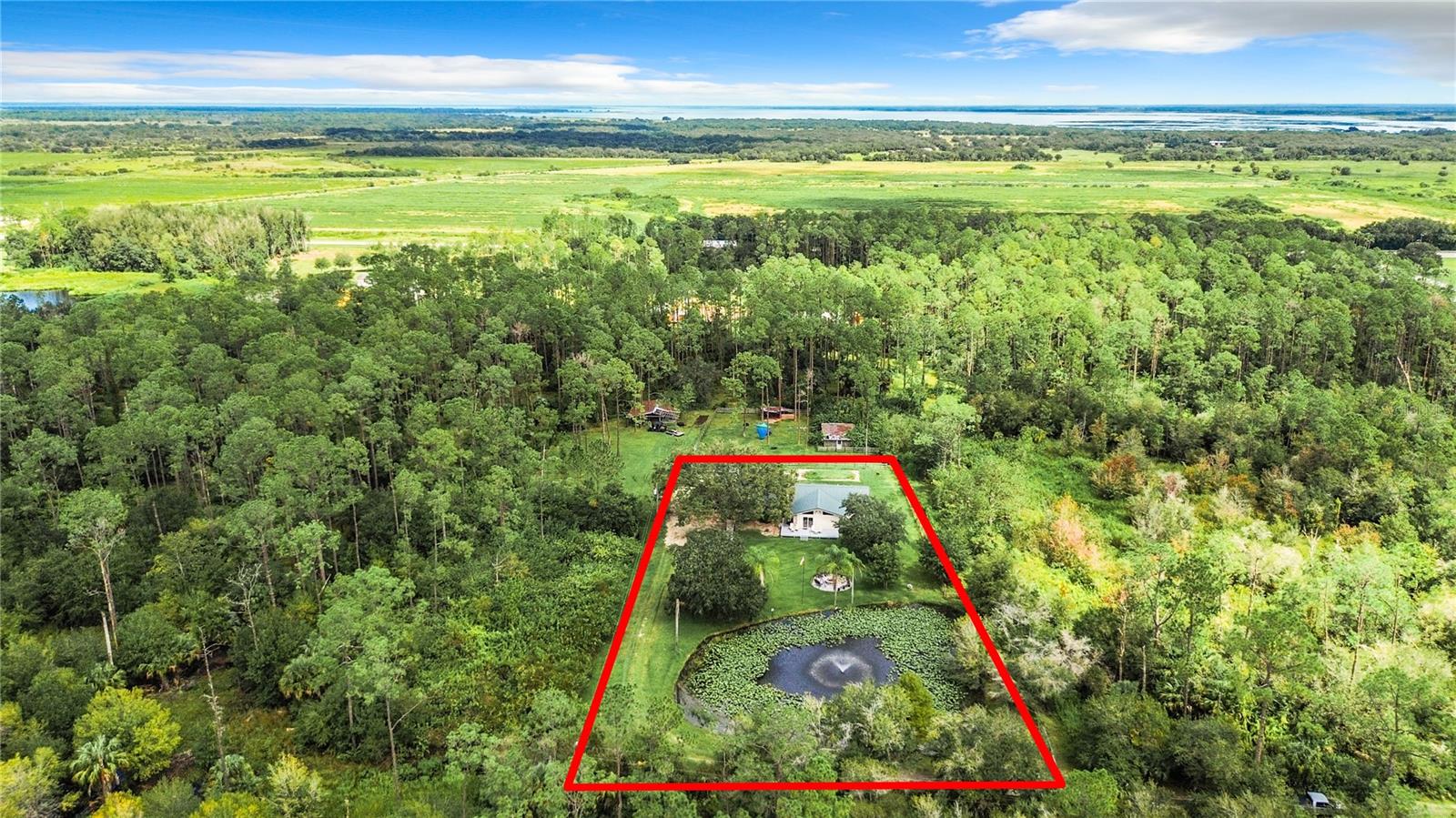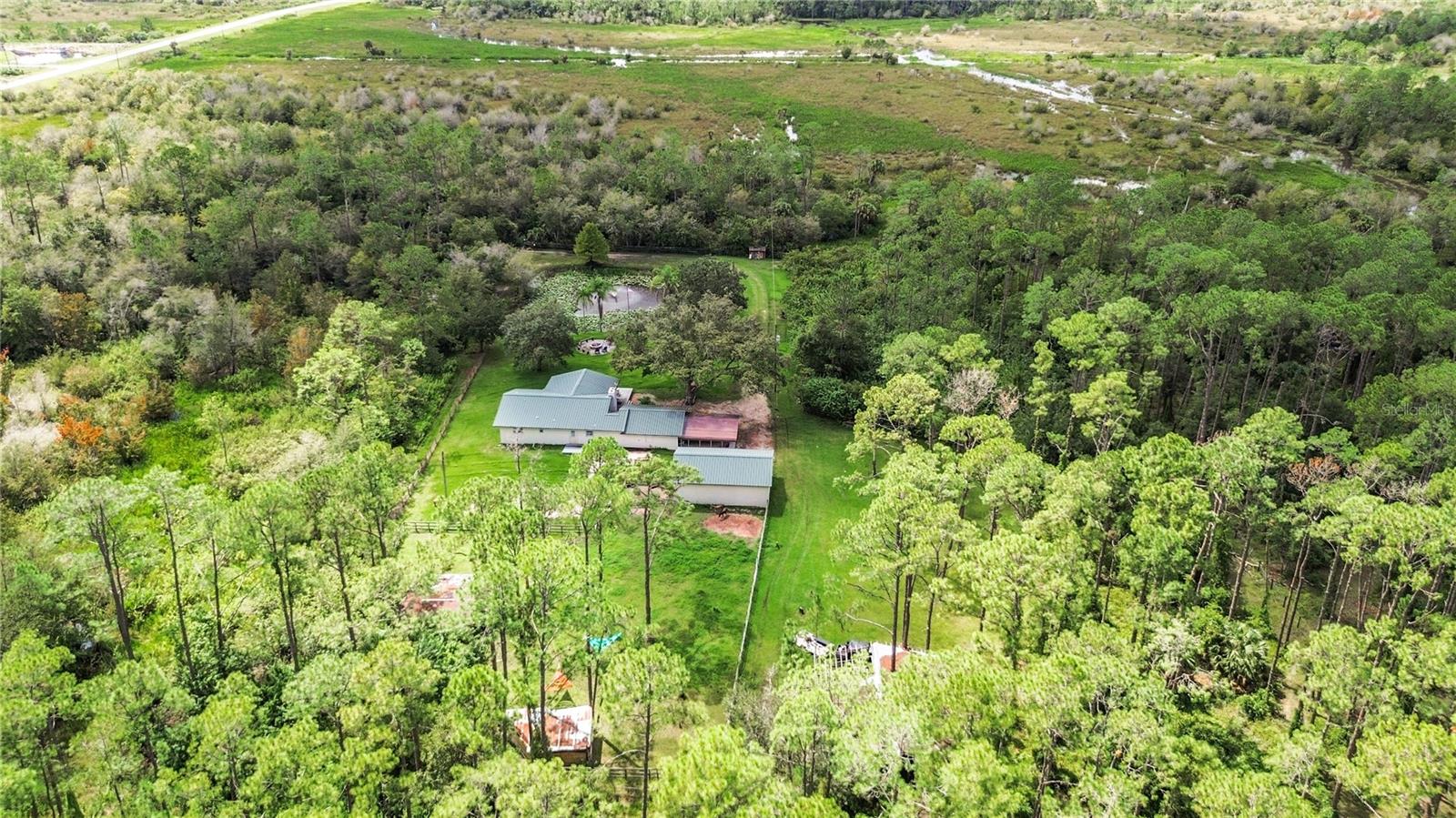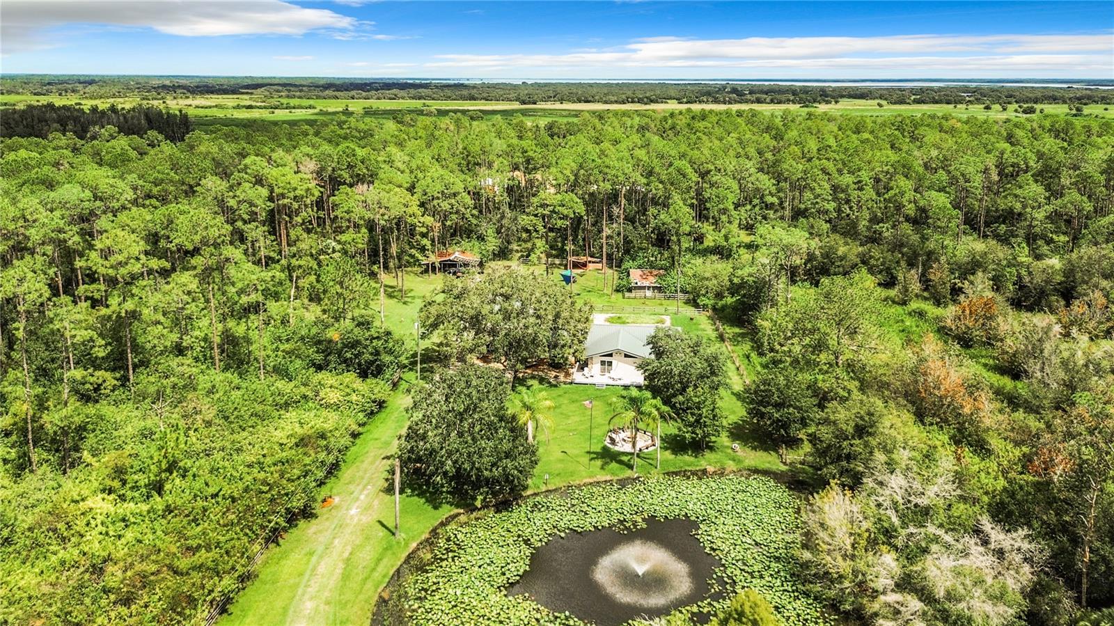 Charming 3-Bedroom, 2-Bathroom Home on 5+ Acres with Direct Access to River Ranch! Discover this beautifully remodeled 3-bedroom, 2-bathroom single-family home, with approximately 2,300 sqft of living space and sitting on just over 5 acres of land. Perfect for those who love the great outdoors, this unique property offers direct access to the renowned River Ranch, a 44,000-acre privately owned recreational property, perfect for hunting, trail riding, camping, and mudding. Only legal property owners with an active membership in RRPOA can enjoy this exclusive access. The home has been substantially updated with modern features, including a kitchen with stainless steel appliances, sleek quartz countertops, and vinyl laminate flooring throughout—except for the entertainment room, which is tiled. Outdoors, enjoy the serene views of your private pond with a fountain, perfect for relaxing evenings by the firepit. The detached garage adds to the convenience of this property. Originally used as a hunting lodge, this home is an ideal retreat for sportsmen and outdoor enthusiasts. It would make for a great homestead, second home or short term rental property. This property has an separate guest house that is not currently habitable, but could be rehabbed to provide additional living space. There is also a small corral for livestock on the property. Situated on the same street as the entrance to Westgate River Ranch Resort, this location offers an adventure-filled lifestyle with nearby amenities including horseback riding, fishing, airboat rides, and more, all within the heart of Florida’s outdoors. Don’t miss out on this unique opportunity—schedule a tour today!