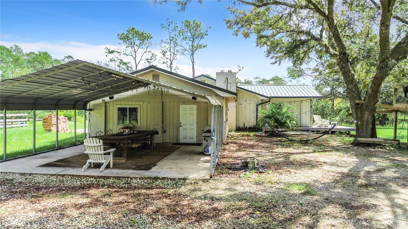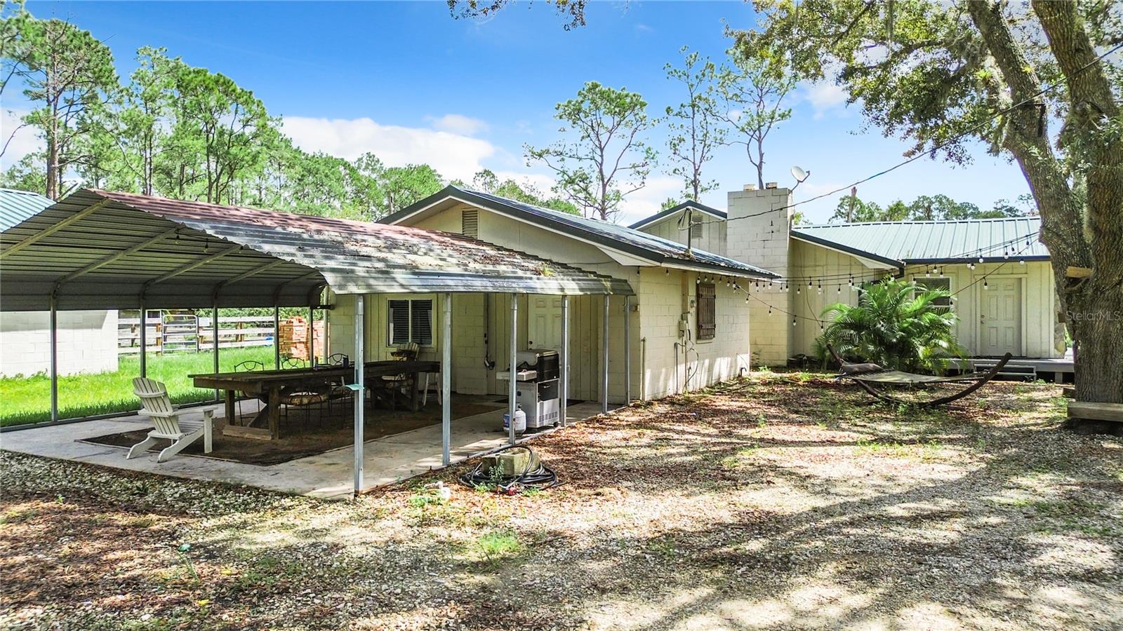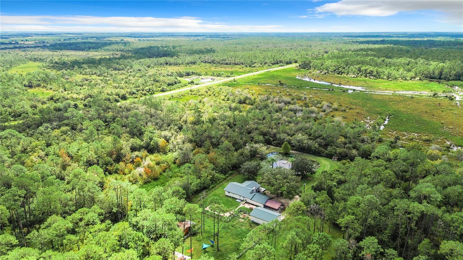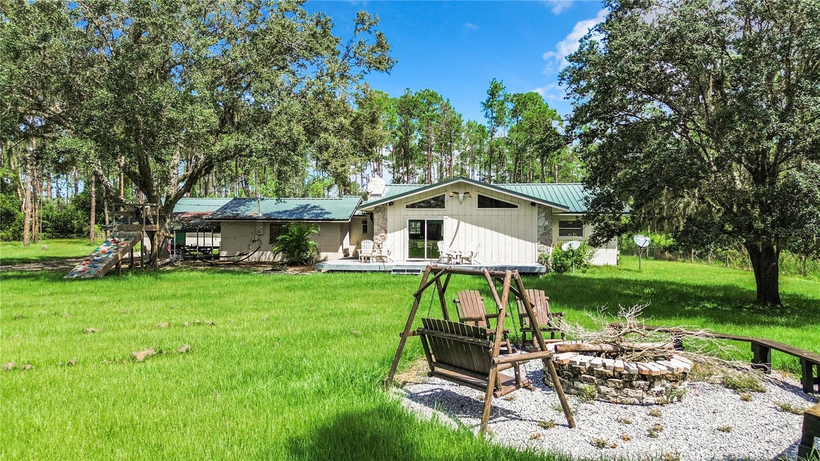 Charming 3-Bedroom, 2-Bathroom Home on 5+ Acres with Direct Access to River Ranch! Discover this beautifully remodeled 3-bedroom, 2-bathroom single-family home, with approximately 2,300 sqft of living space and sitting on just over 5 acres of land. Perfect for those who love the great outdoors, this unique property offers direct access to the renowned River Ranch, a 44,000-acre privately owned recreational property, perfect for hunting, trail riding, camping, and mudding. Only legal property owners with an active membership in RRPOA can enjoy this exclusive access. The home has been substantially updated with modern features, including a kitchen with stainless steel appliances, sleek quartz countertops, and vinyl laminate flooring throughout—except for the entertainment room, which is tiled. Outdoors, enjoy the serene views of your private pond with a fountain, perfect for relaxing evenings by the firepit. The detached garage adds to the convenience of this property. Originally used as a hunting lodge, this home is an ideal retreat for sportsmen and outdoor enthusiasts. It would make for a great homestead, second home or short term rental property. This property has an separate guest house that is not currently habitable, but could be rehabbed to provide additional living space. There is also a small corral for livestock on the property. Situated on the same street as the entrance to Westgate River Ranch Resort, this location offers an adventure-filled lifestyle with nearby amenities including horseback riding, fishing, airboat rides, and more, all within the heart of Florida’s outdoors. Don’t miss out on this unique opportunity—schedule a tour today!