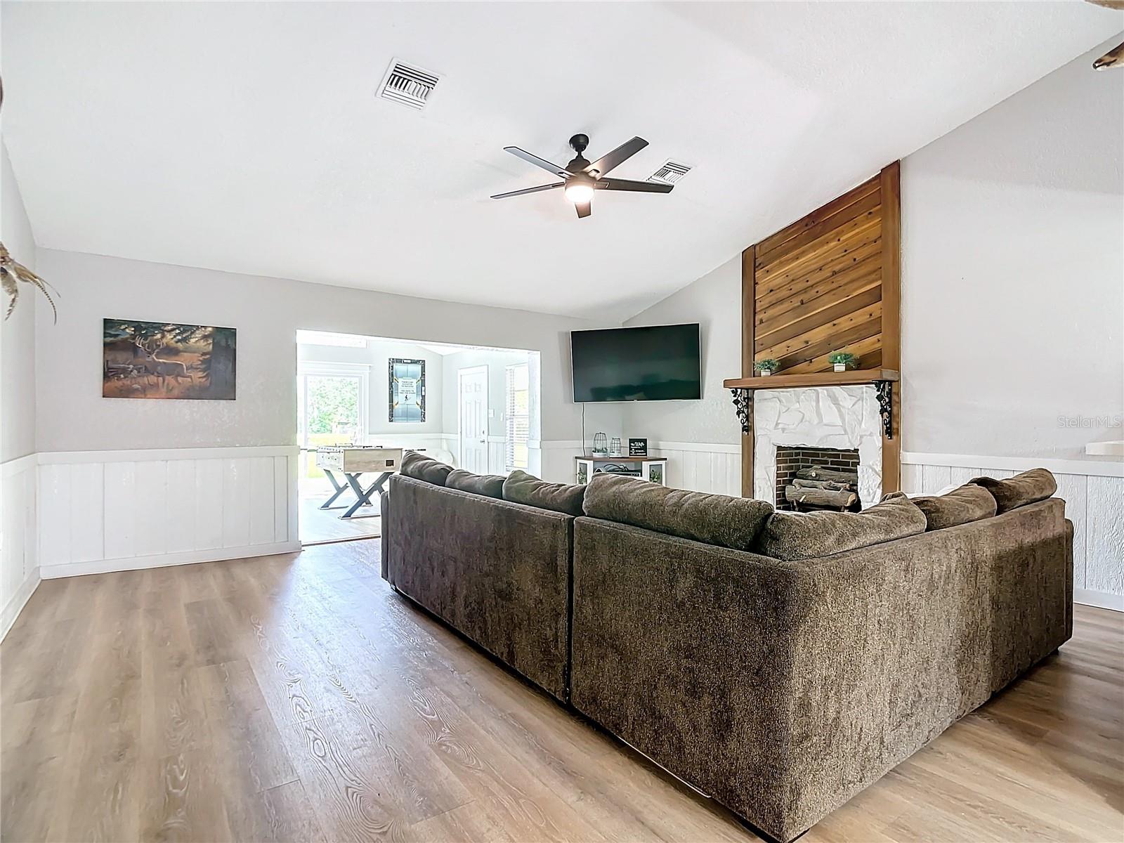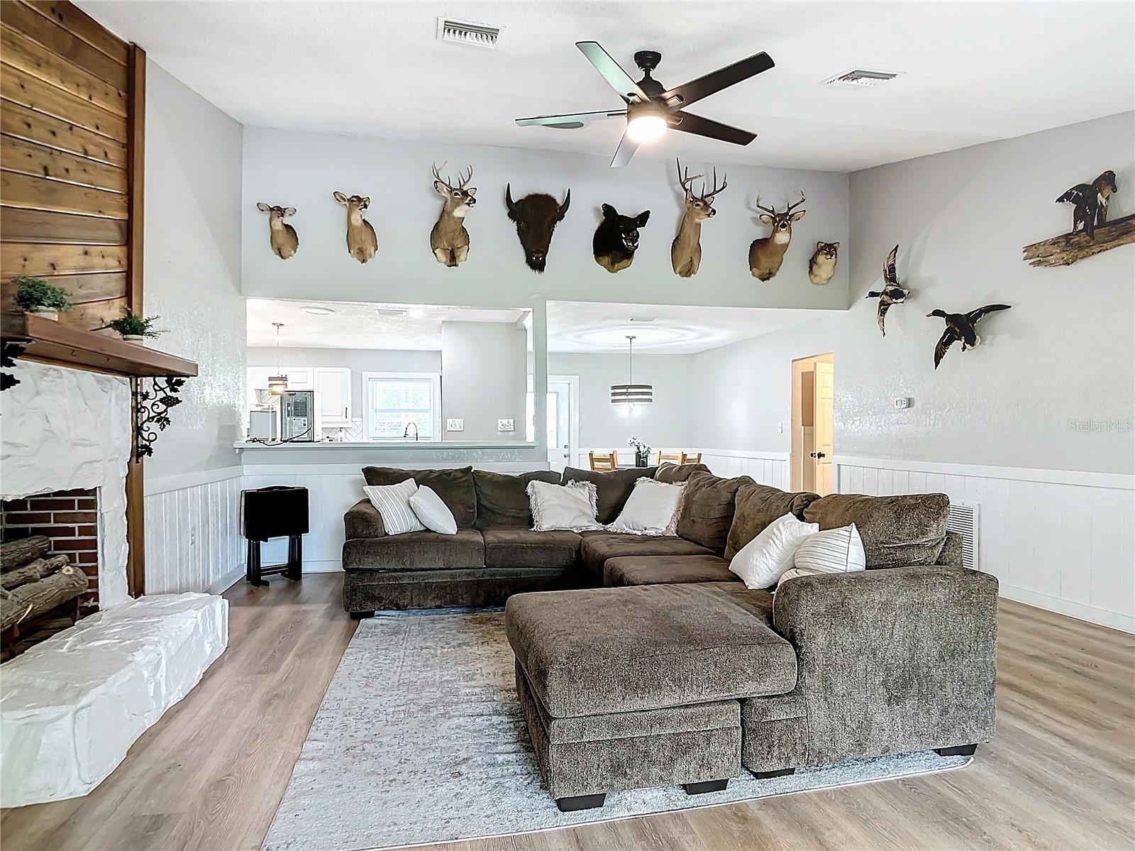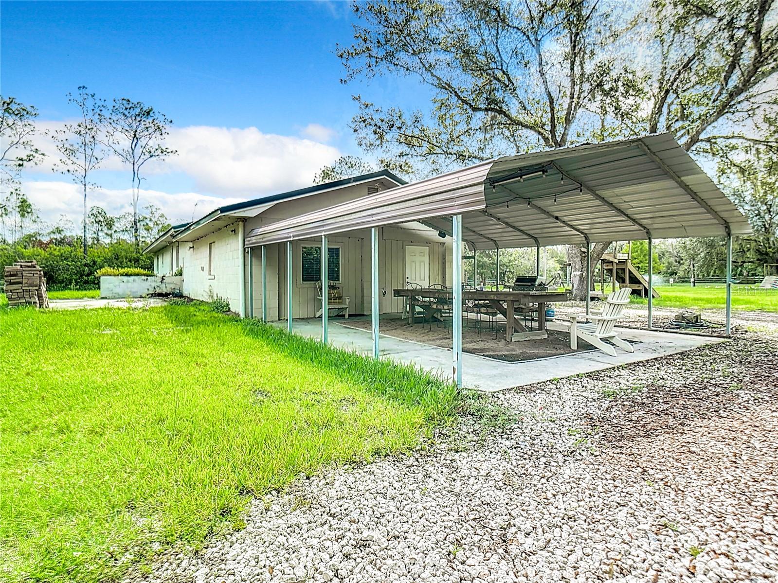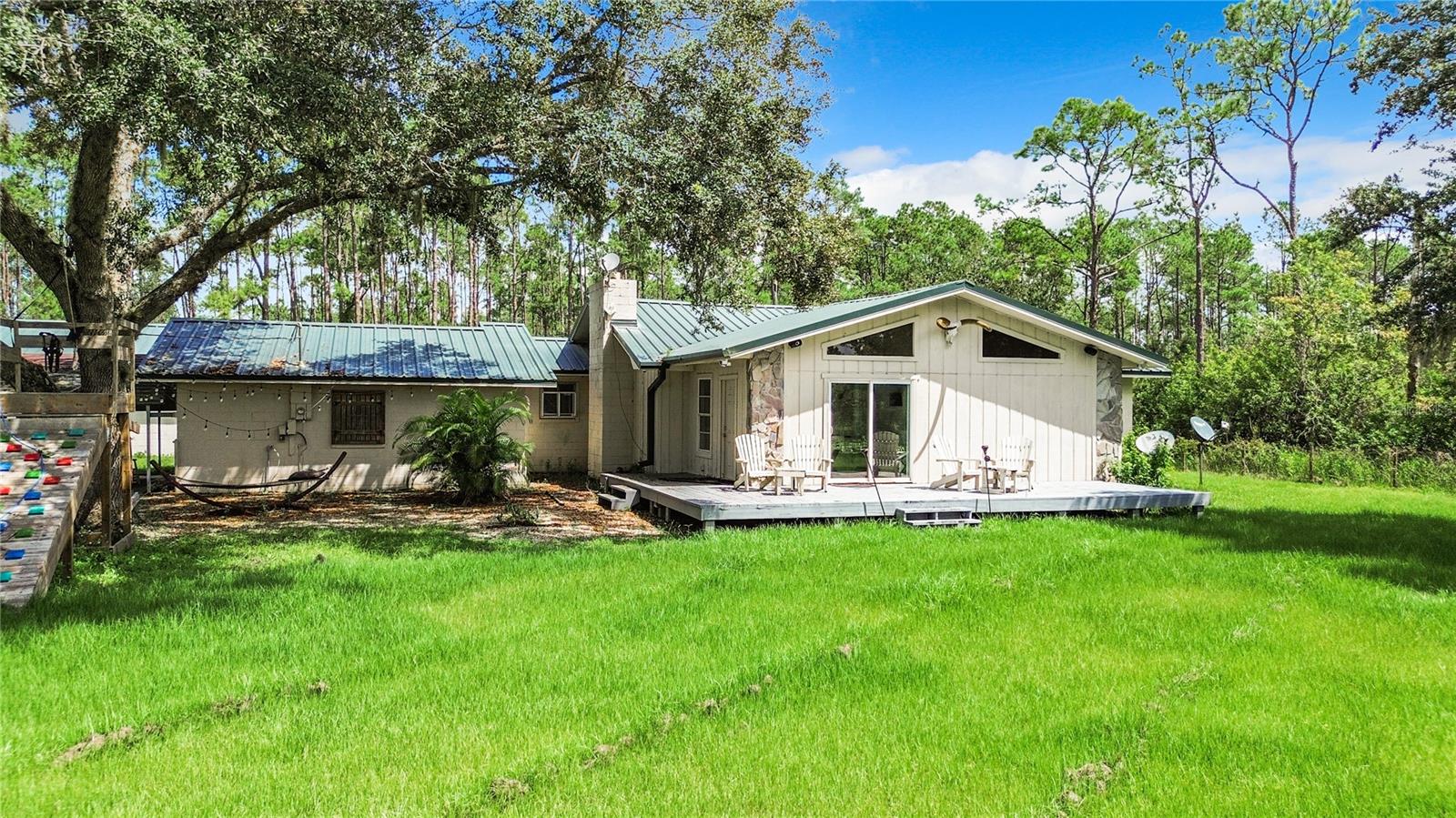 Charming 3-Bedroom, 2-Bathroom Home on 5+ Acres with Direct Access to River Ranch! Discover this beautifully remodeled 3-bedroom, 2-bathroom single-family home, with approximately 2,300 sqft of living space and sitting on just over 5 acres of land. Perfect for those who love the great outdoors, this unique property offers direct access to the renowned River Ranch, a 44,000-acre privately owned recreational property, perfect for hunting, trail riding, camping, and mudding. Only legal property owners with an active membership in RRPOA can enjoy this exclusive access. The home has been substantially updated with modern features, including a kitchen with stainless steel appliances, sleek quartz countertops, and vinyl laminate flooring throughout—except for the entertainment room, which is tiled. Outdoors, enjoy the serene views of your private pond with a fountain, perfect for relaxing evenings by the firepit. The detached garage adds to the convenience of this property. Originally used as a hunting lodge, this home is an ideal retreat for sportsmen and outdoor enthusiasts. It would make for a great homestead, second home or short term rental property. This property has an separate guest house that is not currently habitable, but could be rehabbed to provide additional living space. There is also a small corral for livestock on the property. Situated on the same street as the entrance to Westgate River Ranch Resort, this location offers an adventure-filled lifestyle with nearby amenities including horseback riding, fishing, airboat rides, and more, all within the heart of Florida’s outdoors. Don’t miss out on this unique opportunity—schedule a tour today!