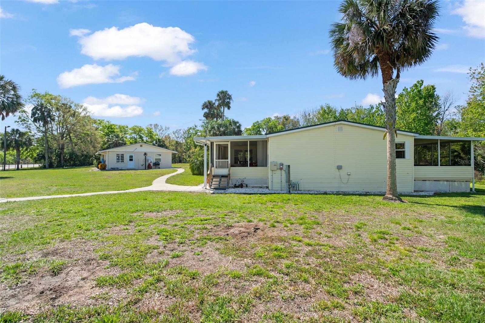 **This property qualifies for a closing cost credit up to $7,100 through the Seller’s preferred lender.**Are you looking for your own private oasis? This beautiful country haven at 6819 Black Rd in Lake Wales, FL, offers everything you could dream of and more. This unique property spans 4 acres of land (with two parcels in one), featuring both a stunning 2002 pre-manufactured home and an additional 2-bed, 1-bath home (currently being used as a large 30x40 workshop) that has yet to be completed. The seller will also pay off the solar panels, leaving you with no electric bill, an incredible bonus for the new owner. As you explore the property, you’ll discover multiple features that set this home apart. The 3 porches provide ample space for outdoor entertaining, and the cozy stone fireplace offers the perfect place to relax and unwind. For those who love the outdoors, the property includes a fiberglass pool with a pool cage, nature walking trails that double as ATV trails, and over 60 blueberry bushes, along with an array of fruit trees. A well exclusively for irrigation purposes ensures your landscaping thrives year-round. The master bath has been completely remodeled, providing a spa-like retreat with modern finishes that add luxury to your daily routine. Fishing enthusiasts will appreciate over 49 feet of canal frontage, perfect for quiet days by the water, while the picturesque lily pads and fishing dock add to the charm of the setting. The barn stable currently houses an emu, miniature horses, and over 20 chickens, making this a wonderful space for hobby farming. There’s also a seller-built, well-maintained playground that’s ideal for kids to play. The heated and air-conditioned workshop with two bedrooms, a fully functional bathroom, and laundry room offers endless possibilities – whether it’s used as guest quarters, a home office, or creative space. This property is a true retreat that offers both tranquility and endless possibilities. The only thing this home is missing is you! Schedule a showing today and make this beautiful country haven yours before it’s gone!