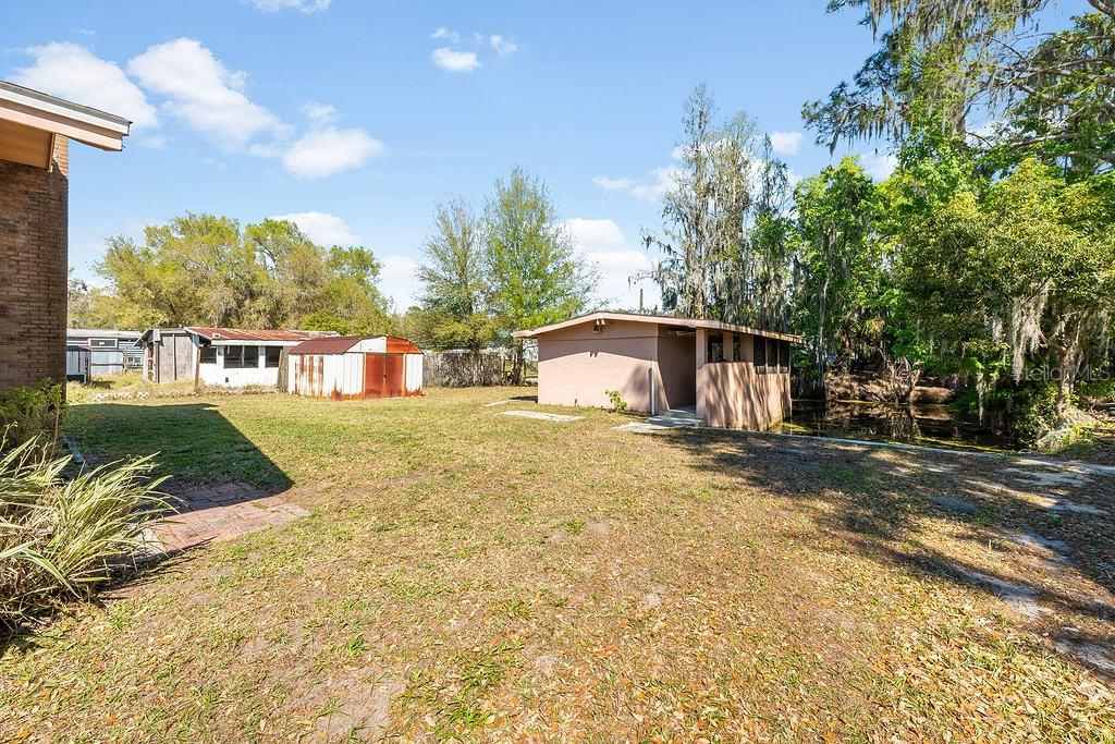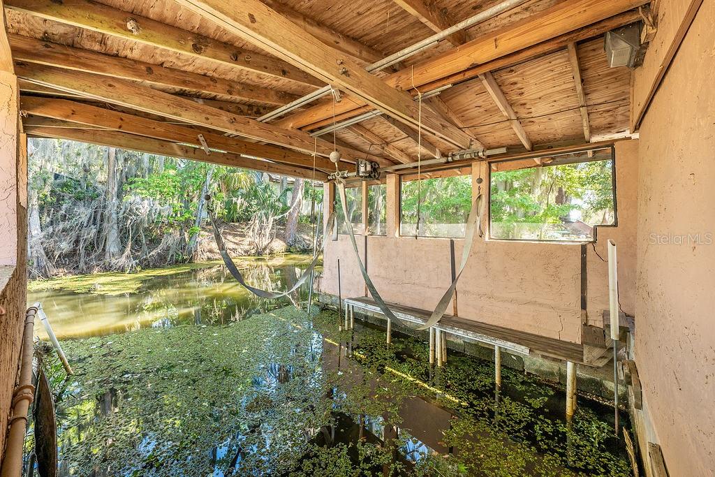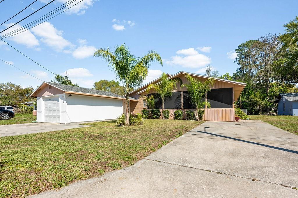 **This house comes with a REDUCED RATE through the seller's preferred lender. This is a lender-paid rate buydown that reduces the buyer's interest rate and monthly payment. The Seller may also consider additional buyer concessions if requested in an offer** ~ Waterfront home with direct CANAL ACCESS to LAKE PIERCE via a private BOAT RAMP & COVERED BOATHOUSE w/ ELECTRIC LIFT- plus a NEW ROOF (2020), NEW A/C (2022), BRAND NEW GARBAGE DISPOSAL (2025), UPDATED KITCHEN with a NEW SIDE-BY-SIDE REFRIGERATOR, UPDATED BATHROOMS, FRESH PAINT and MODERN WOOD LAMINATE & TILE FLOORING! This spacious flowing floor plan delivers a huge living room complete with a brick fireplace that delivers warmth and charm paired with the character of a wall to wall custom bookcase, and a dining area open to a comfortable kitchen. Through sliding glass doors off the living room or a second private entrance the third bedroom/den is on the opposite side of the home with access to a full guest bath making it ideal for multi-generational living, an IN-LAW SUITE or rental potential. The large SCREENED LANAI is secured by two glass storm doors with two ceiling fans for maximum comfort adding curb appeal to the front of the home and the generous lot on a quiet CUL-DE-SAC STREET leaves room for a storage shed, boat house with an attached workshop and a boat ramp right in your own backyard! No HOA offers freedom from additional fees and restrictions and allows the boating and fishing enthusiast to enjoy this property to its fullest. The appealing landscape of palm trees swaying in the breeze, unique character and features make this property stand out from comparable homes in the neighborhood and TWO DRIVEWAYS in addition to the garage give you ample parking. Also noteworthy; the septic was pumped in 2021, well water pump was replaced in 2021, both bathrooms have been updated, the water heater was replaced in 2016, and the boathouse workshop features a work bench and security lighting. If you are looking for a MOVE-IN READY HOME with modern updates direct WATERFRONT ACCESS, and unique features look no further than Jenny Dr. Call today to schedule a tour!