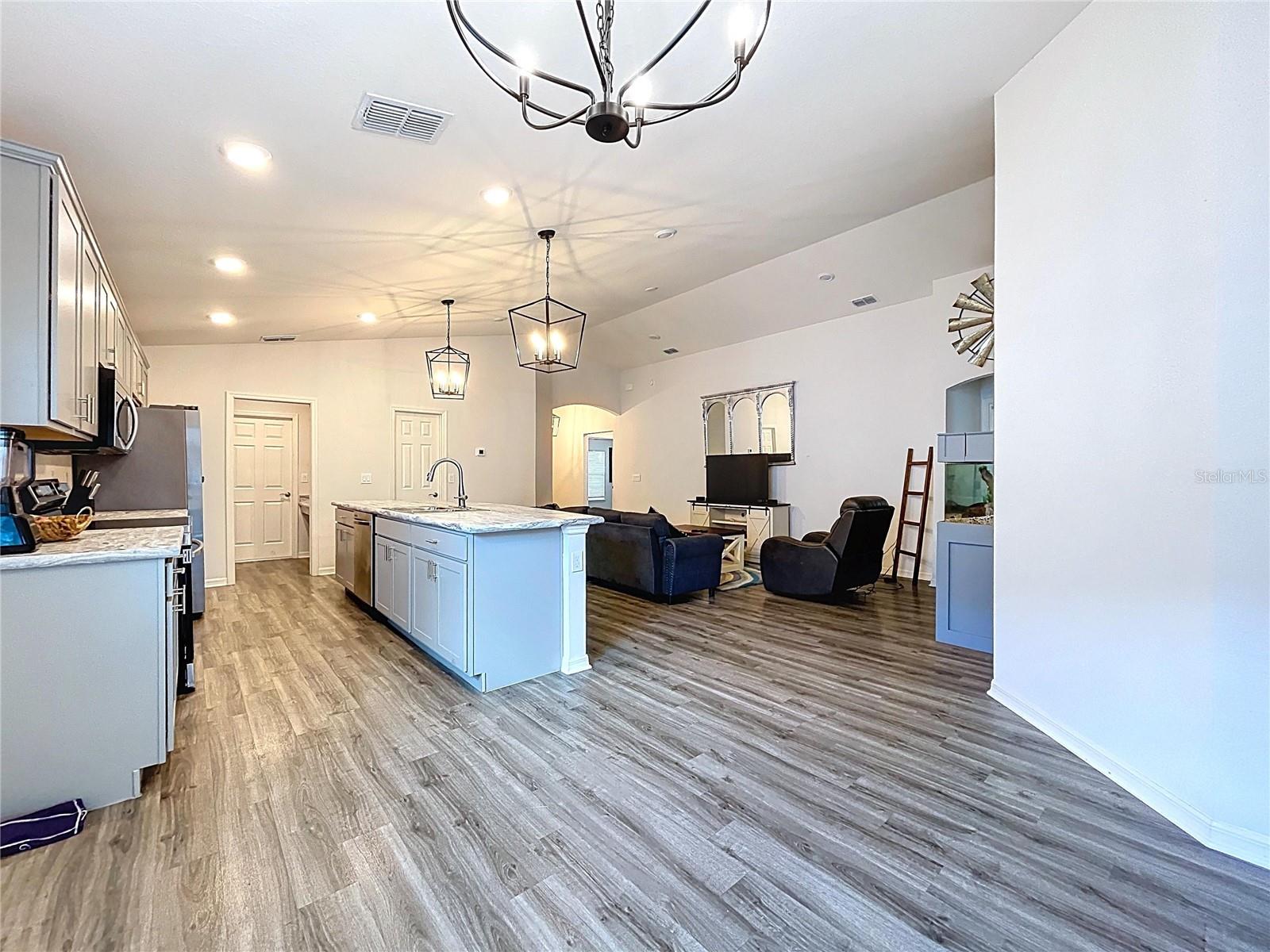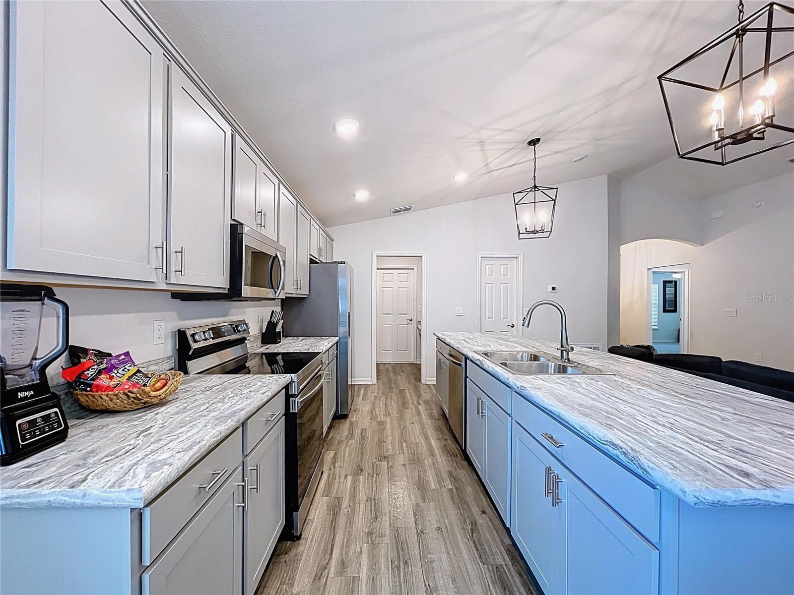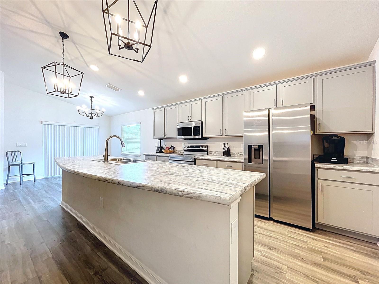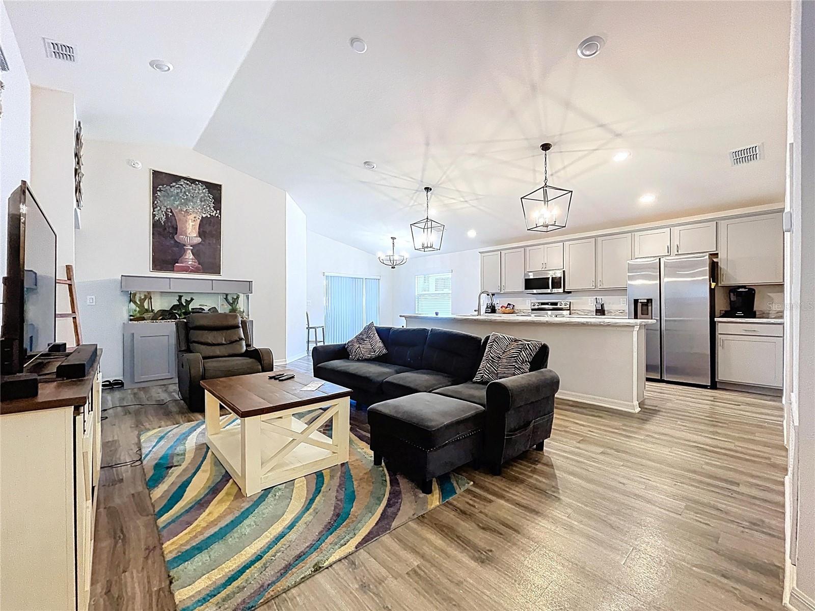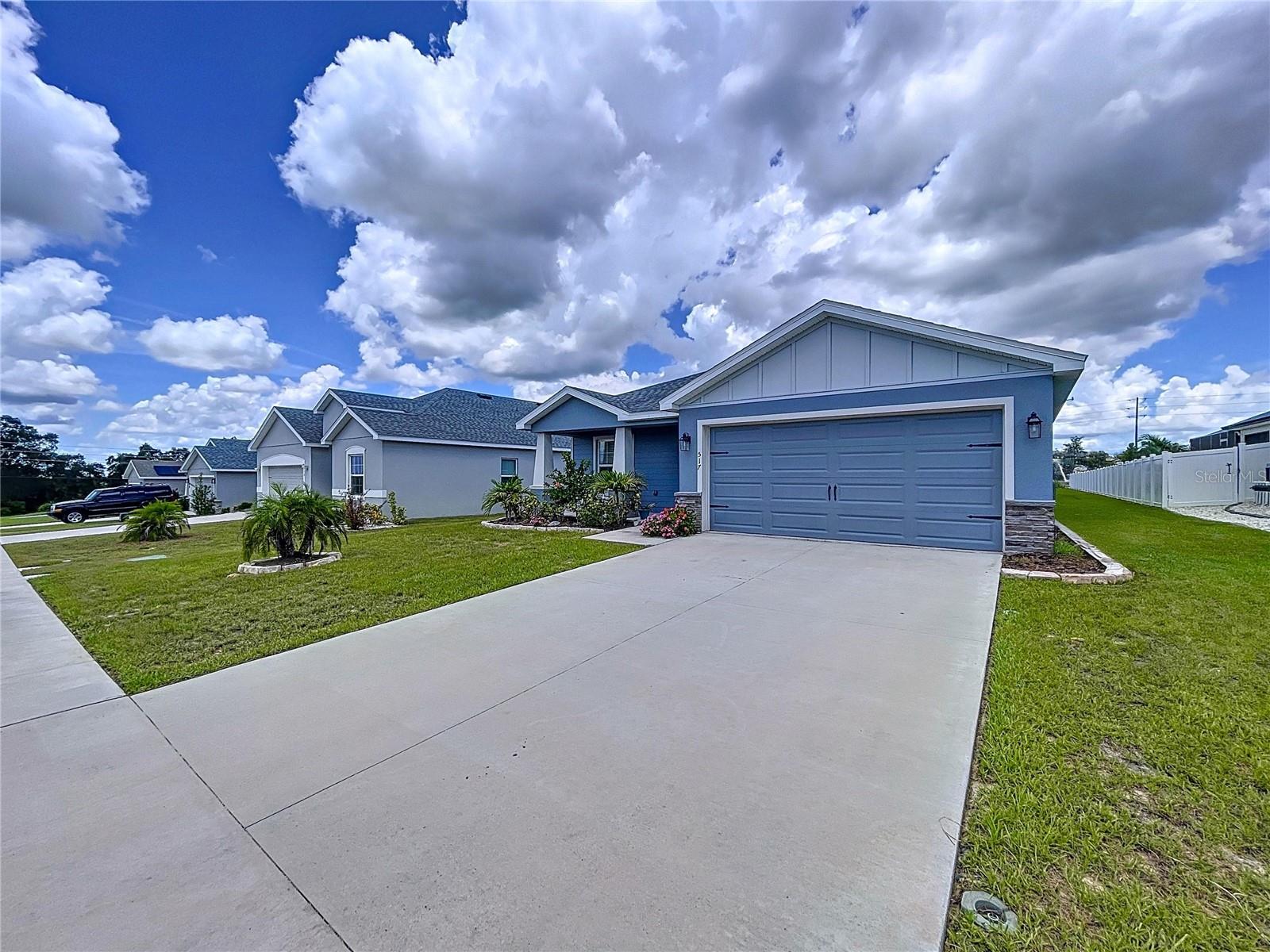 Modern Comfort Meets Timeless Style! Welcome to your dream home! This beautifully designed 4-bedroom, 2-bath new construction offers 1,715 sq. ft. of thoughtfully crafted living space—all on one convenient level. Step inside to a bright, open-concept layout perfect for both entertaining and everyday living. The chef-inspired kitchen features elegant stone-gray shaker cabinets with crown molding, sleek Samsung stainless steel appliances, a walk-in pantry, and a spacious island that seamlessly flows into the dining café and gathering room. You'll love the stylish and durable luxury vinyl plank flooring throughout the main living areas, laundry room, and bathrooms, while the bedrooms have plush, stain-resistant carpeting for added comfort. The private owner’s suite is your personal retreat, complete with a walk-in closet and a spa-like en-suite bath featuring dual vanities, a tiled walk-in shower, and a private water closet. Additional highlights include: Covered lanai for relaxing outdoors 2-car garage Custom-fit window blinds throughout Architectural shingles for a classic look Energy-efficient insulation and windows This home combines modern finishes with quality craftsmanship—ready for you to move in and make it your own. Don’t miss this incredible opportunity!