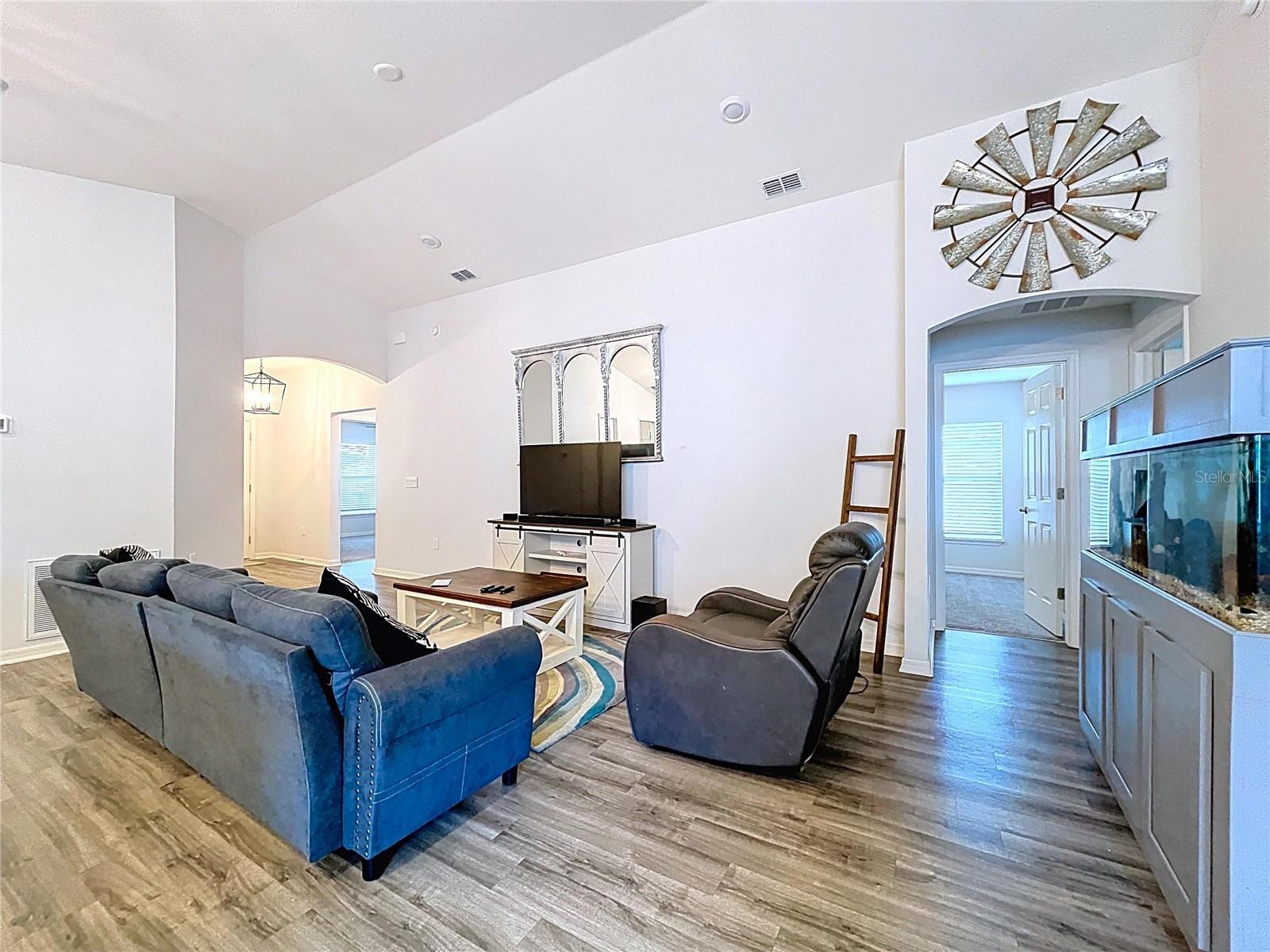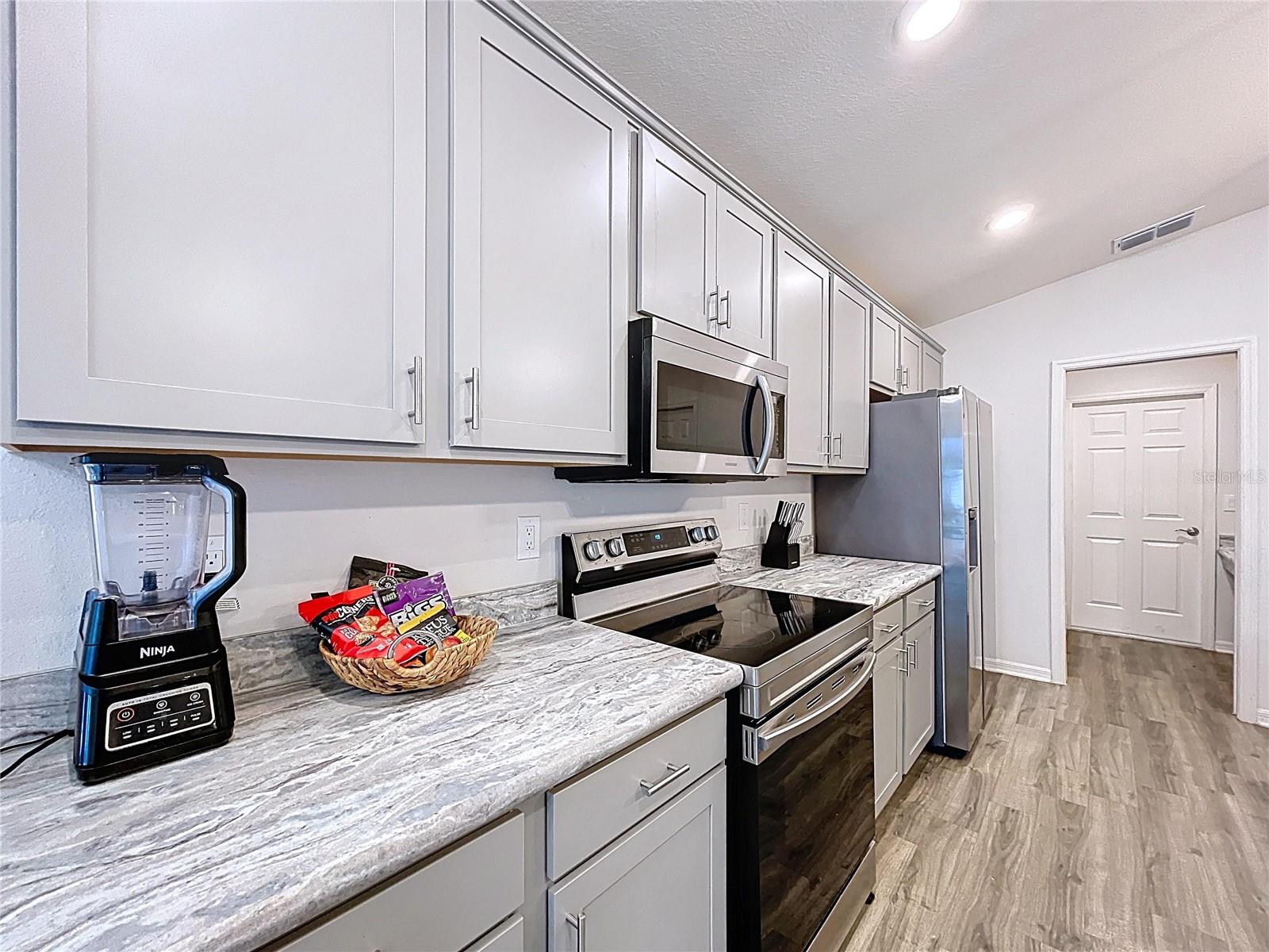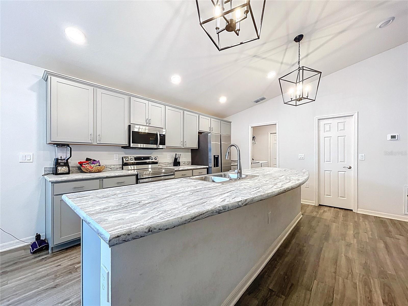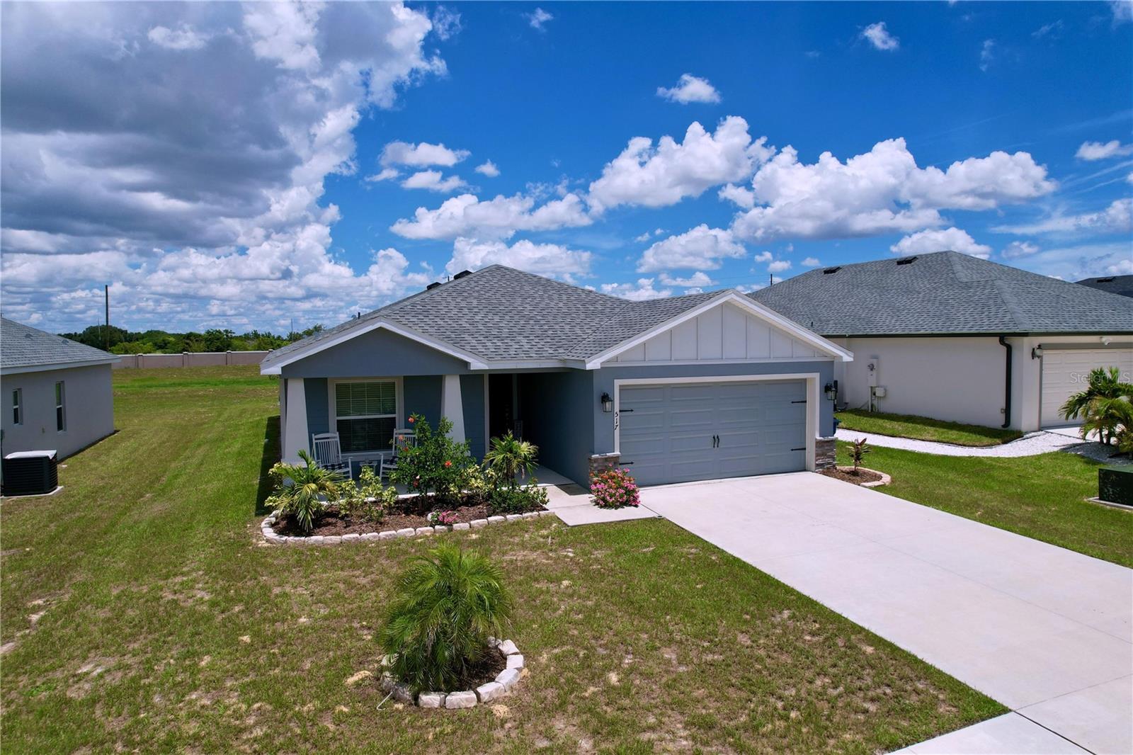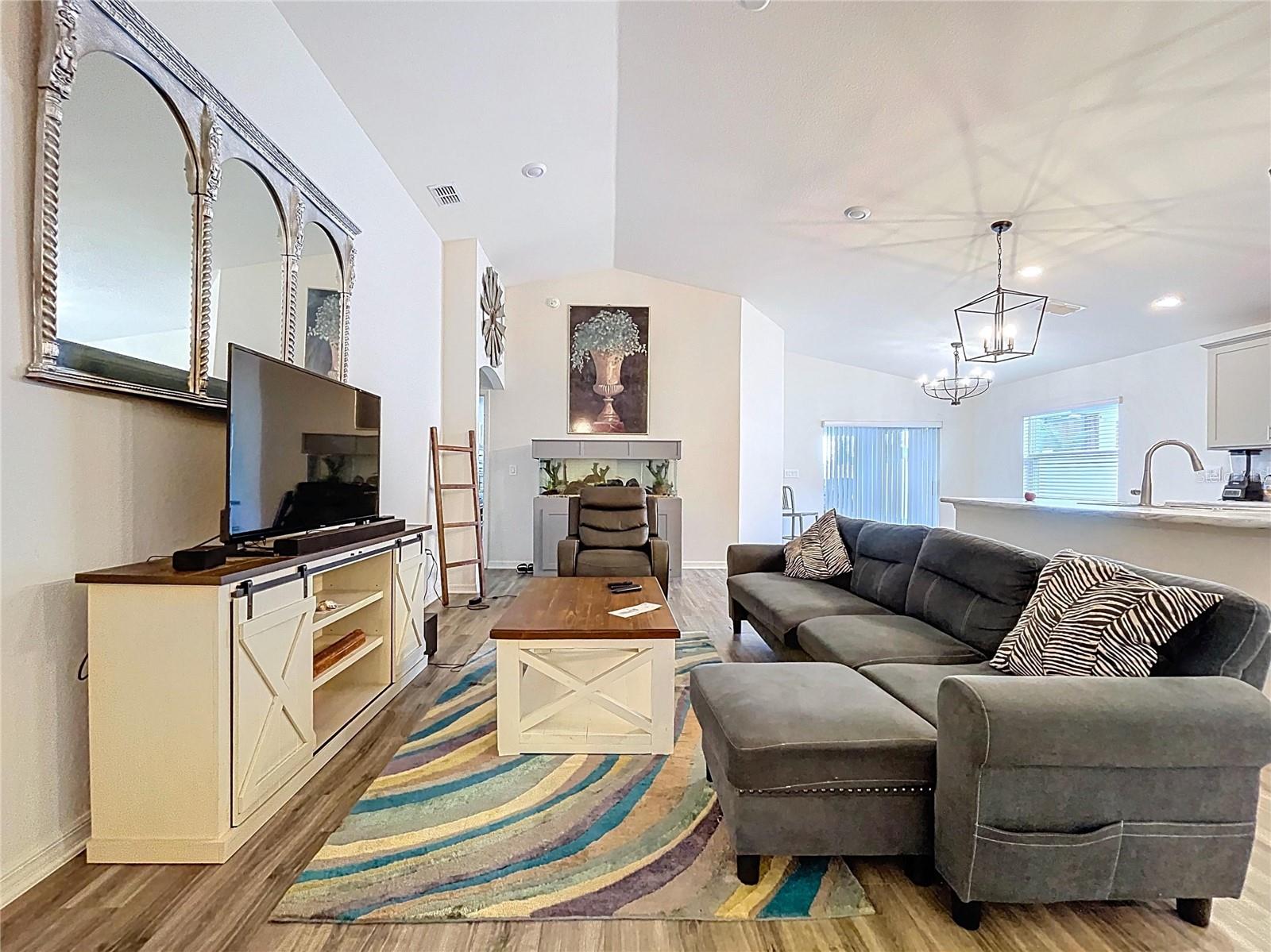 Modern Comfort Meets Timeless Style! Welcome to your dream home! This beautifully designed 4-bedroom, 2-bath new construction offers 1,715 sq. ft. of thoughtfully crafted living space—all on one convenient level. Step inside to a bright, open-concept layout perfect for both entertaining and everyday living. The chef-inspired kitchen features elegant stone-gray shaker cabinets with crown molding, sleek Samsung stainless steel appliances, a walk-in pantry, and a spacious island that seamlessly flows into the dining café and gathering room. You'll love the stylish and durable luxury vinyl plank flooring throughout the main living areas, laundry room, and bathrooms, while the bedrooms have plush, stain-resistant carpeting for added comfort. The private owner’s suite is your personal retreat, complete with a walk-in closet and a spa-like en-suite bath featuring dual vanities, a tiled walk-in shower, and a private water closet. Additional highlights include: Covered lanai for relaxing outdoors 2-car garage Custom-fit window blinds throughout Architectural shingles for a classic look Energy-efficient insulation and windows This home combines modern finishes with quality craftsmanship—ready for you to move in and make it your own. Don’t miss this incredible opportunity!