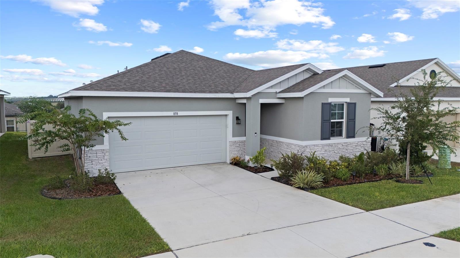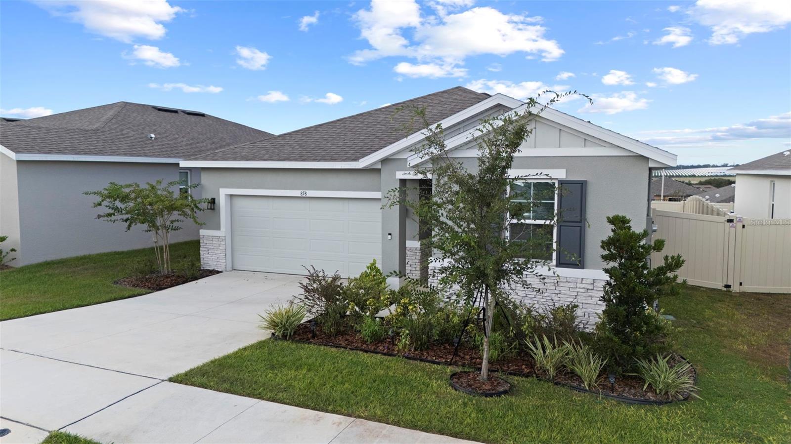 Practically BRAND NEW with Upgrades Galore! Why wait to build when you can move right into this stunning home built in 2024 that’s been thoughtfully upgraded inside and out? From the moment you arrive, the hardi board and brick accented exterior, upgraded landscaping, and fresh mulch set the tone for exceptional curb appeal. Inside, you’ll find a light-filled open layout with wood plank tile flooring throughout the main living areas and LVP in the primary bedroom and bedroom 3 for style and durability. The chef’s kitchen is a true centerpiece, boasting a stylish backsplash, custom lighting, and upgraded fixtures, oversized island and all appliances stay, including washer and dryer! The spacious family room is perfect for entertaining, featuring a mounted TV setup with hidden conduit for wiring for a sleek look, while custom ceiling fans add comfort in every room and even out to the screened lanai. Retreat to the primary suite where the primary walk in shower offers an upgraded handheld shower head and thoughtful finishes. Additional highlights include whole-home blinds, a Ring doorbell, a new vinyl fence, and upgraded exterior details! Practical upgrades like the Generac generator with dedicated outlet, LED can lighting in the garage, and garage door opener bring peace of mind and everyday convenience. Perfectly located, this home offers the best of both worlds! Just about an hour to the thrills of Sebring International Raceway in one direction, and the vibrant city life of Tampa in the other. Bok Tower Gardens & Legoland also within minutes! Whether you’re seeking weekend adventures or quiet evenings at home, this property delivers it all. With modern design, upgraded finishes, and a prime location, this home is move-in ready and just waiting for you! Schedule your personal tour today!