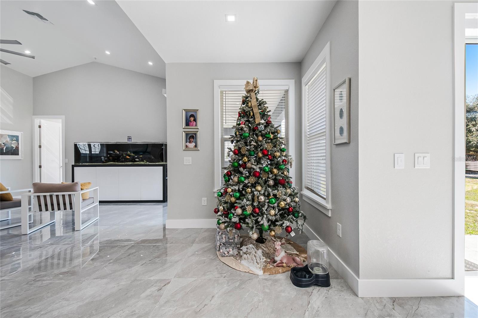 Custom-built and thoughtfully designed, this one-acre corner-lot residence offers a rare sense of space, privacy, and calm within a peaceful lakefront community with lake access and an optional HOA of just $150 yearly. Created for an owner who valued quality, comfort, and quiet living, the home feels intentional, refined, and welcoming from the moment you arrive. Vaulted ceilings and 33x33 porcelain tile flooring throughout create an open, sun-filled interior with a seamless flow. The kitchen serves as the heart of the home, featuring quartz countertops, LG stainless steel appliances, and a layout ideal for everyday living and relaxed entertaining. Each bedroom features custom-built closets, while the primary suite offers spacious walk-in closets that balance elegance and functionality. Step outside to an expansive backyard that feels like a private retreat, complete with avocado and mango trees and ample space to relax, gather, or enjoy the quiet surroundings. The corner-lot setting enhances privacy and flexibility. This home is designed to slow life down—where refined finishes, generous land, and a tranquil, lake-oriented setting come together effortlessly.