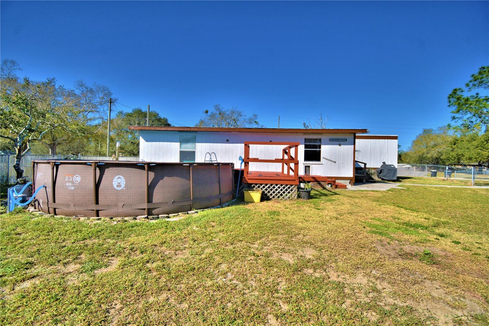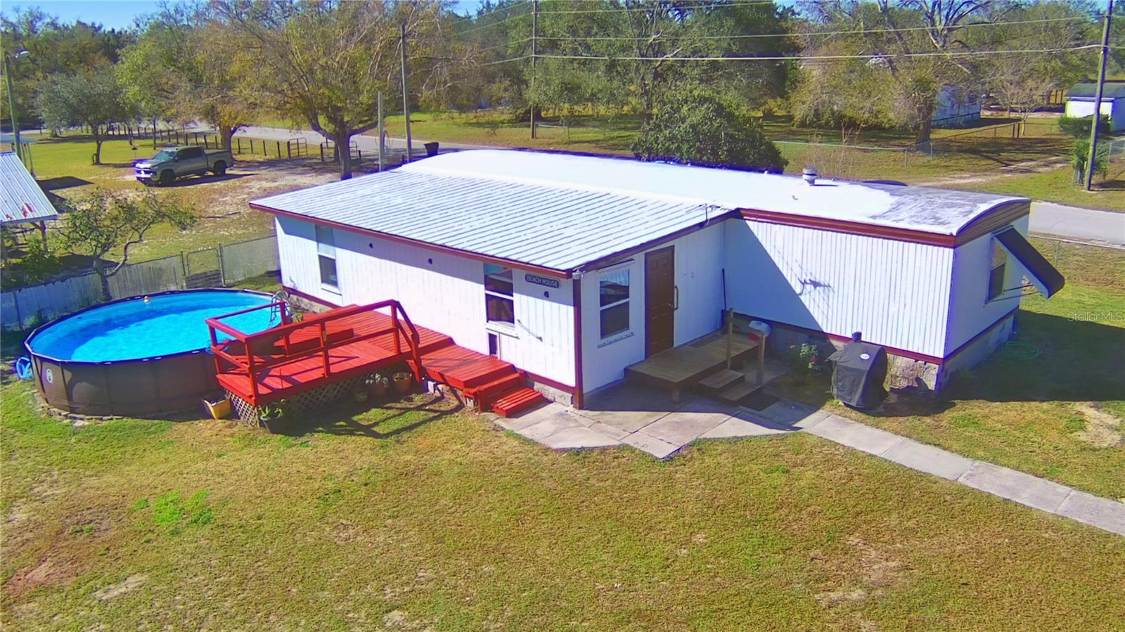 MOTIVATED SELLER !!! Come see this beautifully kept manufactured home on more than one acre of cleared land. This home is 3 bedrooms 1 bath and has plenty of space and no HOA . The Primary bedroom of this home comes with a beautiful custom built closet and bookshelf. The bathroom has custom built shelving with a rustic sliding barndoor. Dual sinks are in the kitchen with a spacious attached breakfast bar. On the property there are 24 fruit trees , a shed to store boats/equipment and a pool with a built on deck. This property is located a short distance from Cherry pocket and is the perfect place if you are looking for a quiet and serene area. Schedule your showing today !
