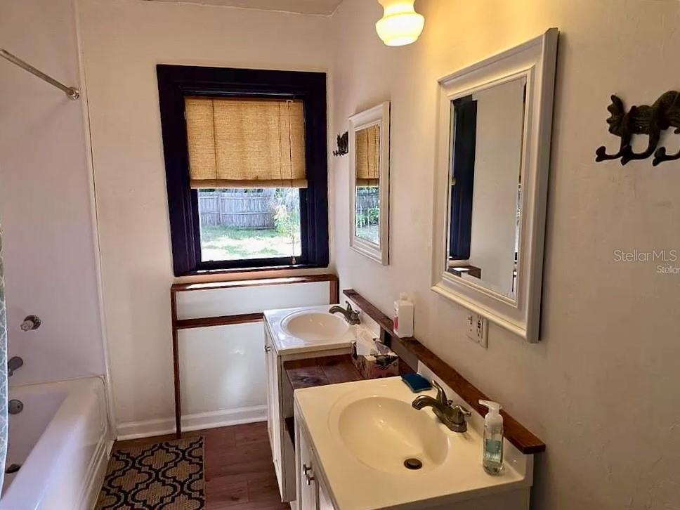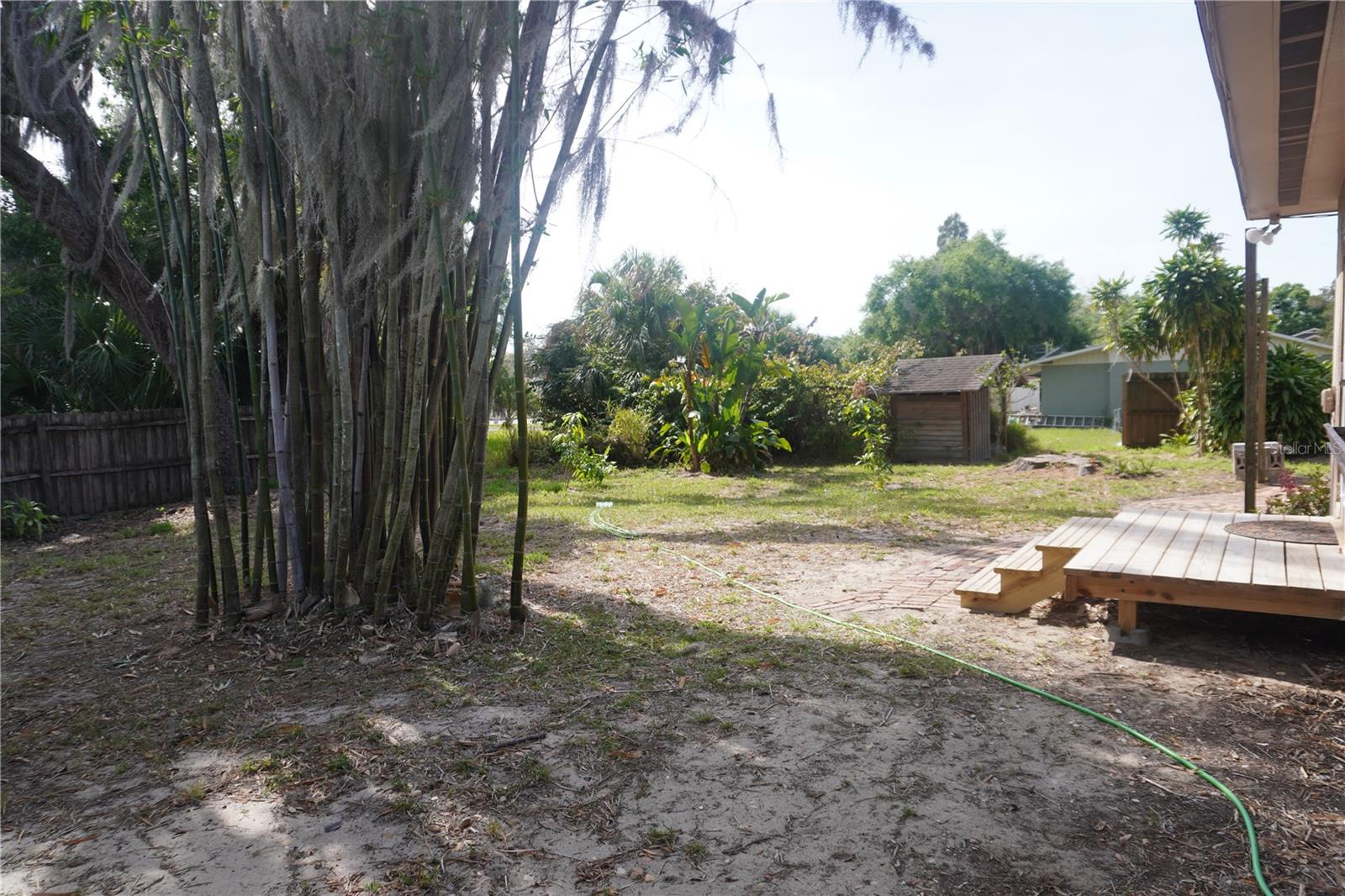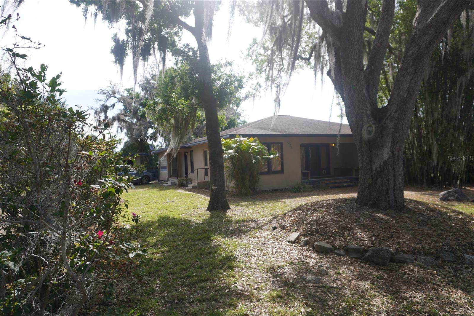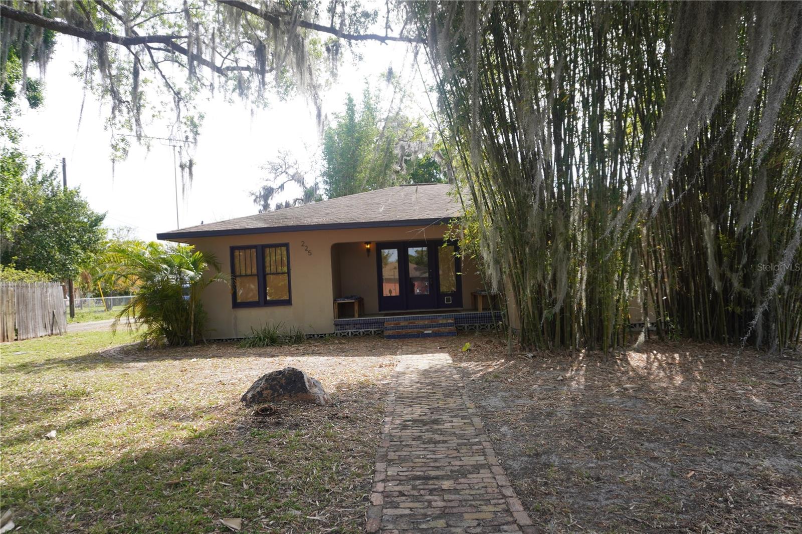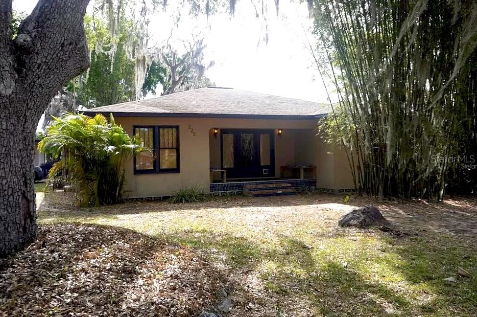There is a brand new roof on this home as well as an electric attic fan for more energy efficiency! Refrigerator and other kitchen appliances are under a 1 year warranty as well. Don't let this one get away! Own this well-maintained mid-century modern home on almost 1/3 of an acre of live oaks, bamboo, and fruit trees! The property is located only two blocks from historic downtown Lake Wales and four blocks from the lake and its paved trail. The home features a beautiful front porch that is perfect for an afternoon nap. Passing through the glassed-in front entrance, you will walk onto a beautiful “backgammon” wood floor gracing a huge open living area. All the original hardwood floors are also found in the bedrooms and hallway. The large eat-in kitchen is newly tiled and has a newer dishwasher, modern refrigerator, and range. The kitchen area is an add-on to the original home and is cooled by its own high-efficiency window unit, while the main house is centrally air-conditioned and heated. The single large bathroom has been updated with an acrylic tub, shower, and luxury vinyl flooring. All windows have rolling shades that stay with the home. Stylish vintage furniture will also convey with the home. And if that wasn't enough, there is a detached one-car garage with a workshop space large enough for a motorcycle or lawn tractor. The ample backyard is partially fenced and features a patio with a cast-concrete table and grill, a chicken coop (that could use some clearing up), and newly planted fruit trees. Don't let this vintage Florida home get away! Schedule your private showing today and own a piece of history in downtown Lake Wales.