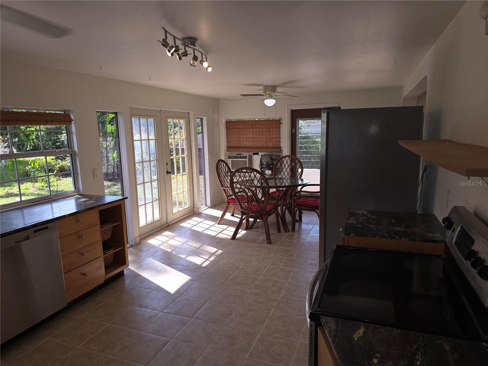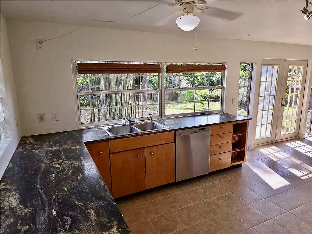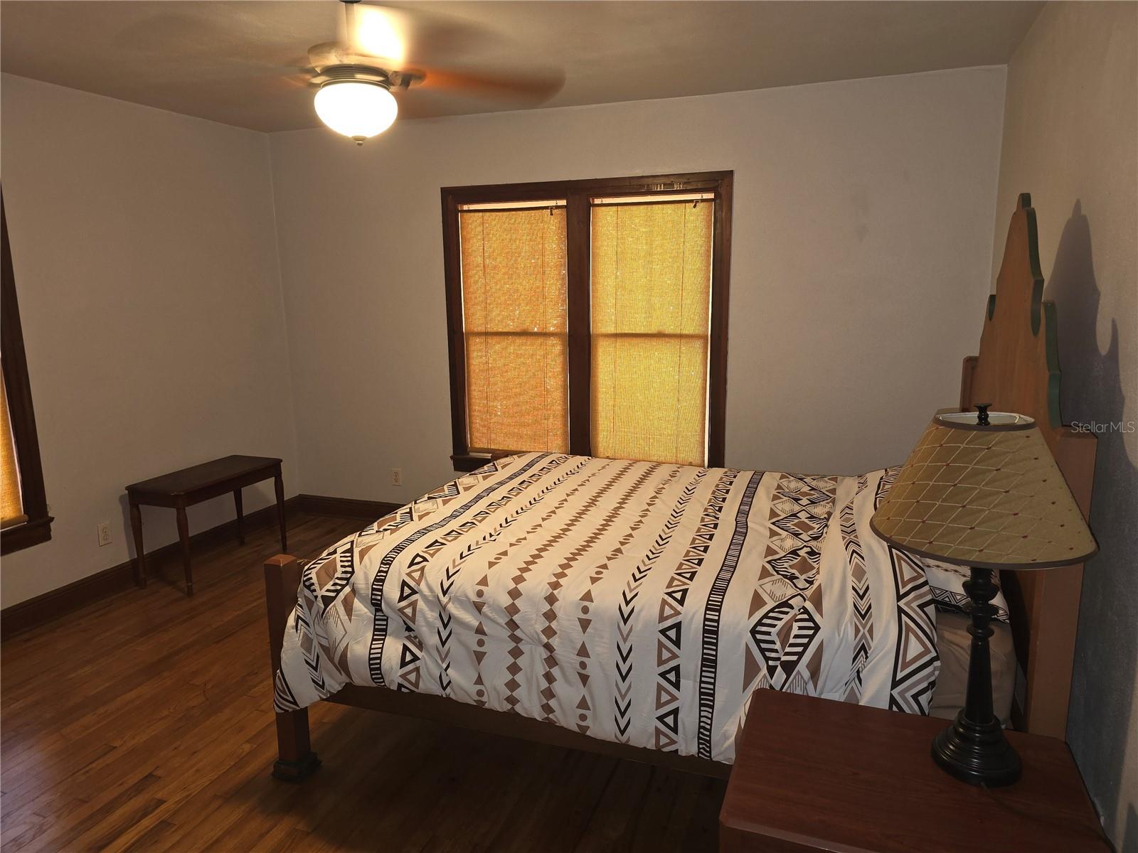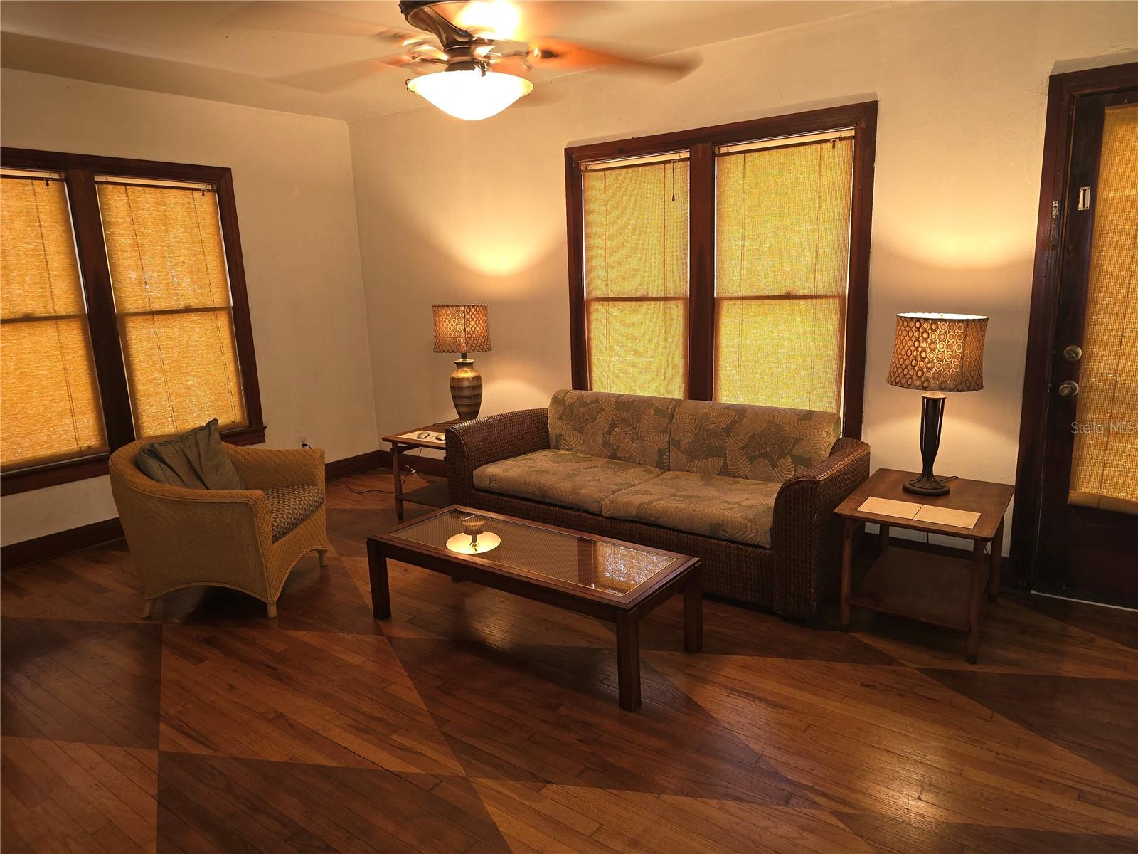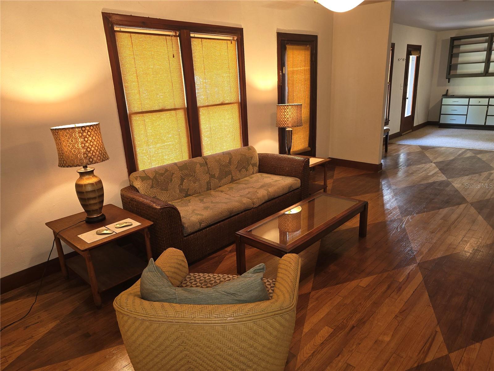 There is a brand new roof on this home as well as an electric attic fan for more energy efficiency! Refrigerator and other kitchen appliances are under a 1 year warranty as well. Don't let this one get away! Own this well-maintained mid-century modern home on almost 1/3 of an acre of live oaks, bamboo, and fruit trees! The property is located only two blocks from historic downtown Lake Wales and four blocks from the lake and its paved trail. The home features a beautiful front porch that is perfect for an afternoon nap. Passing through the glassed-in front entrance, you will walk onto a beautiful “backgammon” wood floor gracing a huge open living area. All the original hardwood floors are also found in the bedrooms and hallway. The large eat-in kitchen is newly tiled and has a newer dishwasher, modern refrigerator, and range. The kitchen area is an add-on to the original home and is cooled by its own high-efficiency window unit, while the main house is centrally air-conditioned and heated. The single large bathroom has been updated with an acrylic tub, shower, and luxury vinyl flooring. All windows have rolling shades that stay with the home. Stylish vintage furniture will also convey with the home. And if that wasn't enough, there is a detached one-car garage with a workshop space large enough for a motorcycle or lawn tractor. The ample backyard is partially fenced and features a patio with a cast-concrete table and grill, a chicken coop (that could use some clearing up), and newly planted fruit trees. Don't let this vintage Florida home get away! Schedule your private showing today and own a piece of history in downtown Lake Wales.