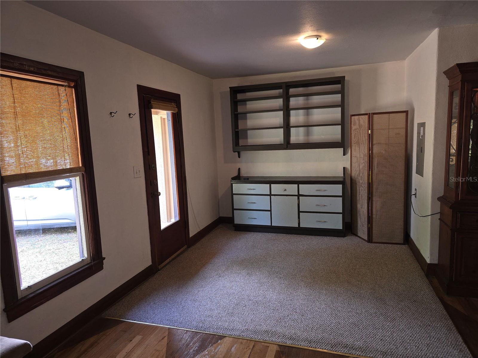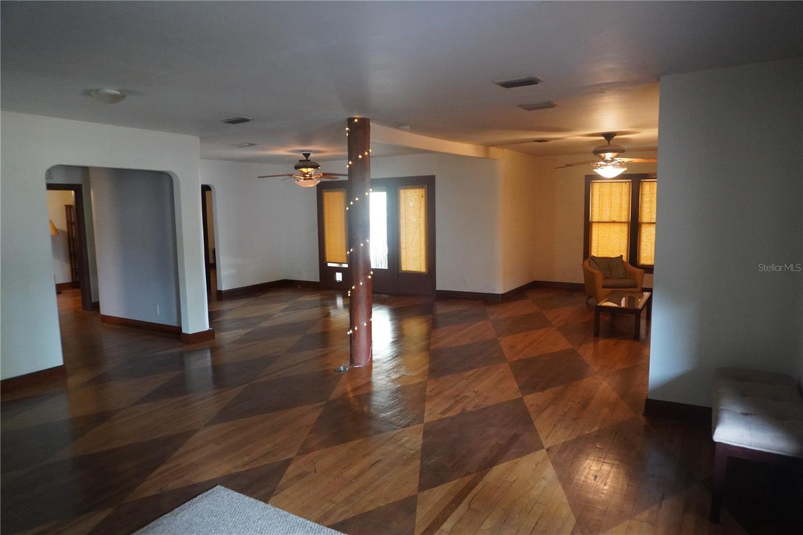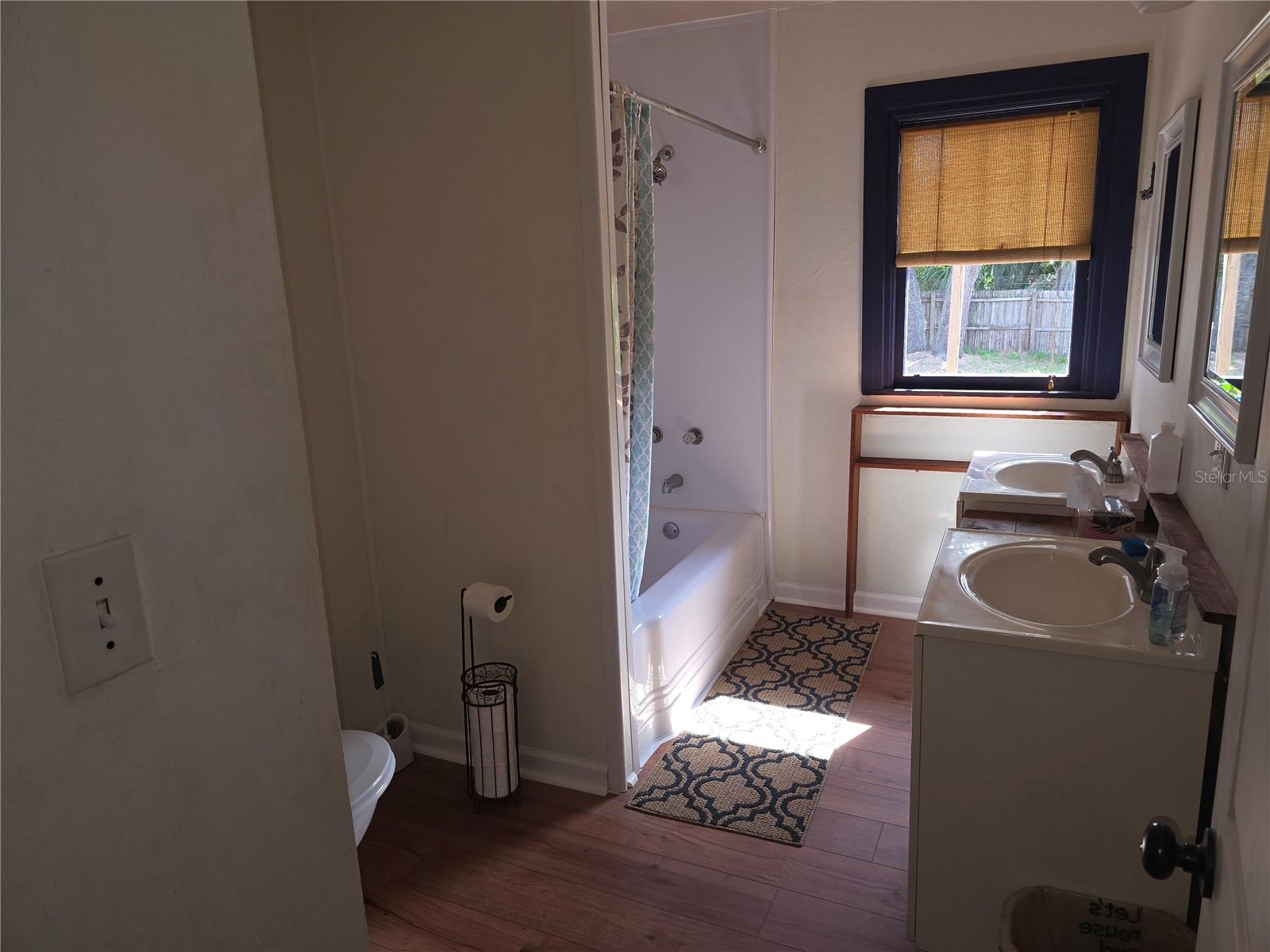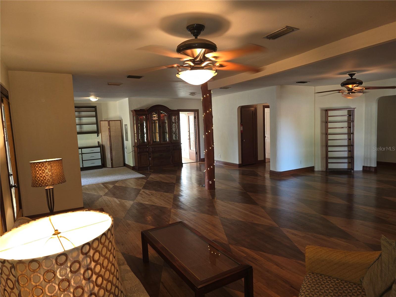 There is a brand new roof on this home as well as an electric attic fan for more energy efficiency! Refrigerator and other kitchen appliances are under a 1 year warranty as well. Don't let this one get away! Own this well-maintained mid-century modern home on almost 1/3 of an acre of live oaks, bamboo, and fruit trees! The property is located only two blocks from historic downtown Lake Wales and four blocks from the lake and its paved trail. The home features a beautiful front porch that is perfect for an afternoon nap. Passing through the glassed-in front entrance, you will walk onto a beautiful “backgammon” wood floor gracing a huge open living area. All the original hardwood floors are also found in the bedrooms and hallway. The large eat-in kitchen is newly tiled and has a newer dishwasher, modern refrigerator, and range. The kitchen area is an add-on to the original home and is cooled by its own high-efficiency window unit, while the main house is centrally air-conditioned and heated. The single large bathroom has been updated with an acrylic tub, shower, and luxury vinyl flooring. All windows have rolling shades that stay with the home. Stylish vintage furniture will also convey with the home. And if that wasn't enough, there is a detached one-car garage with a workshop space large enough for a motorcycle or lawn tractor. The ample backyard is partially fenced and features a patio with a cast-concrete table and grill, a chicken coop (that could use some clearing up), and newly planted fruit trees. Don't let this vintage Florida home get away! Schedule your private showing today and own a piece of history in downtown Lake Wales.