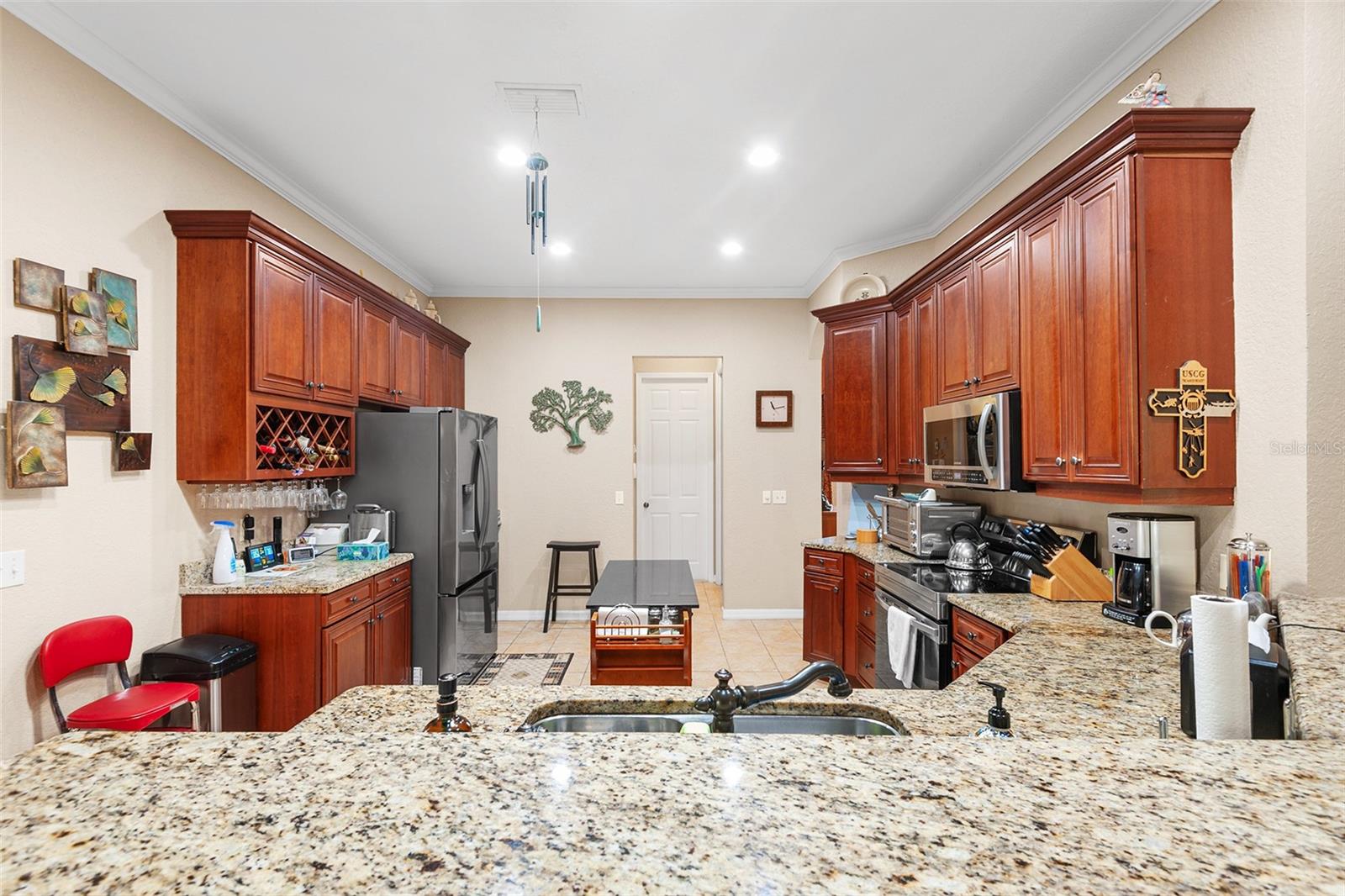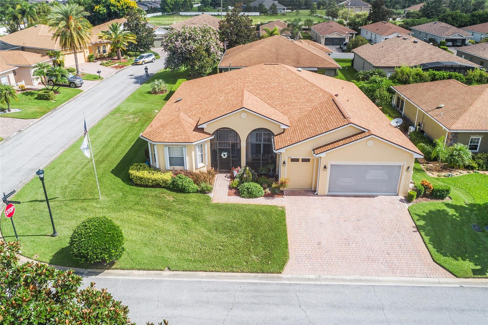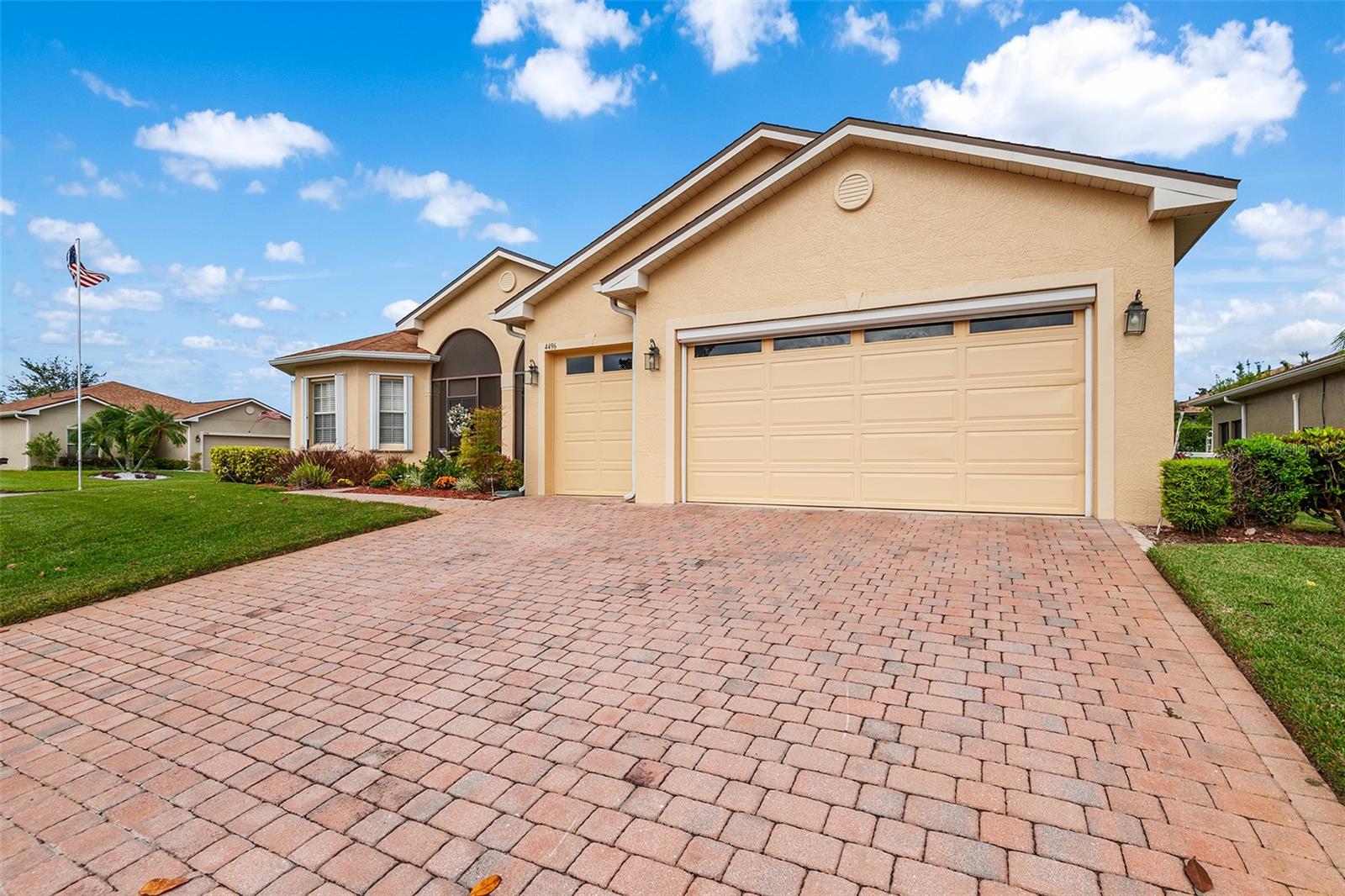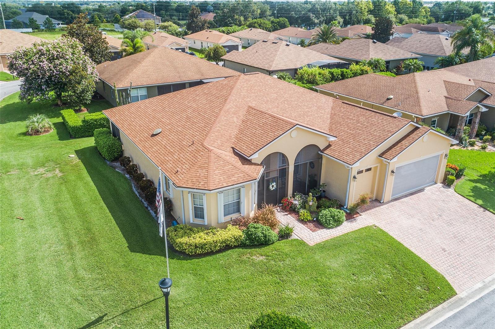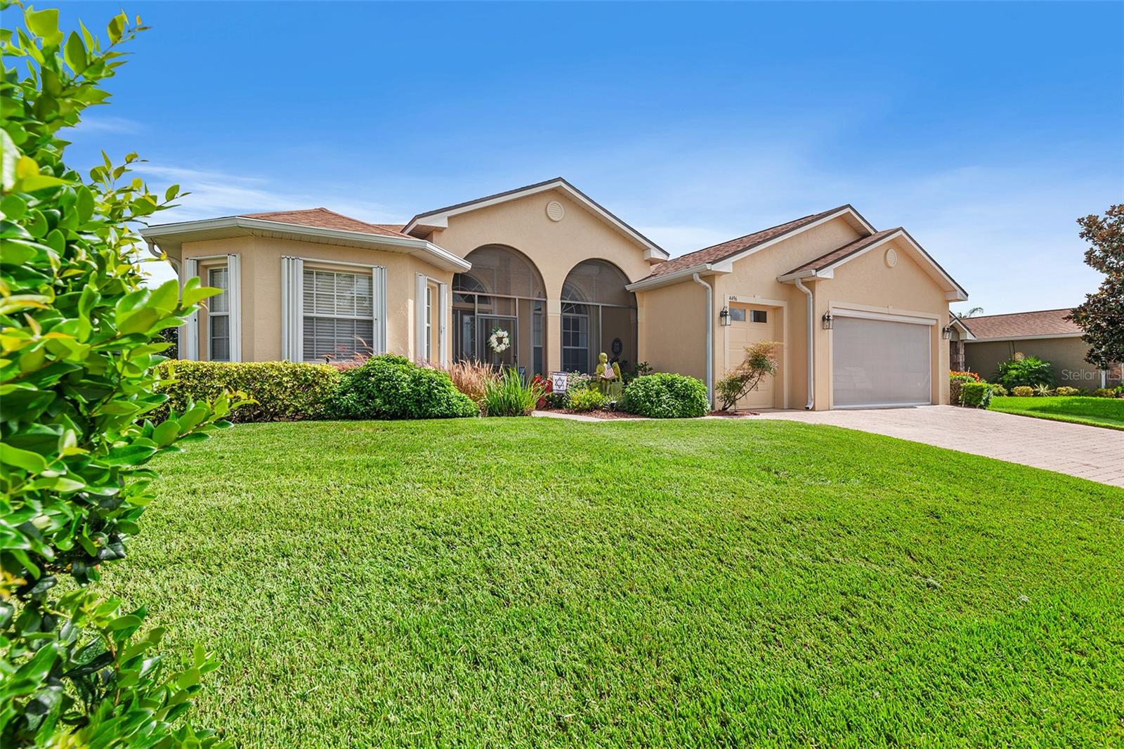 PRICE IMPROVEMENT!! VA ASSUMABLE MORTGAGE 2.62 FOR QUALIFIED BORROWERS! Located in Lake Ashton, this home combines practicality with luxury, offering a serene retreat in a community rich with activities and social opportunities. Imagine stepping into a charming 3-bedroom, 2-bath home perfectly situated on a corner lot. As you enter, you’re greeted by the open floorplan, accentuated by exquisite crown molding, which makes it ideal for both relaxation and entertaining guests. Elegant granite counter tops adorn the well-appointed kitchen with newer stainless-steel appliances and the Energy Star Maytag washer and dryer stay with the home, too. The triple split bedrooms set up allows for owners and guests to enjoy separate spaces. French doors lead into the owners' suite. With separate vanities and sinks, as well as a stand-up shower and separate walk-in tub, the ensuite provides owners a lovely sanctuary. The screened front porch invites you to unwind in the fresh air, while the enclosed back porch offers a private retreat. Peace of mind is ensured with the protection of hurricane shutters and a whole house generator. A spacious 2-car garage, complete with an electric roll down screen and an additional dedicated golf cart garage, comes with the home, and yes, the golf cart stays- ready for you to explore the community and its amenities. 2020- NEW ROOF. 2024- EXTERIOR PAINT, CDD Bond debt PAID IN FULL! Speaking of amenities, Lake Ashton is a vibrant, gated, 55+ golf community boasting 2 pools (one indoors), a state-of-the-art fitness center, restaurant, tennis courts, and bowling and many more offerings. Whether enjoying a round of golf or taking part in community events, there’s always something to do. With this home, it’s more than a house, it’s a lifestyle choice where every detail enhances your daily living experience. Convenient to shopping, restaurants, LEGOLAND, and both Tampa and Orlando international airports and area attractions.