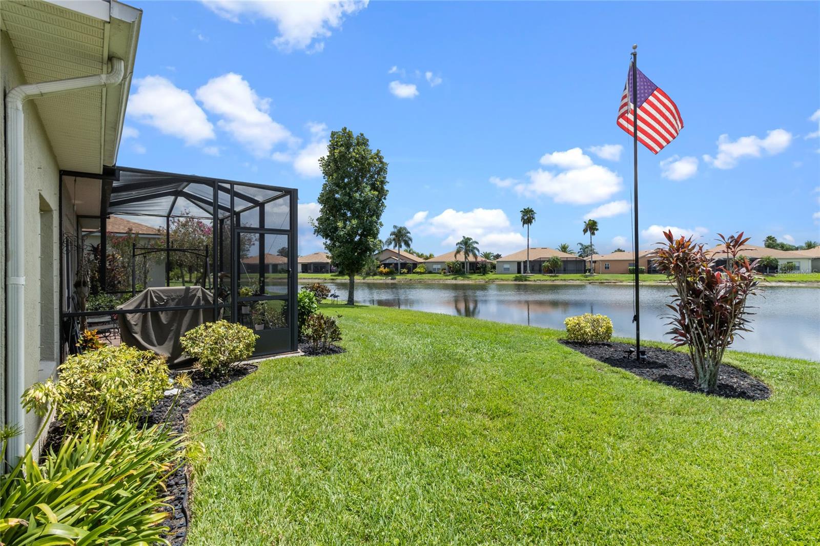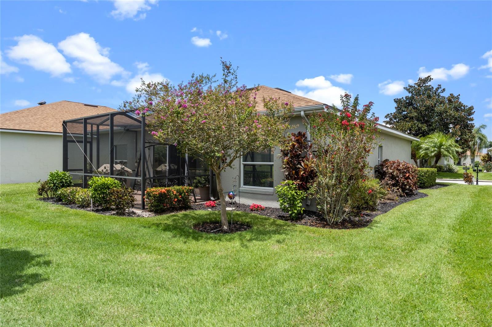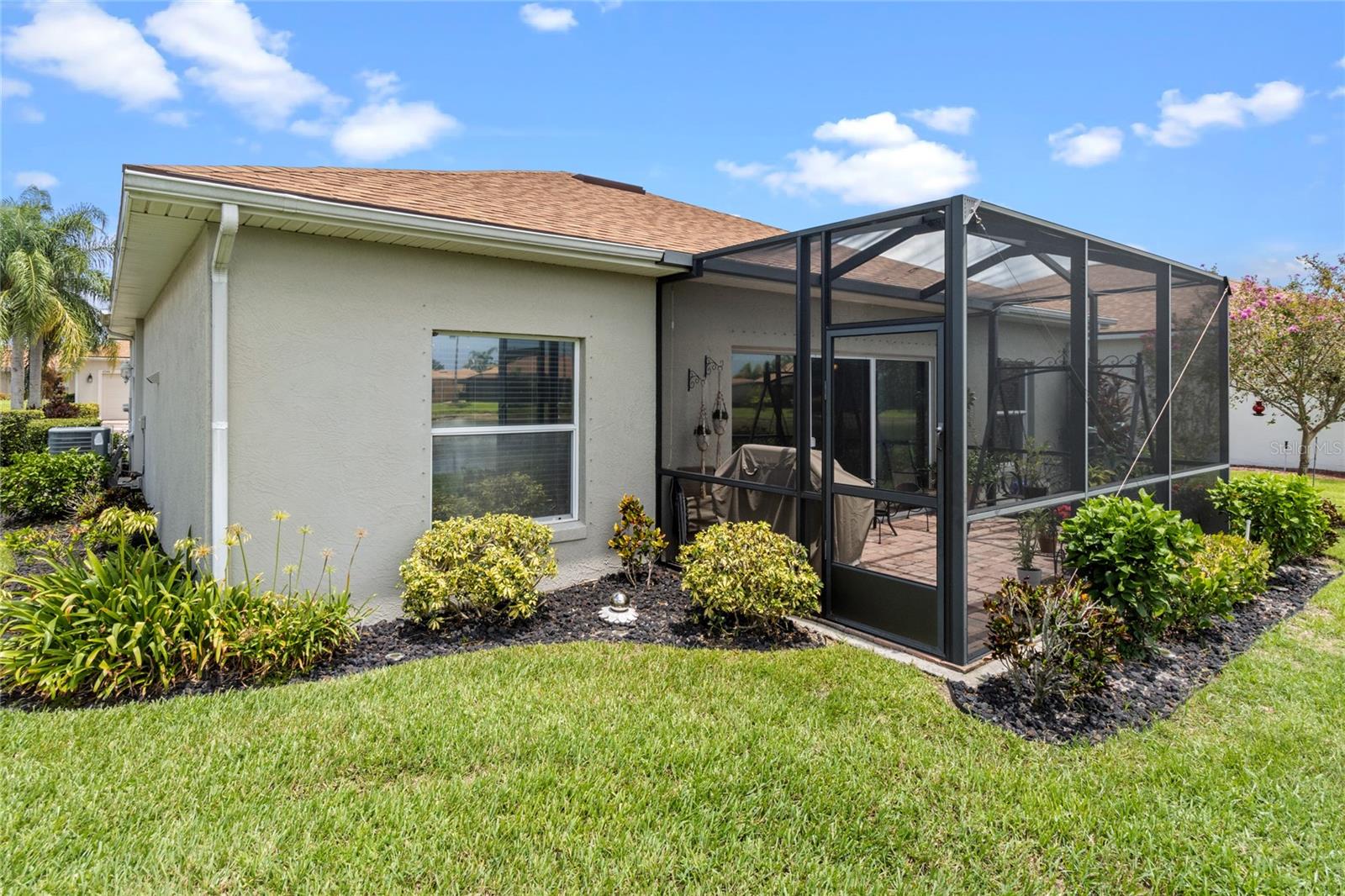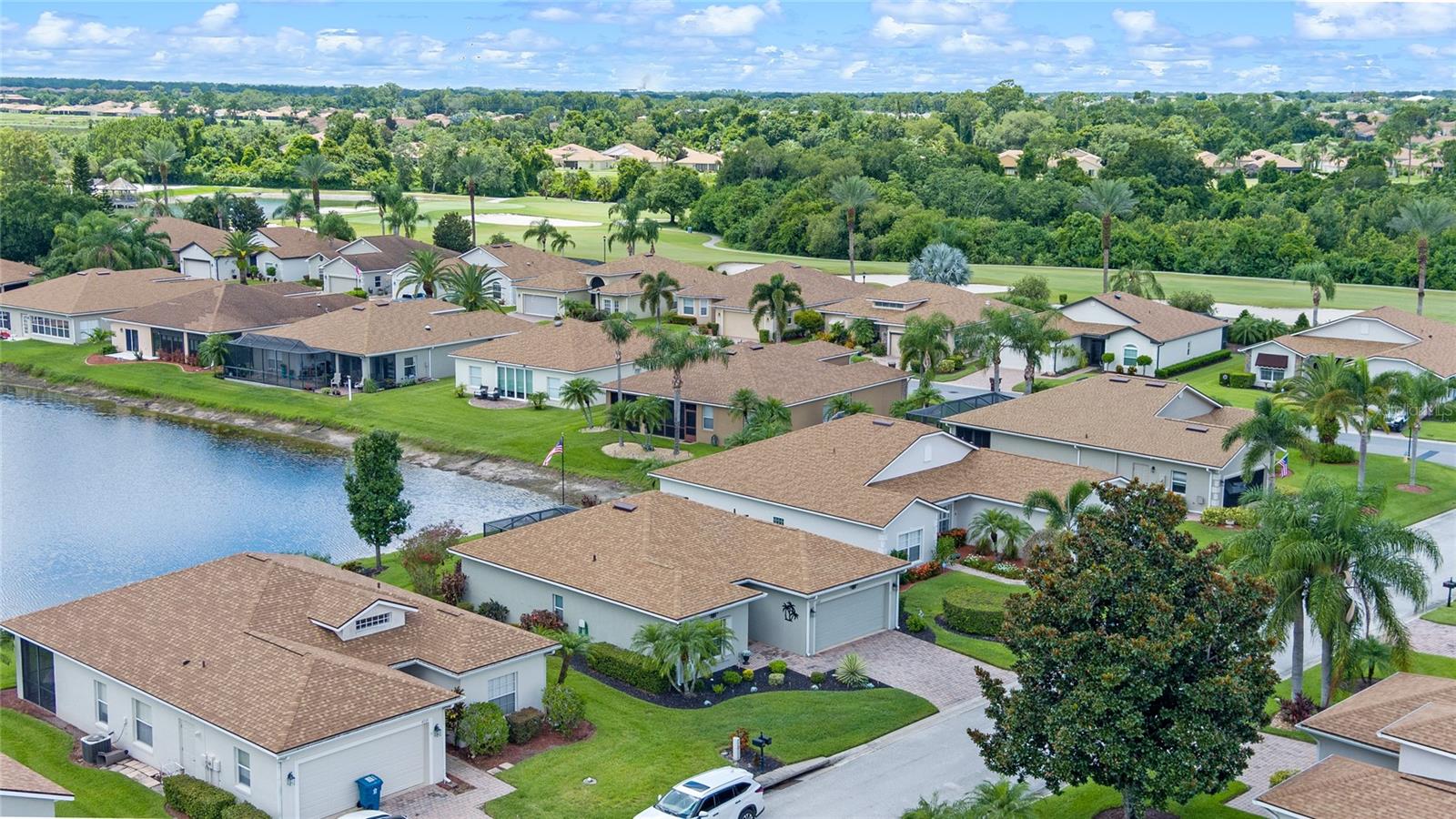 WALK THROUGH THE FRONT DOOR OF THIS IMMACULATE HOME AND SEE THE BREATHTAKING VIEW THAT COULD BE YOURS TO ENJOY EVERYDAY!! This two-bedroom, two-bathroom home is situated on approximately 0.14 acres of land. The property features approximately 1252 square feet of living space, which includes a BONUS ROOM and an open floor plan, providing a comfortable and functional living environment. The property is also part of a gated community with a guard, providing a secure and private living experience for the residents. The roof was replaced in 2022, water heater replaced in 2022, AC replaced in 2019. The home boasts a waterfront location, offering the homeowners the opportunity to enjoy the serene beauty of the pond in the backyard. The screened lanai overlooks the pond and offers enjoyable relaxation as you watch the birds and other wildlife. There is also access to Lake Ashton, where you will find a fishing pier, or go sailing. Water skiing is also allowed. The two-car garage offers ample storage space and convenience for the homeowner. The bonus room provides additional flexibility, allowing the space to be utilized in a variety of ways to suit the needs and preferences of the occupants. The community is situated within a golf course, lakefront setting, providing residents with the opportunity to enjoy the recreational amenities and scenic views. You do not have to be a golfer to live in Lake Ashton, but you won't feel left out as there are so many amenities, you will feel like you're living in a resort. The property is well-suited for individuals seeking a residence in a 55+ community, offering a peaceful and age-appropriate living environment. The home's open floor plan and beautiful views create a welcoming and inviting atmosphere, making it an ideal choice for those seeking a comfortable and accessible living space. If you enjoy the beach, you are only an hour and a half from the beaches on either side of the state. How about shopping? Nearly everything you can imagine is within a few minute's drive. Don't let this one slip through your fingers! Priced to sell and won't last long!