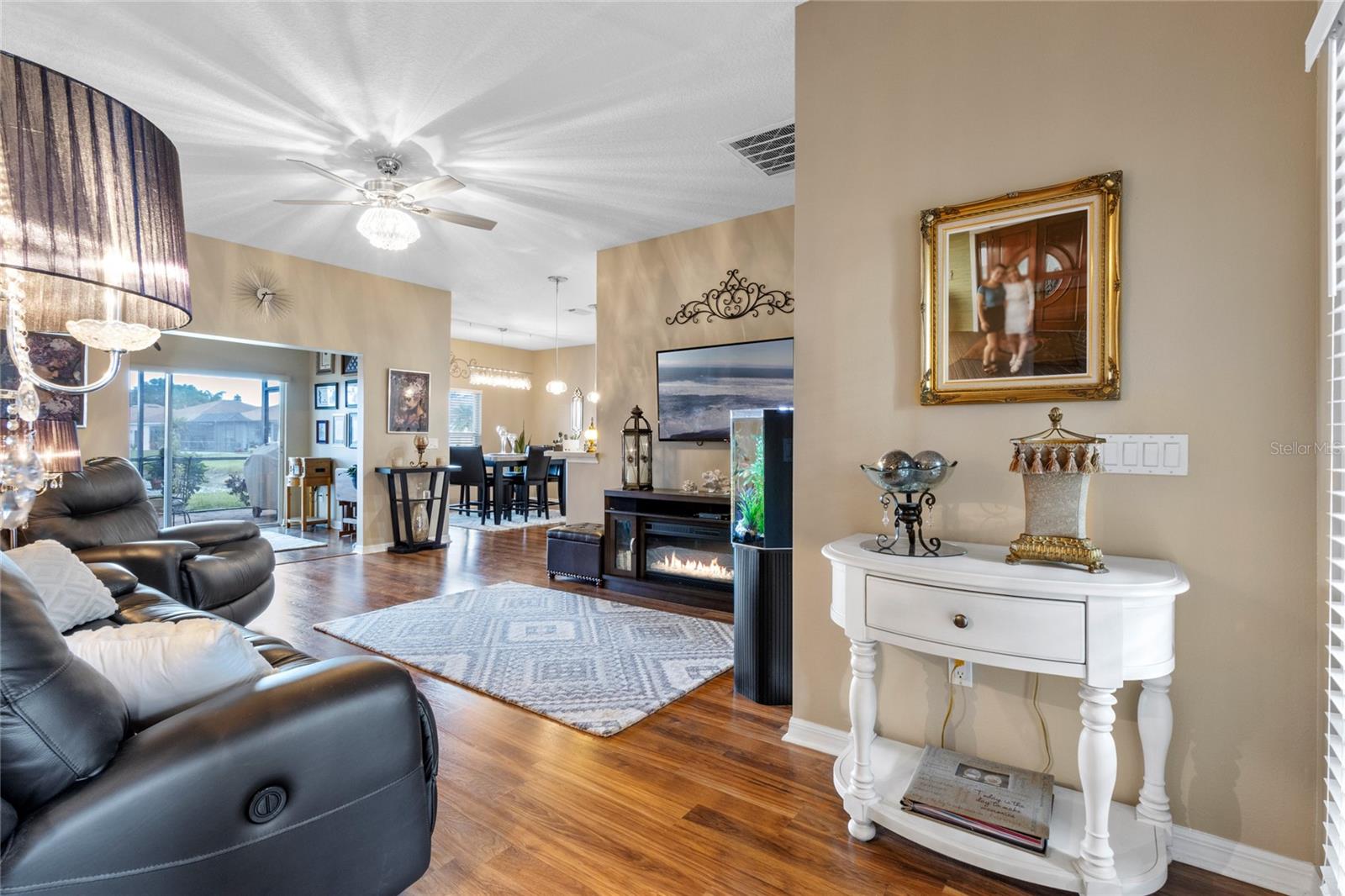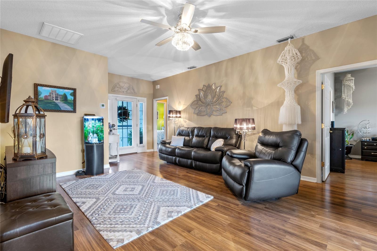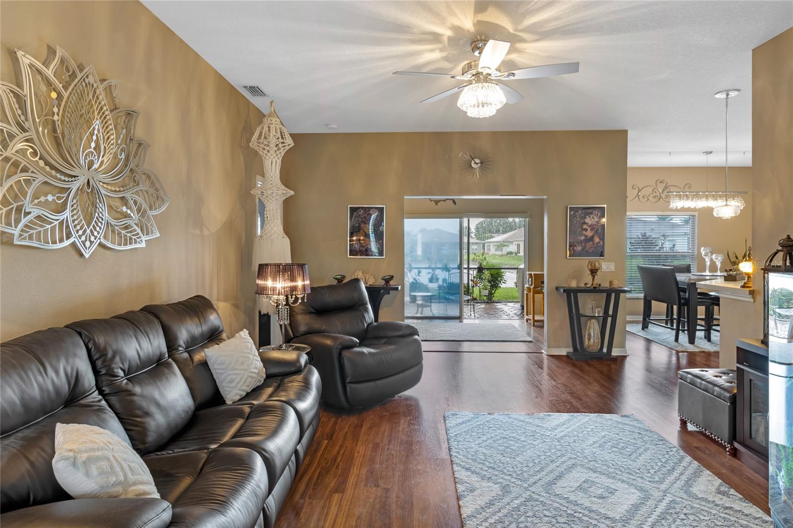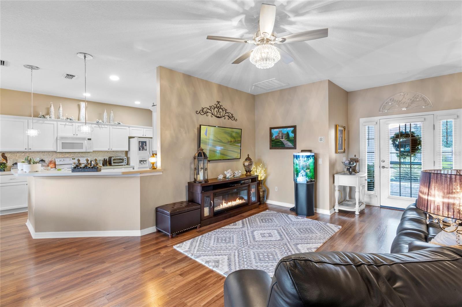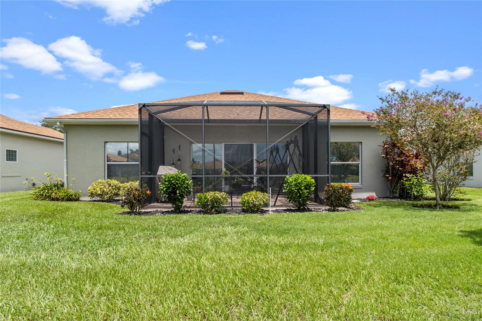 WALK THROUGH THE FRONT DOOR OF THIS IMMACULATE HOME AND SEE THE BREATHTAKING VIEW THAT COULD BE YOURS TO ENJOY EVERYDAY!! This two-bedroom, two-bathroom home is situated on approximately 0.14 acres of land. The property features approximately 1252 square feet of living space, which includes a BONUS ROOM and an open floor plan, providing a comfortable and functional living environment. The property is also part of a gated community with a guard, providing a secure and private living experience for the residents. The roof was replaced in 2022, water heater replaced in 2022, AC replaced in 2019. The home boasts a waterfront location, offering the homeowners the opportunity to enjoy the serene beauty of the pond in the backyard. The screened lanai overlooks the pond and offers enjoyable relaxation as you watch the birds and other wildlife. There is also access to Lake Ashton, where you will find a fishing pier, or go sailing. Water skiing is also allowed. The two-car garage offers ample storage space and convenience for the homeowner. The bonus room provides additional flexibility, allowing the space to be utilized in a variety of ways to suit the needs and preferences of the occupants. The community is situated within a golf course, lakefront setting, providing residents with the opportunity to enjoy the recreational amenities and scenic views. You do not have to be a golfer to live in Lake Ashton, but you won't feel left out as there are so many amenities, you will feel like you're living in a resort. The property is well-suited for individuals seeking a residence in a 55+ community, offering a peaceful and age-appropriate living environment. The home's open floor plan and beautiful views create a welcoming and inviting atmosphere, making it an ideal choice for those seeking a comfortable and accessible living space. If you enjoy the beach, you are only an hour and a half from the beaches on either side of the state. How about shopping? Nearly everything you can imagine is within a few minute's drive. Don't let this one slip through your fingers! Priced to sell and won't last long!