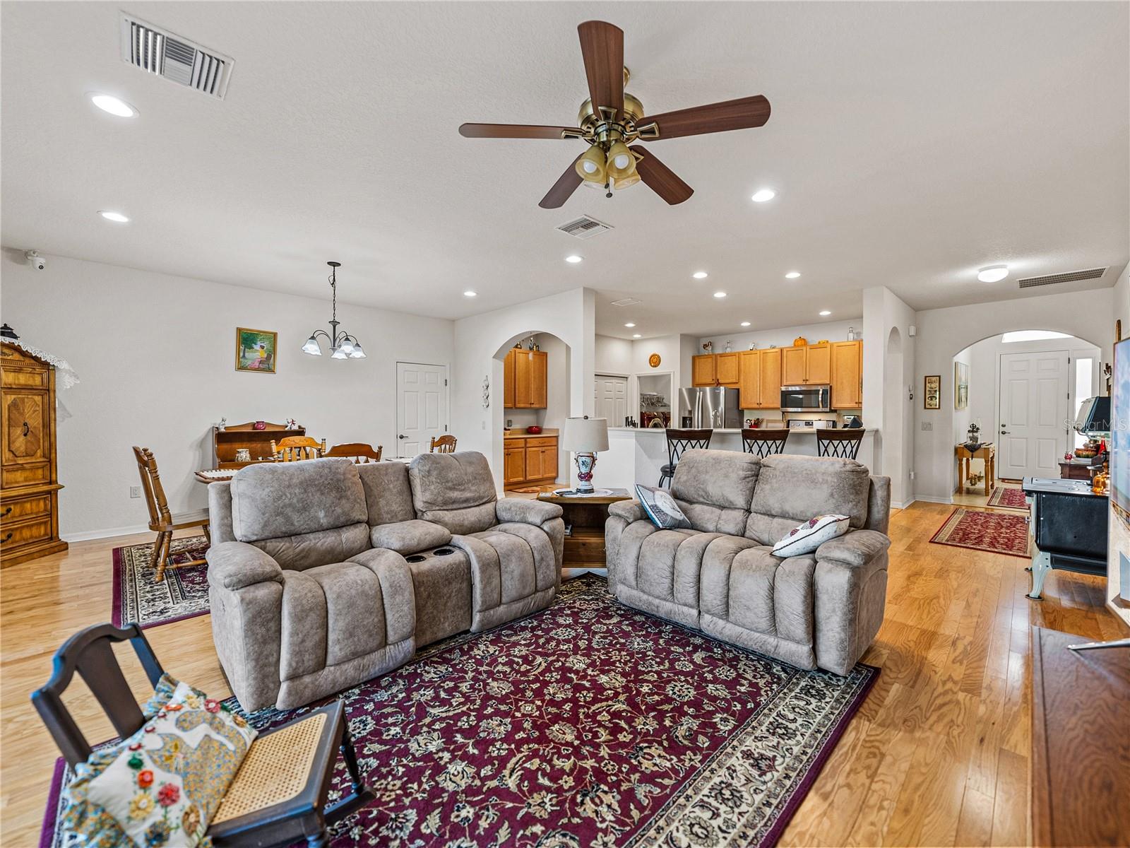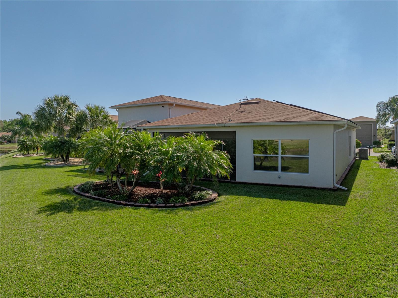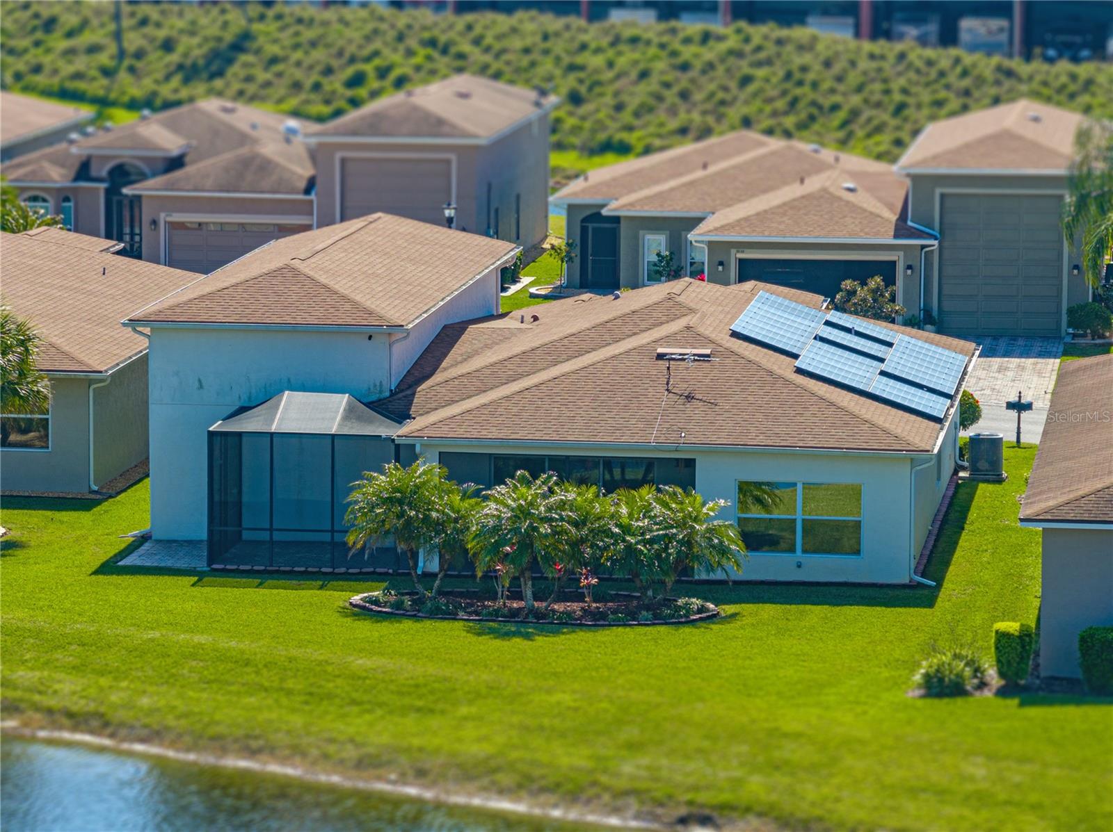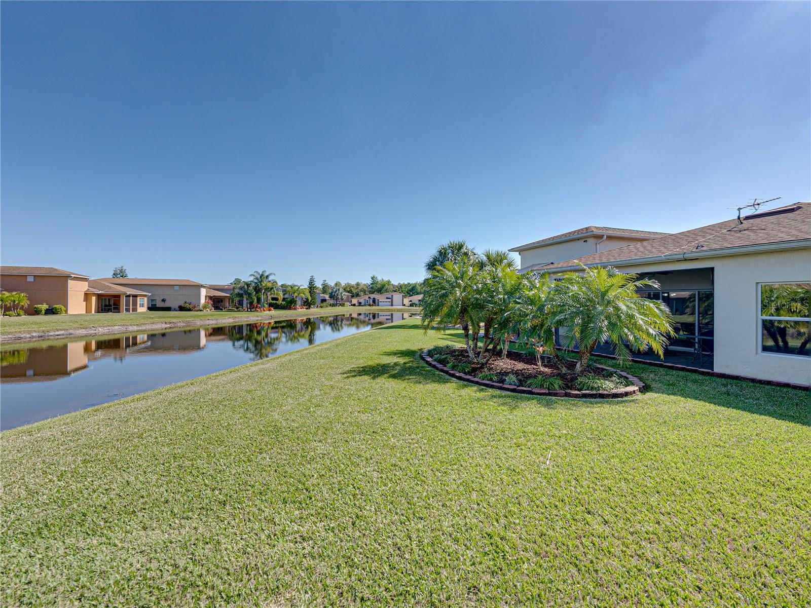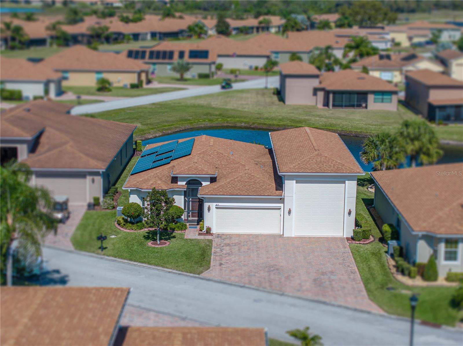 Built in 2016, this certified “Green Home” is one of the last RV homes built in Lake Ashton and it has a 4-year old solar system to minimize utility expenses! The 3-bedroom, 2-bath, open concept floor plan with attached 49’ RV garage makes this a great home base for your travel adventures! The property has excellent curb appeal with concrete edging around all landscape plantings. The front door features a screened entry. The kitchen has Cambria solid surface counters and custom, solid wood birch cabinets with 42” uppers and an island with electrical service. Upgraded stainless appliances. There is a large pantry adjacent to the laundry room and the laundry room has a large utility sink. The living room/dining room features an engineered hardwood floor. A salt-free water purification system services the entire house. The air conditioning system was PROFESSIONALLY BALANCED to deliver air for whole-house temperature uniformity. The master bathroom features dual vanities, one with a makeup station, and a large, custom tiled walk-in shower. Both baths have banks of drawers, handicap toilets and granite counters. The home has multiple pocket doors for privacy and enhanced décor options. The 10’ wide veranda has been extended with a 15’ birdcage and features a paver floor. A beautiful island of Roebelenii palms and other plantings provides additional privacy at the back of the house. The master bedroom and front bedroom windows have privacy solar film. The property backs up to a large pond, providing great separation from the back neighbors. The garage has custom flooring and a large (8’ x 16’) workroom located at the back of the RV side of the garage. Some of the furniture and home furnishings are available for purchase outside of a real estate contract. Lake Ashton is home to the LA Travelers, the largest chapter of the FMCA in the southeastern US. If you are seeking a beautiful home with an RV garage, this very amazing property in central Florida’s finest active-adult community is a definite “must see.” Schedule your personal showing today.