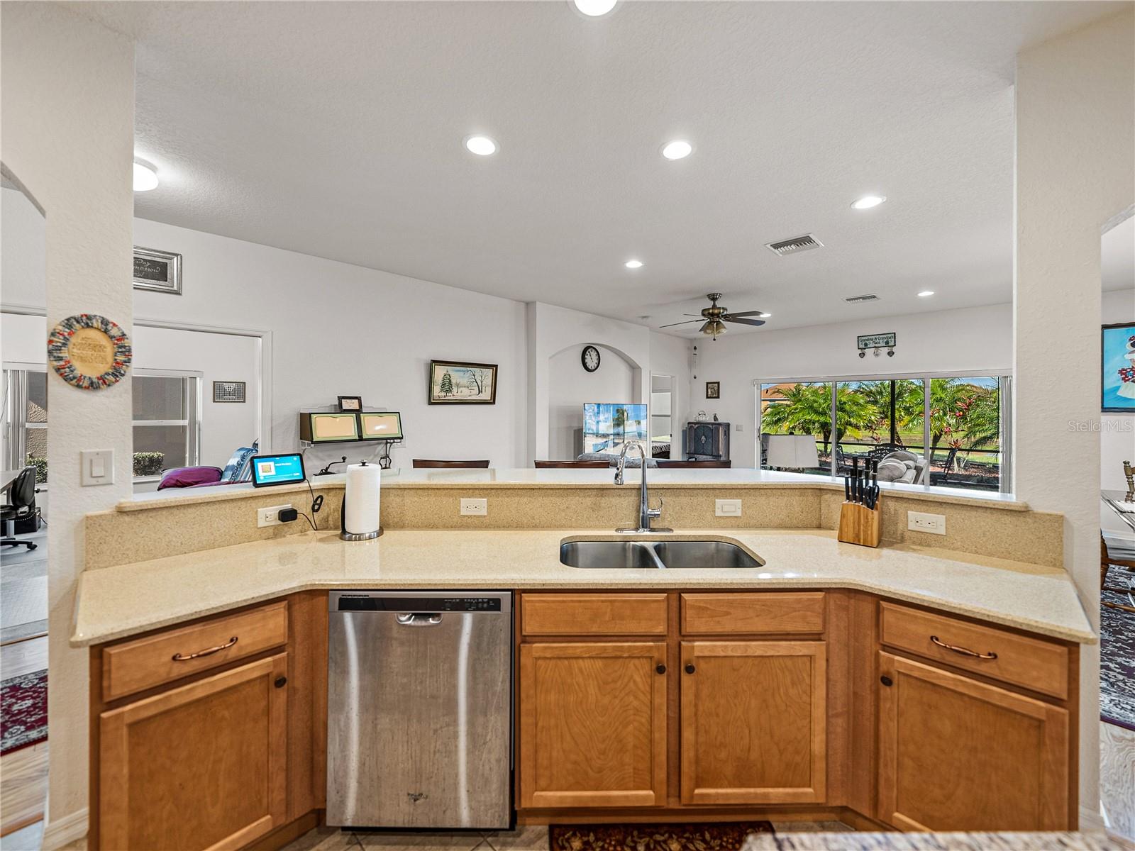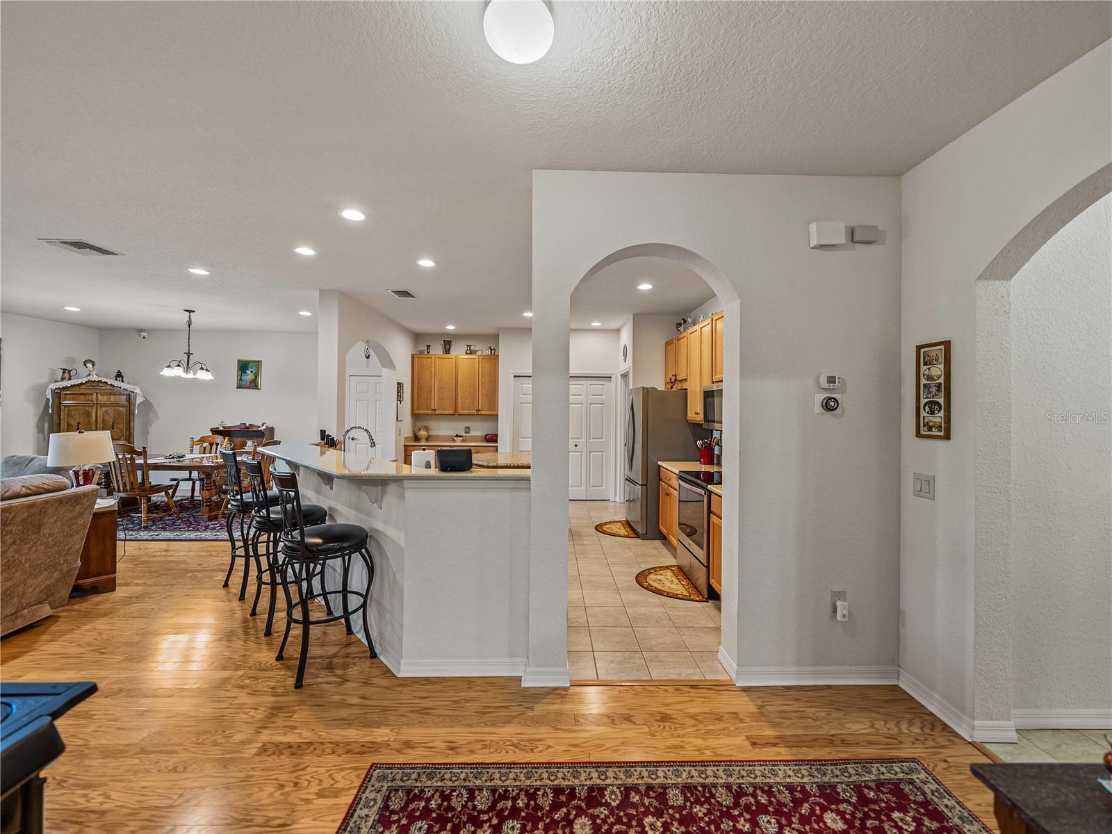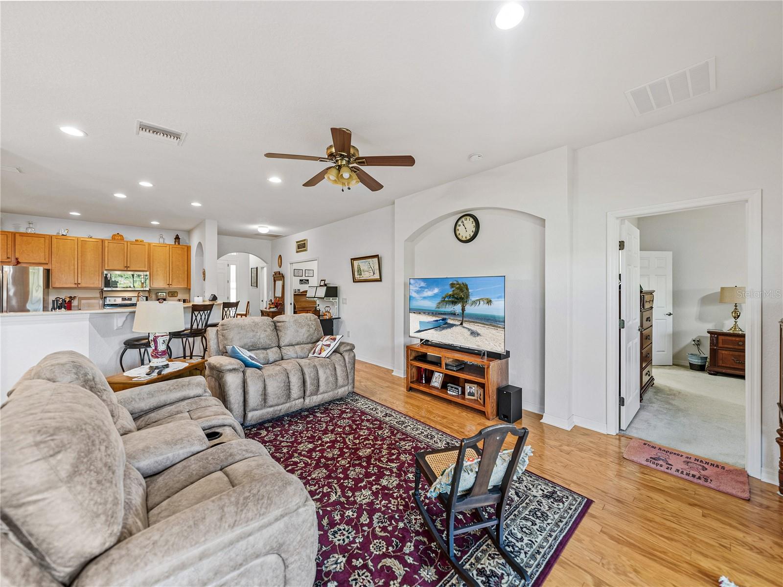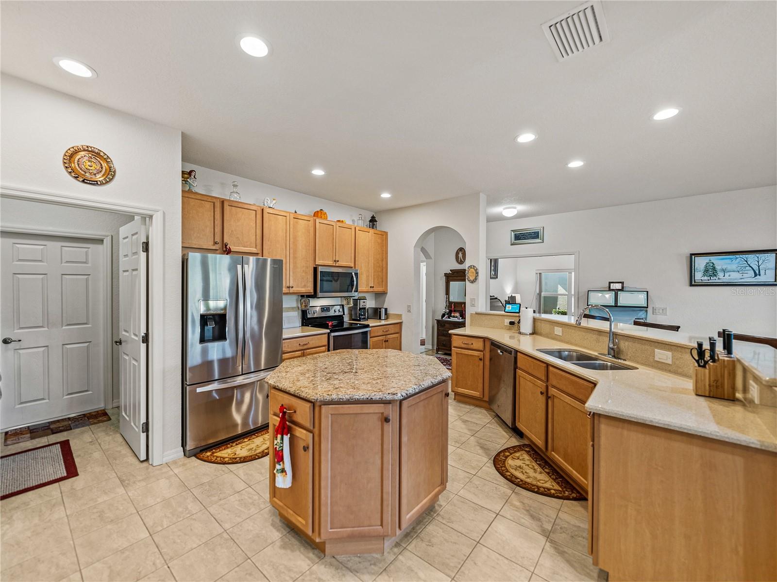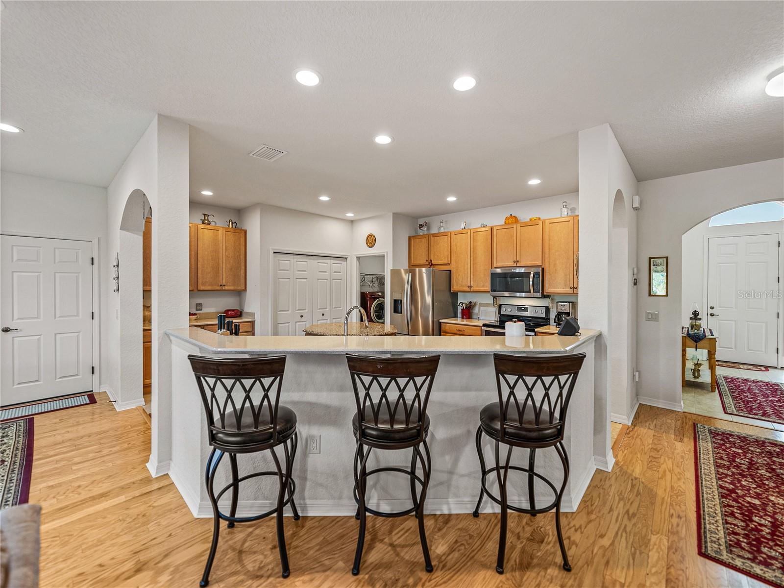 Built in 2016, this certified “Green Home” is one of the last RV homes built in Lake Ashton and it has a 4-year old solar system to minimize utility expenses! The 3-bedroom, 2-bath, open concept floor plan with attached 49’ RV garage makes this a great home base for your travel adventures! The property has excellent curb appeal with concrete edging around all landscape plantings. The front door features a screened entry. The kitchen has Cambria solid surface counters and custom, solid wood birch cabinets with 42” uppers and an island with electrical service. Upgraded stainless appliances. There is a large pantry adjacent to the laundry room and the laundry room has a large utility sink. The living room/dining room features an engineered hardwood floor. A salt-free water purification system services the entire house. The air conditioning system was PROFESSIONALLY BALANCED to deliver air for whole-house temperature uniformity. The master bathroom features dual vanities, one with a makeup station, and a large, custom tiled walk-in shower. Both baths have banks of drawers, handicap toilets and granite counters. The home has multiple pocket doors for privacy and enhanced décor options. The 10’ wide veranda has been extended with a 15’ birdcage and features a paver floor. A beautiful island of Roebelenii palms and other plantings provides additional privacy at the back of the house. The master bedroom and front bedroom windows have privacy solar film. The property backs up to a large pond, providing great separation from the back neighbors. The garage has custom flooring and a large (8’ x 16’) workroom located at the back of the RV side of the garage. Some of the furniture and home furnishings are available for purchase outside of a real estate contract. Lake Ashton is home to the LA Travelers, the largest chapter of the FMCA in the southeastern US. If you are seeking a beautiful home with an RV garage, this very amazing property in central Florida’s finest active-adult community is a definite “must see.” Schedule your personal showing today.