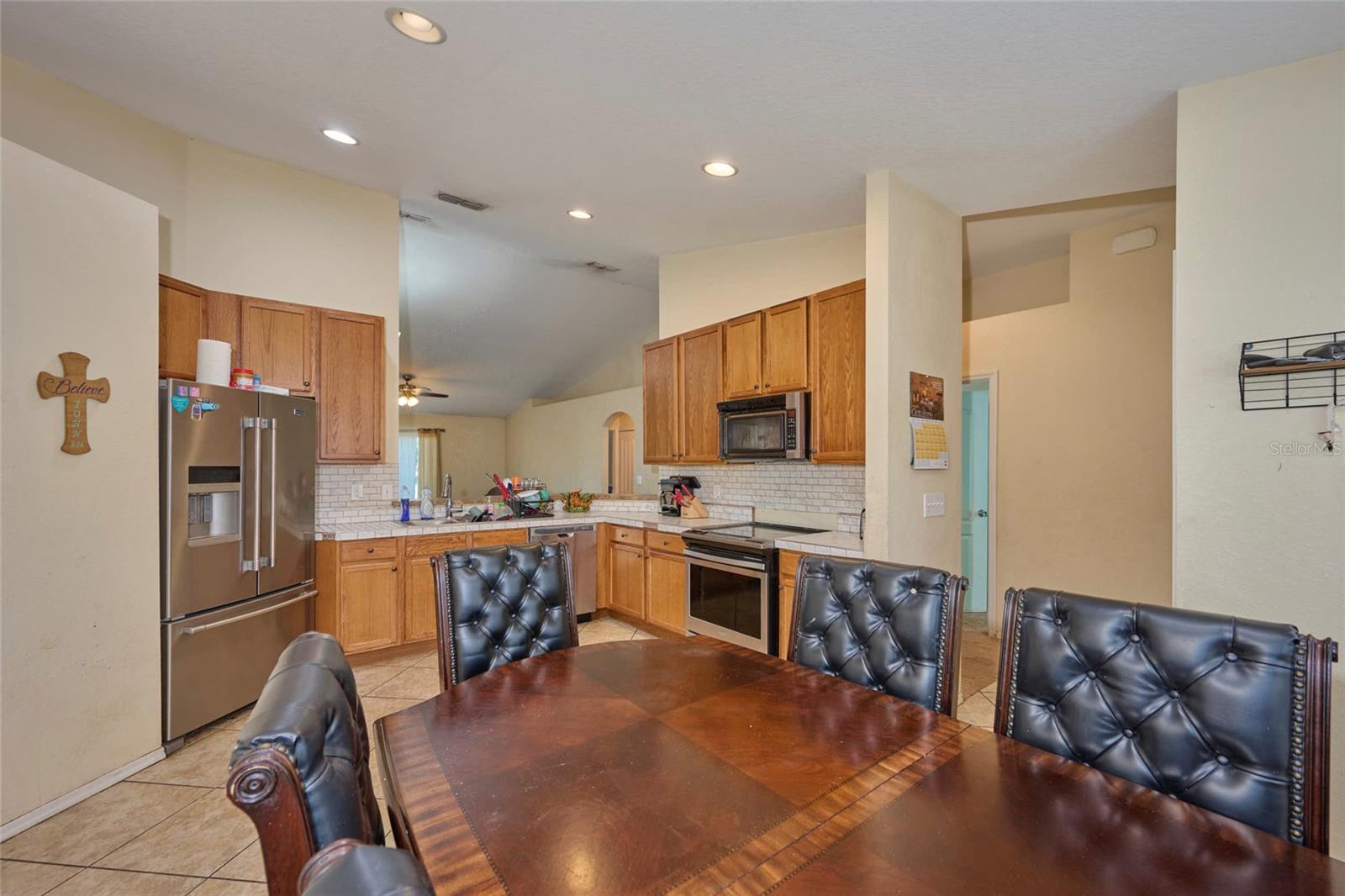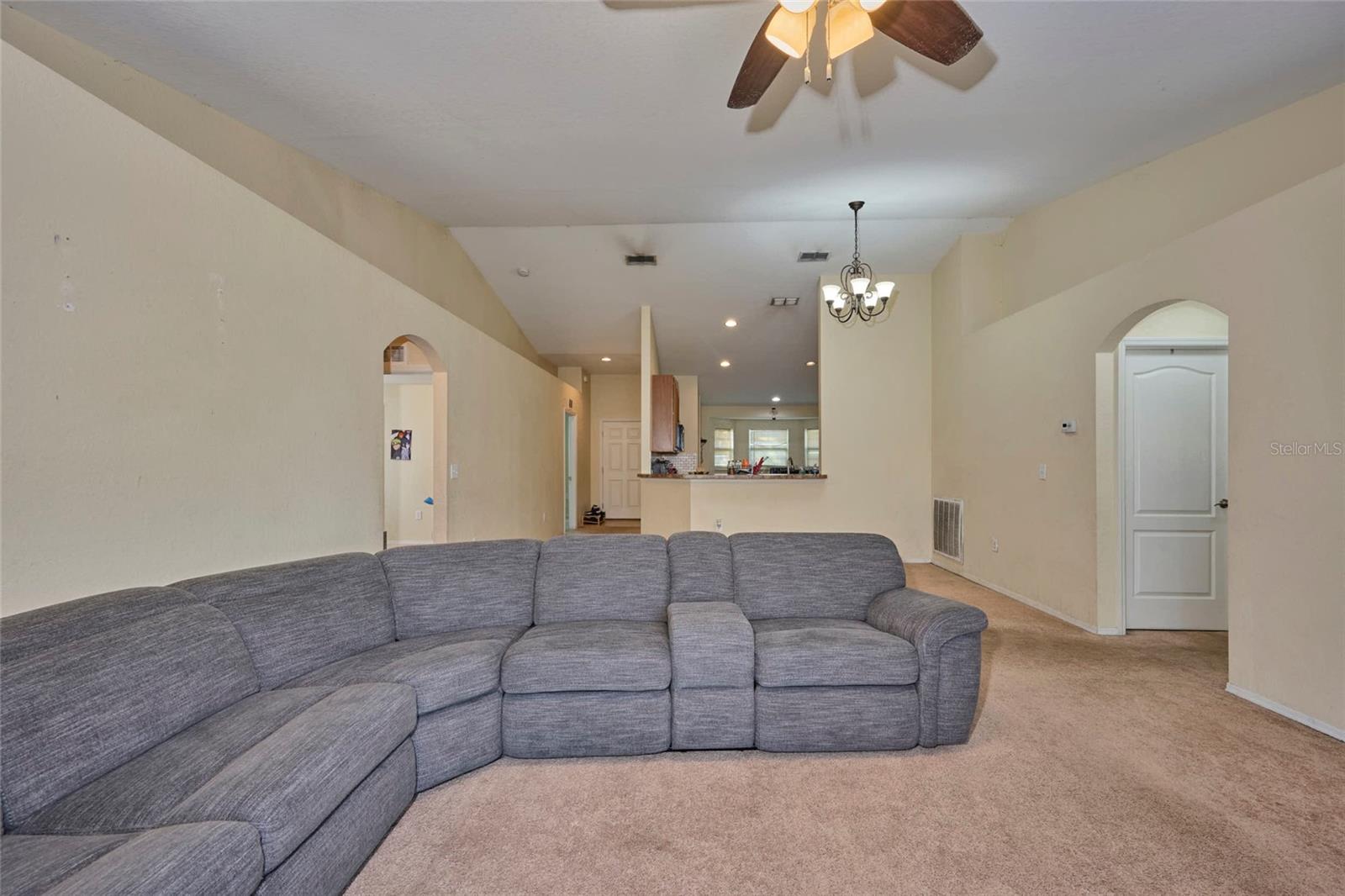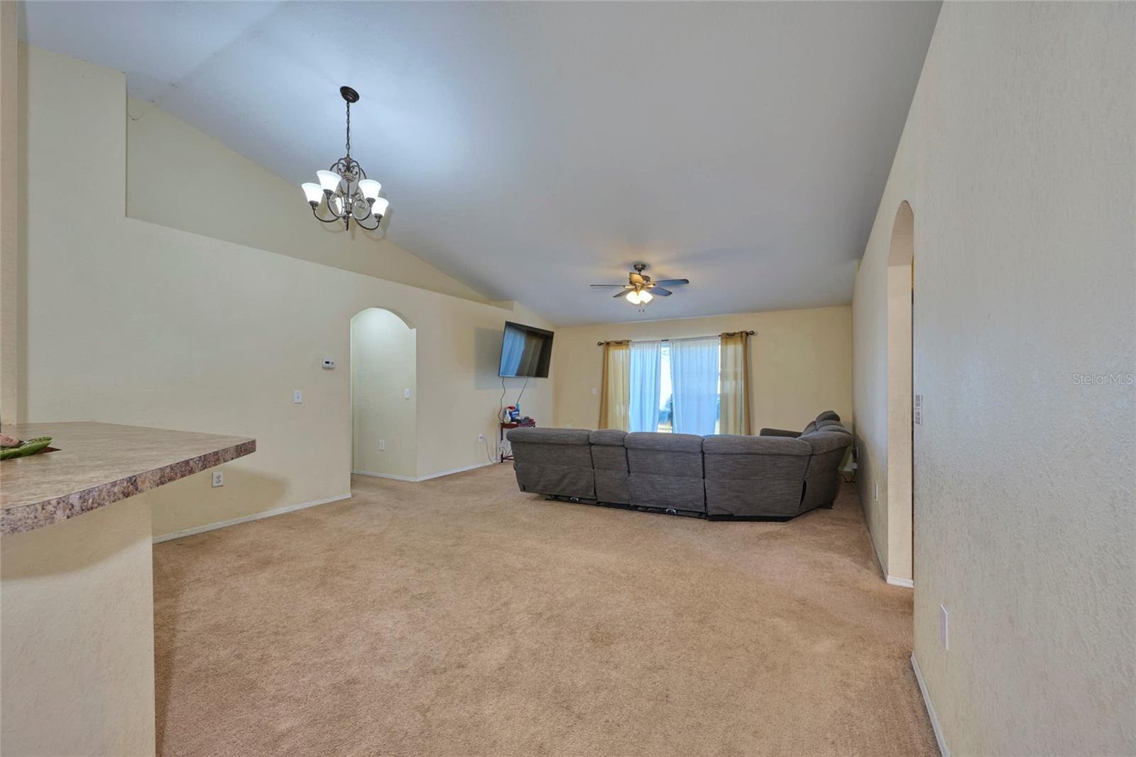 Welcome to this lovely 4 bedroom, 2 bath home in the Sunset Pointe community! This home boasts an open floor plan with high ceilings, arched entryways, and accent shelving that adds a touch of style and sophistication. The split-bedroom layout provides privacy for the master suite, which features an ensuite bathroom with garden tub, walk-in shower, and two vanities. The opposite side of the home offers an additional three bedrooms and guest bath. The kitchen has much to offer, with a breakfast bar, closet pantry, and ample cabinet and counter space, complemented by stylish tile countertops and ceramic tile flooring. A cozy dinette space rounds out the kitchen, offering a relaxed setting for casual meals. For more formal gatherings, the formal dining room offers plenty of space and flows seamlessly into the living room. Enjoy the outdoors in a large backyard filled with a variety of fruit trees—a perfect spot for gardening, relaxation, play, or entertainment. The home includes a convenient 2-car garage, and the community has sidewalks and lighting throughout, ideal for evening strolls. With easy access to Hwy 60, you’re moments away from shopping, dining, and entertainment. This charming home, built in 2017, offers the perfect blend of comfort, convenience, and community! Don’t miss out on the chance to make it yours!