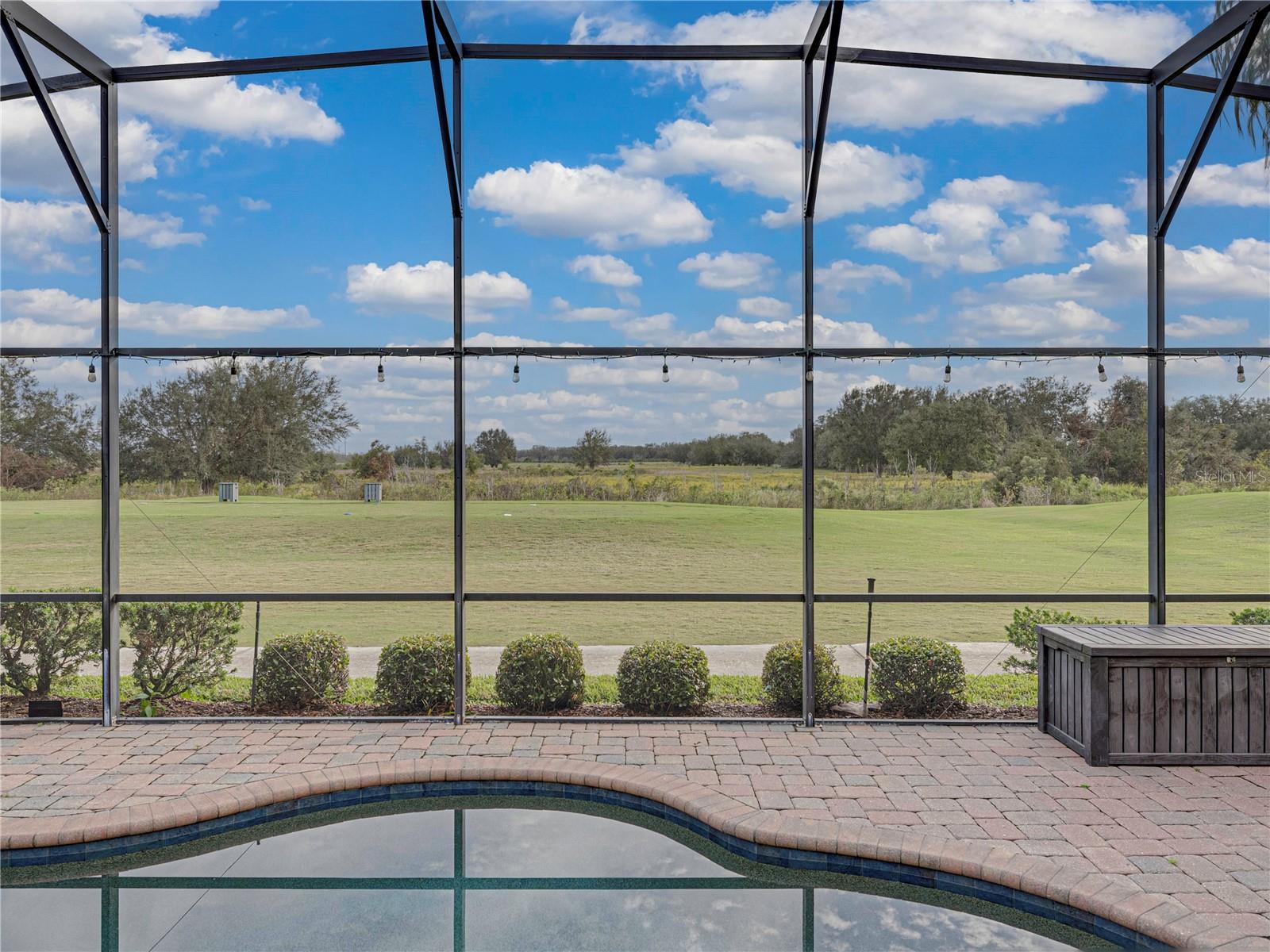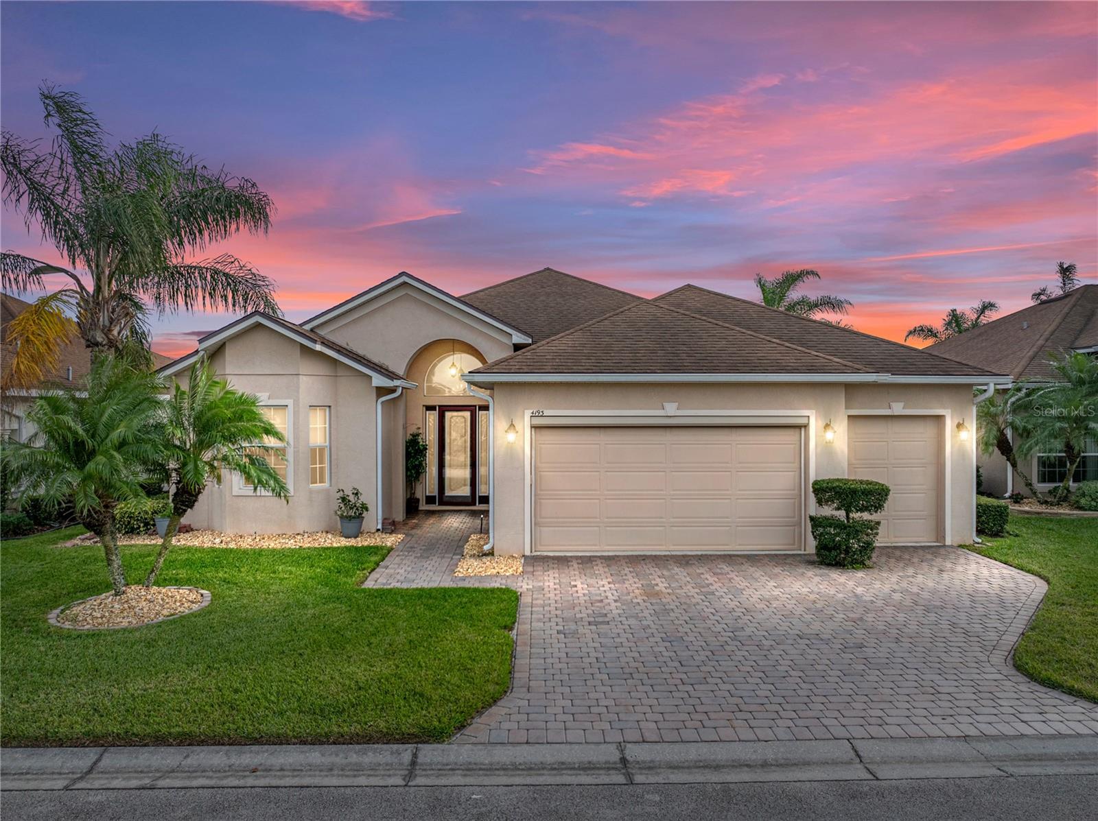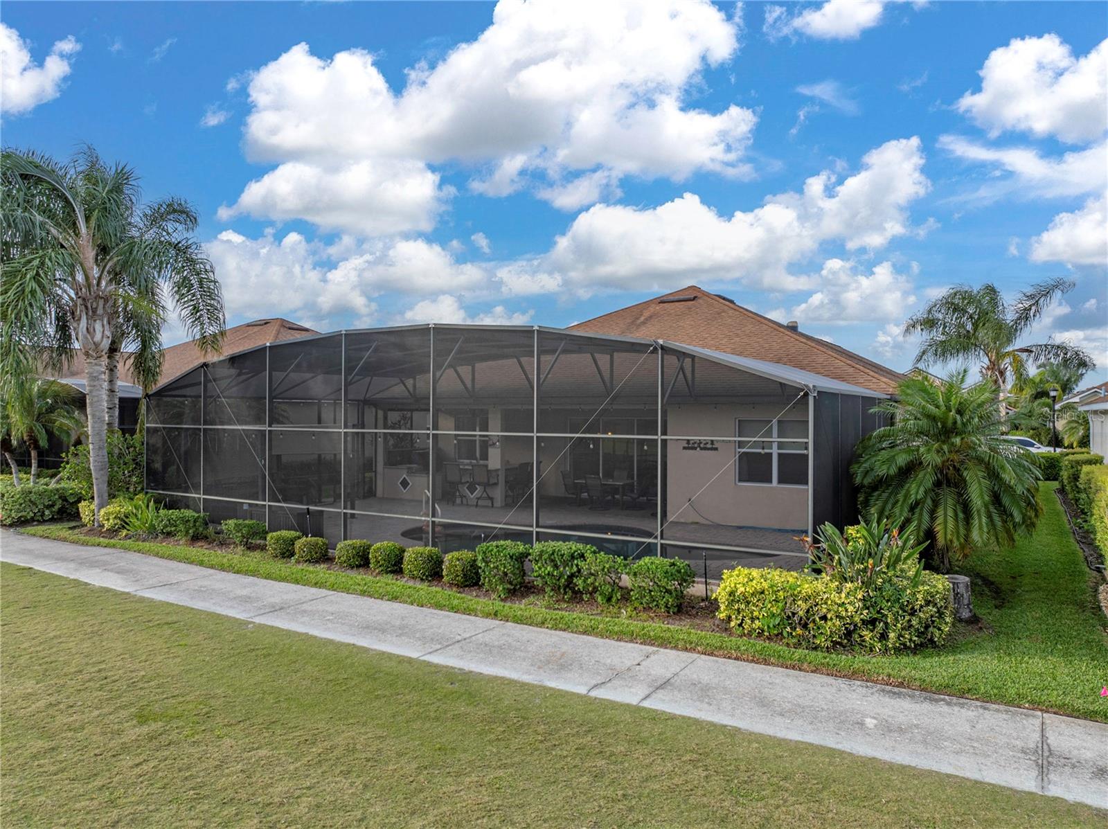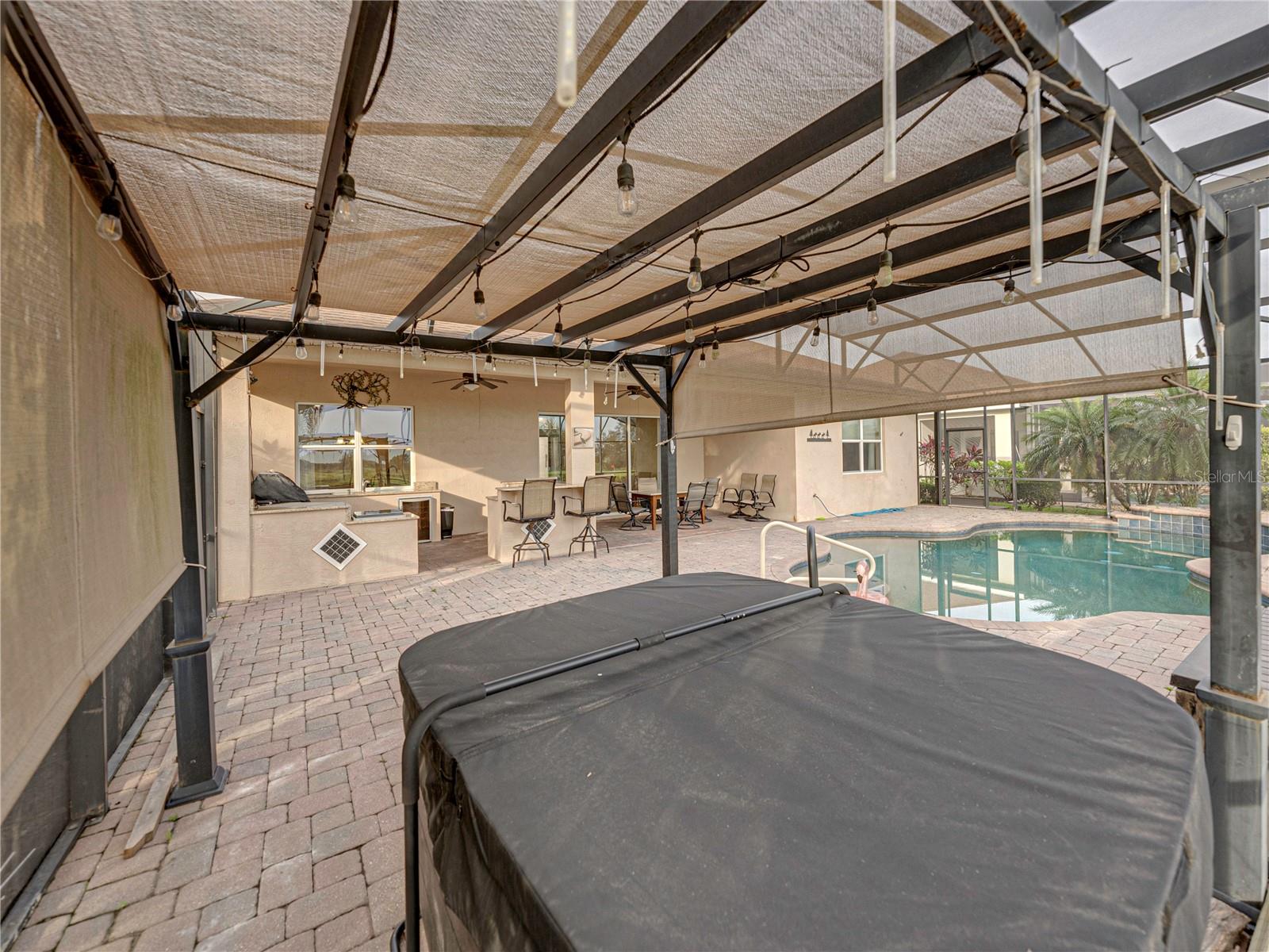 REDUCED PRICE!!! MOTIVATED SELLER!!! Beautiful Pool Home on the Golf Course. This 3 bedroom, 2 bath open floor plan has an attached 2 car garage with golf cart garage AND THE GOLF CART CONVEYS WITH HOME. Come see this salt water pool, with a separate Newer hot tub, an Amazing Outdoor kitchen featuring a charcoal grille, a gas grille, a large gas cooking burner, tons of counter space with beautiful granite countertops, refrigerator, storage drawers, wine refrigerator, bar stools and an outdoor table with chairs (all convey with home). On the inside of the home you will find a large open concept living room/dining room/kitchen which is great for entertaining and has triple sliding doors that gives easy access to the great outdoor pool area. The primary bedroom has an en suite with two walk in closets featuring built in custom storage organizers, dual vanities, walk in shower with glass doors, full tile to ceiling and linen closet. The second bedroom features a built in desk, built in murphy bed with storage on each side and ceiling fan. The third bedroom is a crafter/sewing person's dream room with built in storage and counterspace along with closet and a built in desk or sewing machine area. Golf Cart stays with the sale of home!! Make your appointment today and take a tour of Lake Ashton to see all the amenities such as; Two clubhouses, two 18 hole golf courses, two restaurants, bars, bowling alley, movie theatre, pickle ball, bocce ball, tennis, card rooms, billiard rooms, media centers and so much more!!!