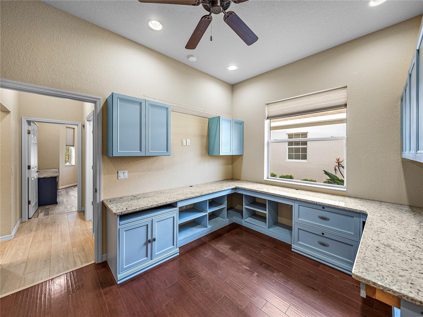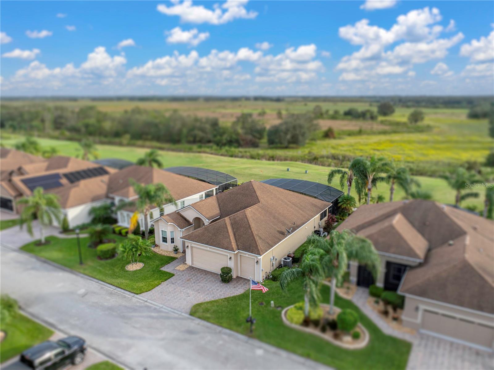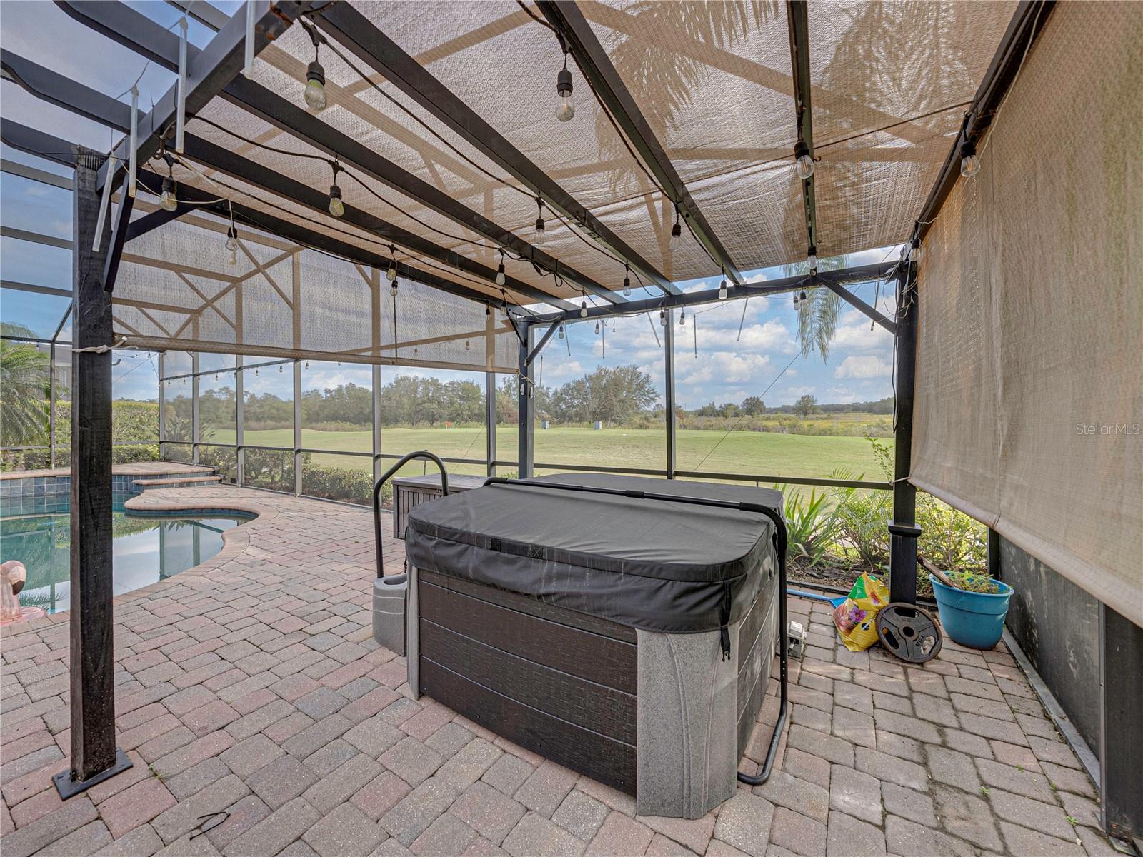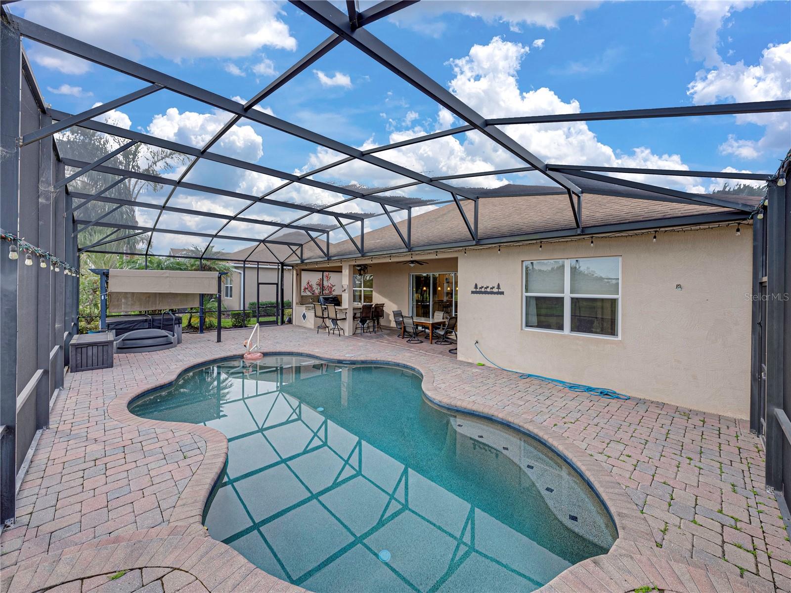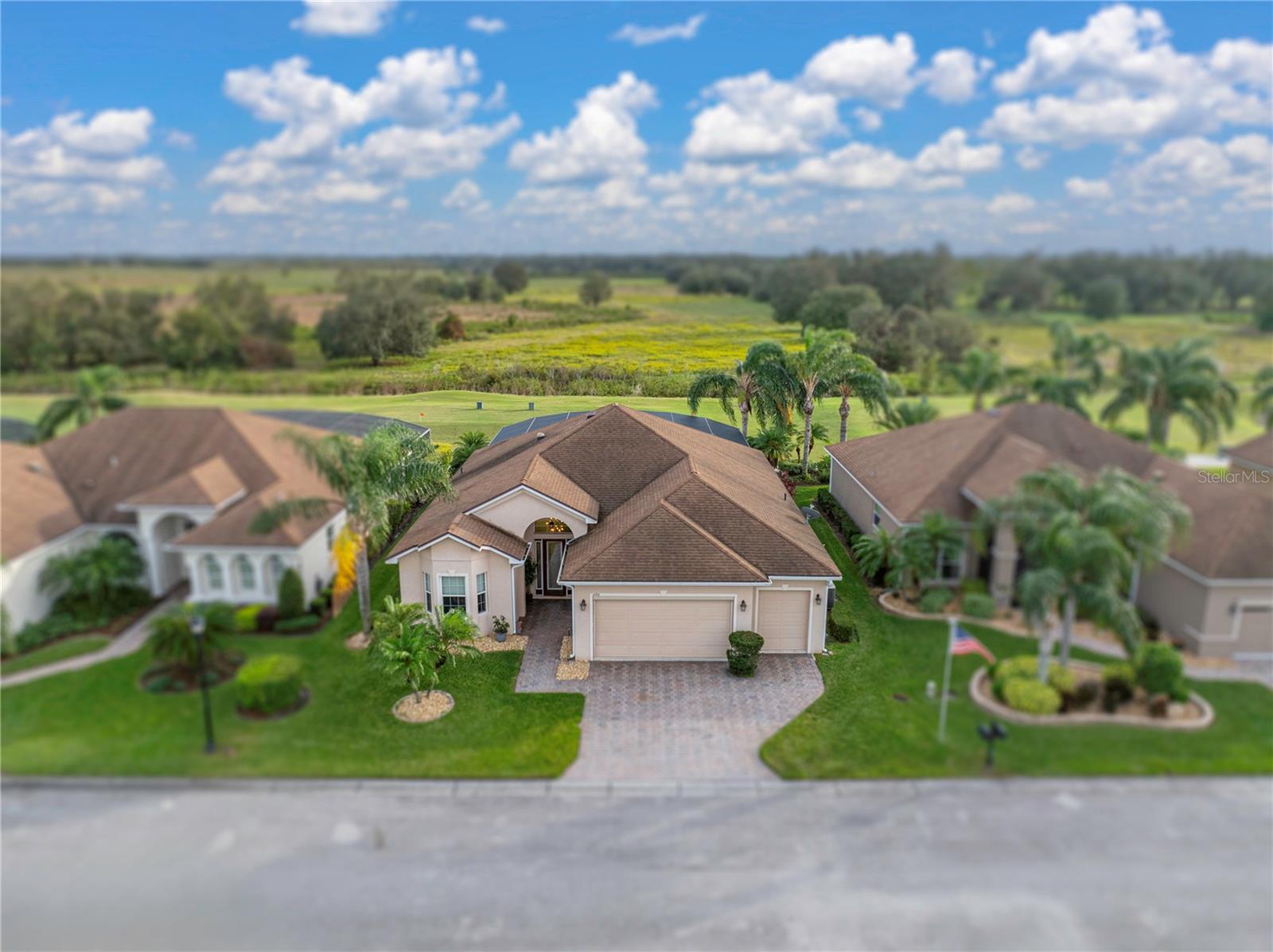 REDUCED PRICE!!! MOTIVATED SELLER!!! Beautiful Pool Home on the Golf Course. This 3 bedroom, 2 bath open floor plan has an attached 2 car garage with golf cart garage AND THE GOLF CART CONVEYS WITH HOME. Come see this salt water pool, with a separate Newer hot tub, an Amazing Outdoor kitchen featuring a charcoal grille, a gas grille, a large gas cooking burner, tons of counter space with beautiful granite countertops, refrigerator, storage drawers, wine refrigerator, bar stools and an outdoor table with chairs (all convey with home). On the inside of the home you will find a large open concept living room/dining room/kitchen which is great for entertaining and has triple sliding doors that gives easy access to the great outdoor pool area. The primary bedroom has an en suite with two walk in closets featuring built in custom storage organizers, dual vanities, walk in shower with glass doors, full tile to ceiling and linen closet. The second bedroom features a built in desk, built in murphy bed with storage on each side and ceiling fan. The third bedroom is a crafter/sewing person's dream room with built in storage and counterspace along with closet and a built in desk or sewing machine area. Golf Cart stays with the sale of home!! Make your appointment today and take a tour of Lake Ashton to see all the amenities such as; Two clubhouses, two 18 hole golf courses, two restaurants, bars, bowling alley, movie theatre, pickle ball, bocce ball, tennis, card rooms, billiard rooms, media centers and so much more!!!