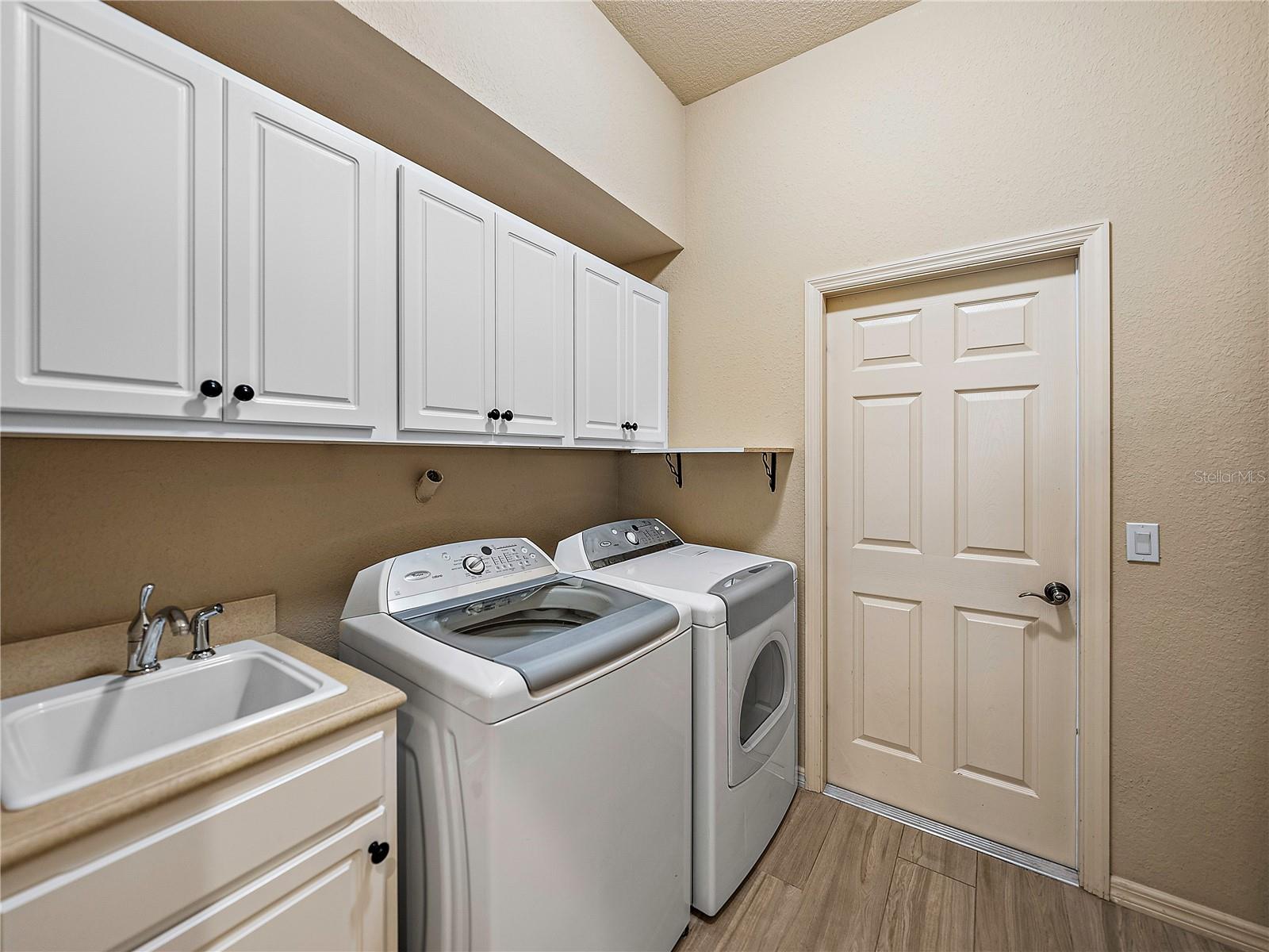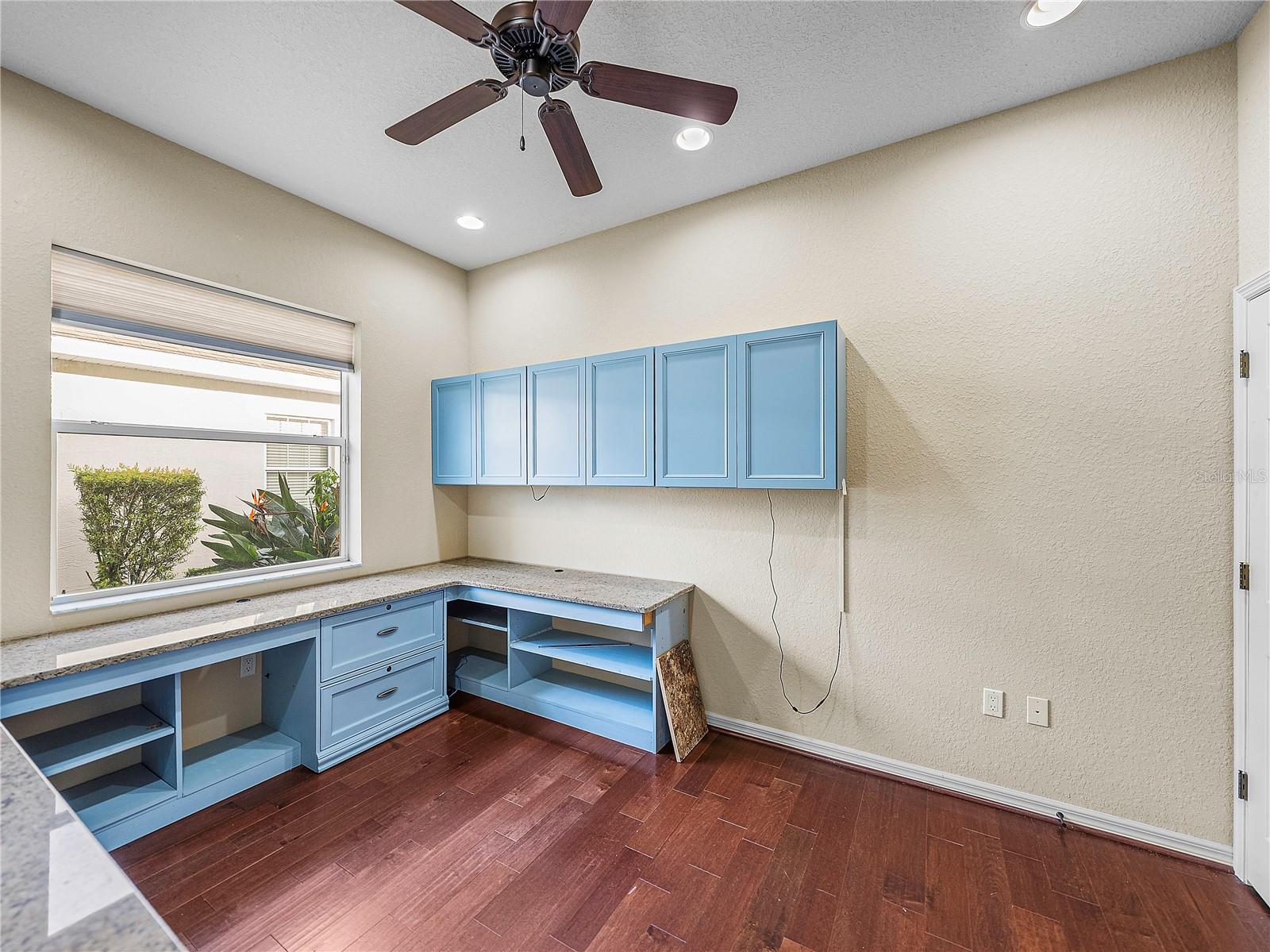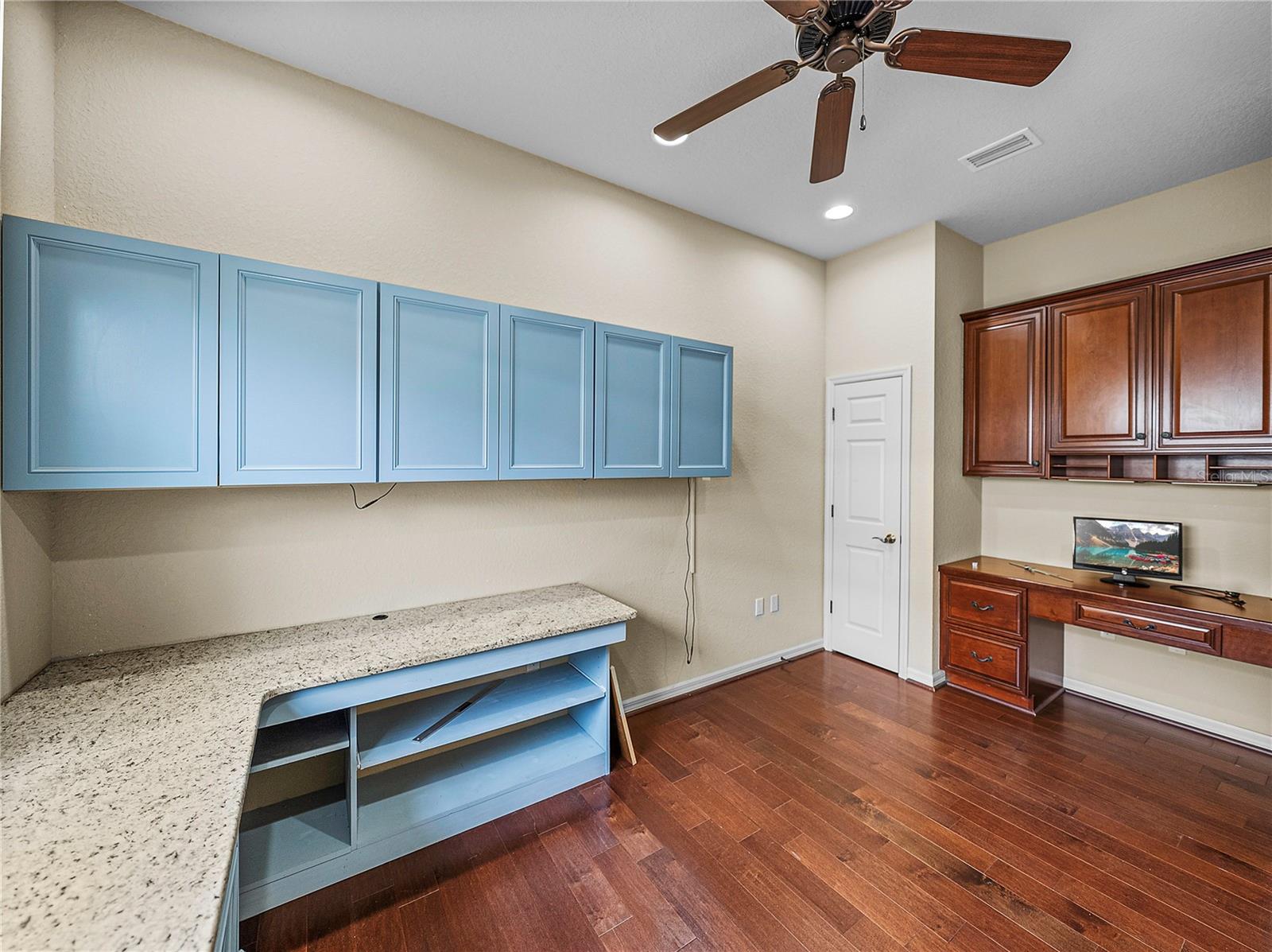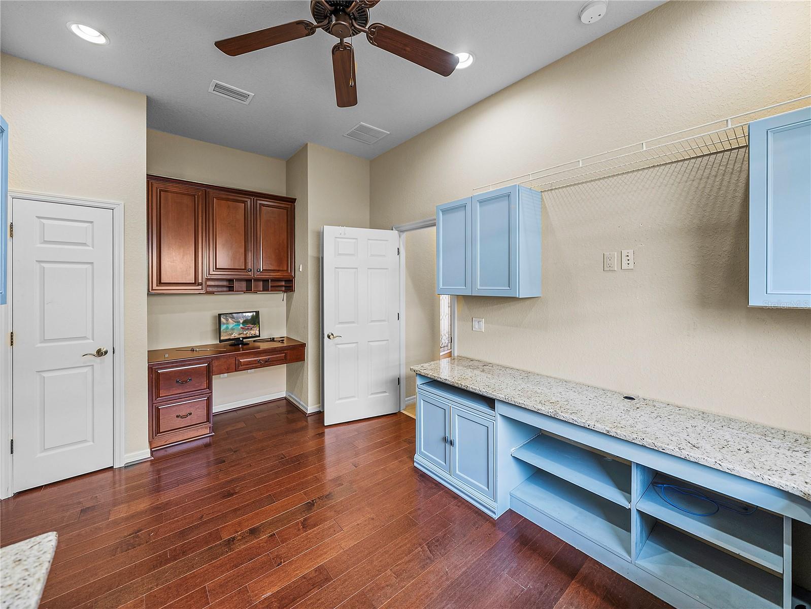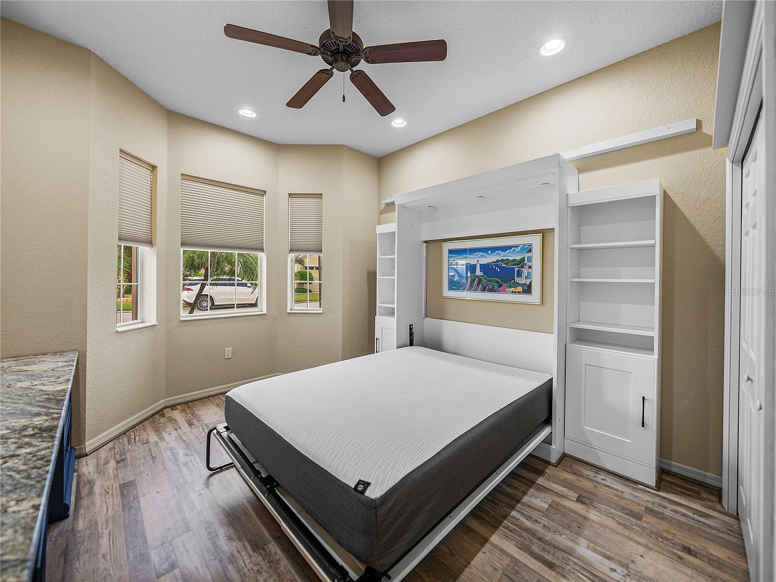 REDUCED PRICE!!! MOTIVATED SELLER!!! Beautiful Pool Home on the Golf Course. This 3 bedroom, 2 bath open floor plan has an attached 2 car garage with golf cart garage AND THE GOLF CART CONVEYS WITH HOME. Come see this salt water pool, with a separate Newer hot tub, an Amazing Outdoor kitchen featuring a charcoal grille, a gas grille, a large gas cooking burner, tons of counter space with beautiful granite countertops, refrigerator, storage drawers, wine refrigerator, bar stools and an outdoor table with chairs (all convey with home). On the inside of the home you will find a large open concept living room/dining room/kitchen which is great for entertaining and has triple sliding doors that gives easy access to the great outdoor pool area. The primary bedroom has an en suite with two walk in closets featuring built in custom storage organizers, dual vanities, walk in shower with glass doors, full tile to ceiling and linen closet. The second bedroom features a built in desk, built in murphy bed with storage on each side and ceiling fan. The third bedroom is a crafter/sewing person's dream room with built in storage and counterspace along with closet and a built in desk or sewing machine area. Golf Cart stays with the sale of home!! Make your appointment today and take a tour of Lake Ashton to see all the amenities such as; Two clubhouses, two 18 hole golf courses, two restaurants, bars, bowling alley, movie theatre, pickle ball, bocce ball, tennis, card rooms, billiard rooms, media centers and so much more!!!