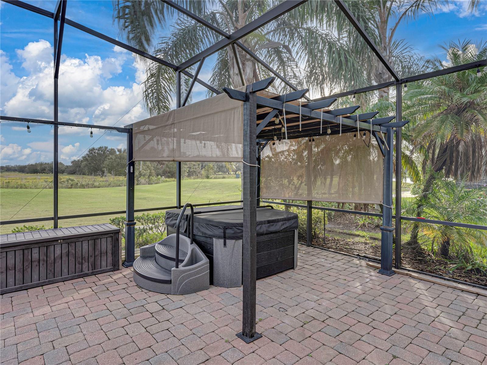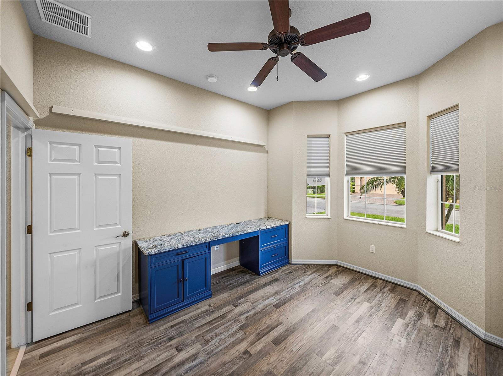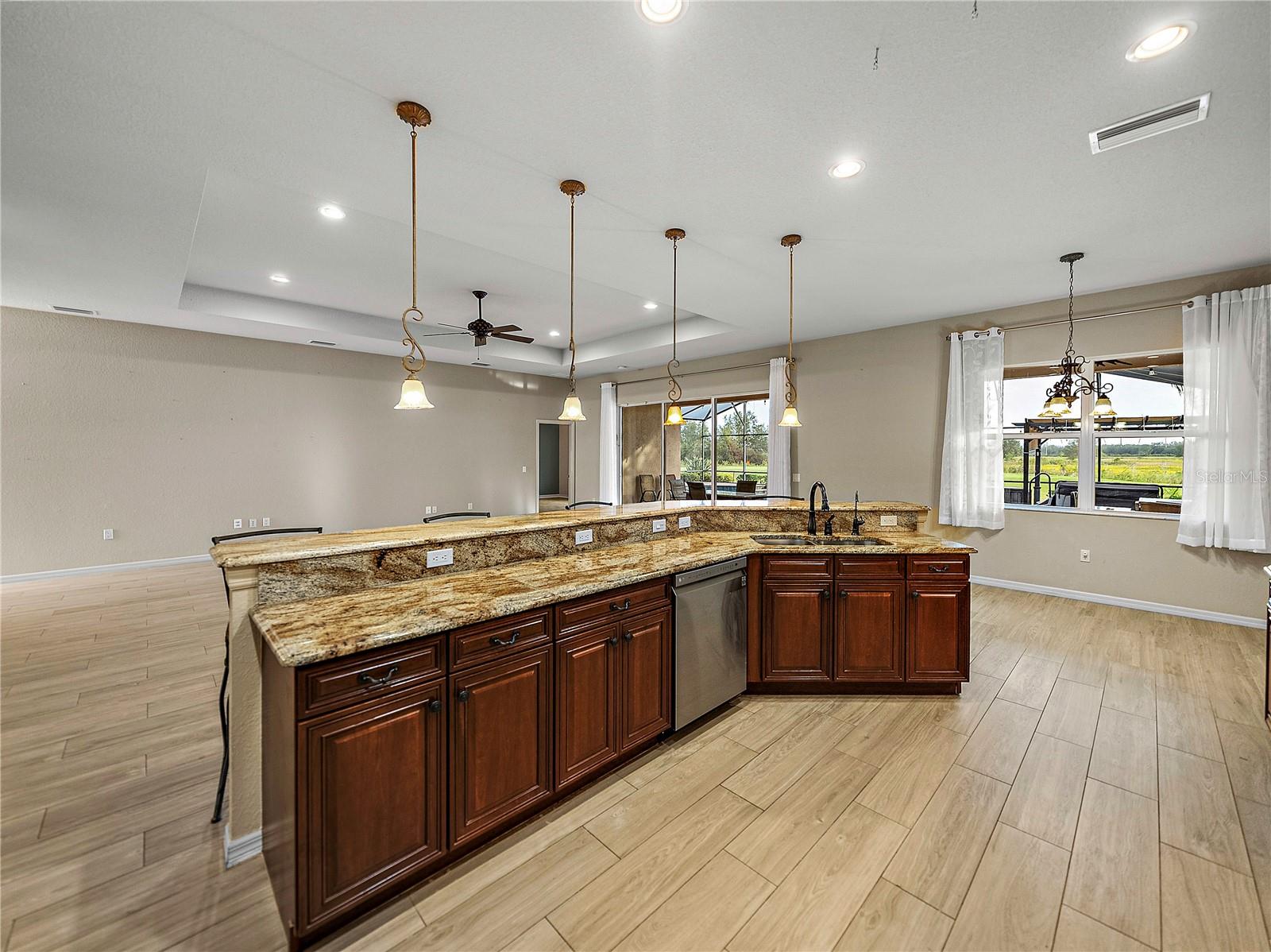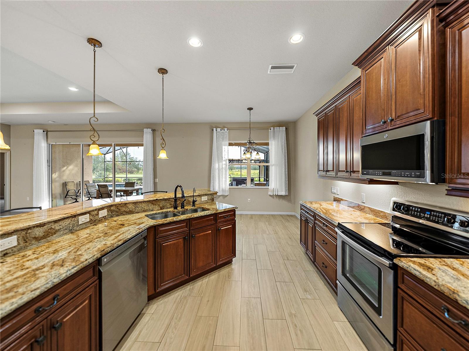 REDUCED PRICE!!! MOTIVATED SELLER!!! Beautiful Pool Home on the Golf Course. This 3 bedroom, 2 bath open floor plan has an attached 2 car garage with golf cart garage AND THE GOLF CART CONVEYS WITH HOME. Come see this salt water pool, with a separate Newer hot tub, an Amazing Outdoor kitchen featuring a charcoal grille, a gas grille, a large gas cooking burner, tons of counter space with beautiful granite countertops, refrigerator, storage drawers, wine refrigerator, bar stools and an outdoor table with chairs (all convey with home). On the inside of the home you will find a large open concept living room/dining room/kitchen which is great for entertaining and has triple sliding doors that gives easy access to the great outdoor pool area. The primary bedroom has an en suite with two walk in closets featuring built in custom storage organizers, dual vanities, walk in shower with glass doors, full tile to ceiling and linen closet. The second bedroom features a built in desk, built in murphy bed with storage on each side and ceiling fan. The third bedroom is a crafter/sewing person's dream room with built in storage and counterspace along with closet and a built in desk or sewing machine area. Golf Cart stays with the sale of home!! Make your appointment today and take a tour of Lake Ashton to see all the amenities such as; Two clubhouses, two 18 hole golf courses, two restaurants, bars, bowling alley, movie theatre, pickle ball, bocce ball, tennis, card rooms, billiard rooms, media centers and so much more!!!