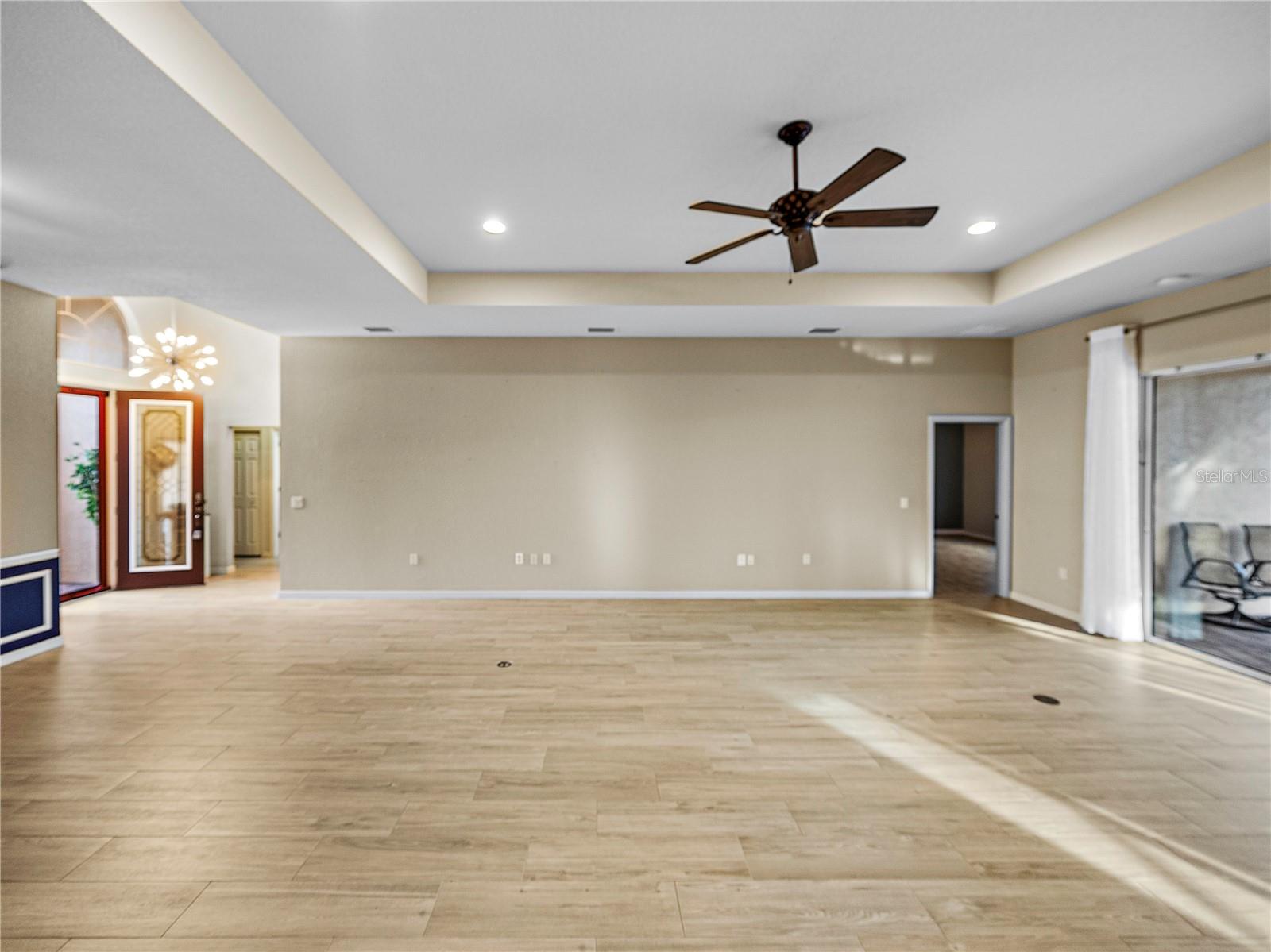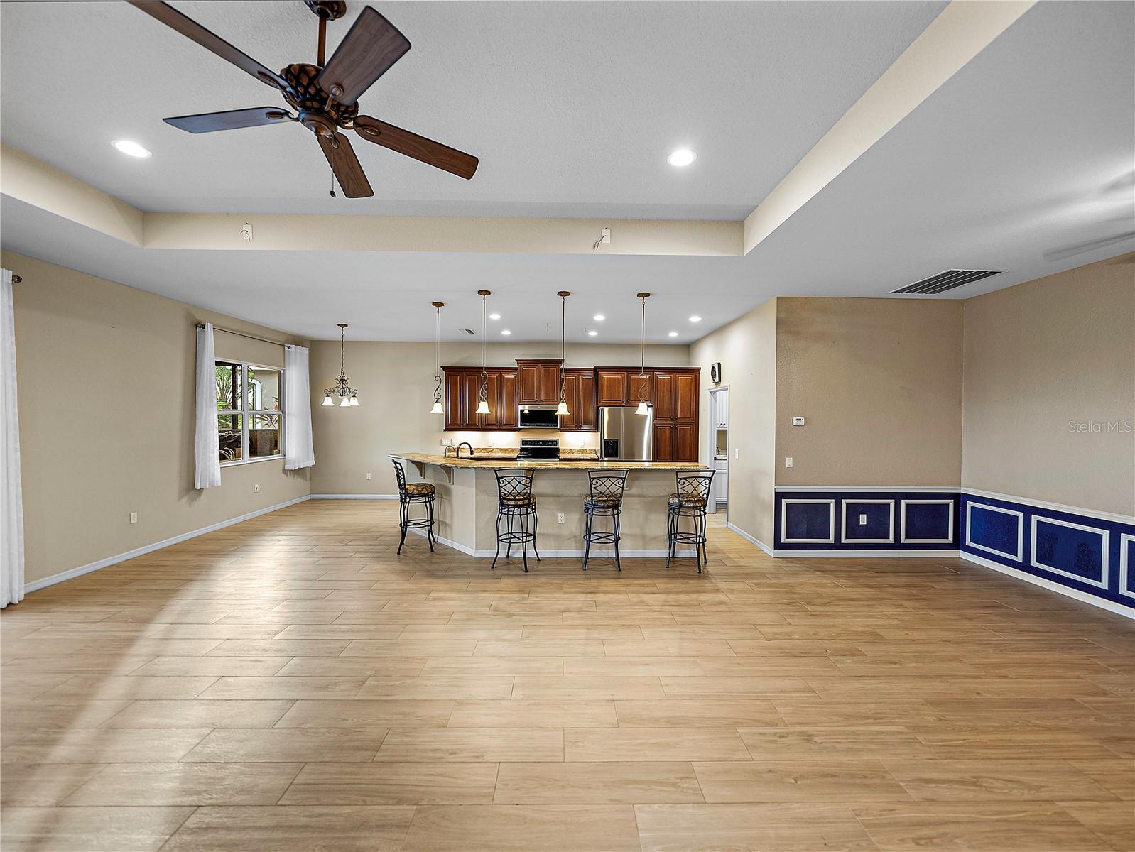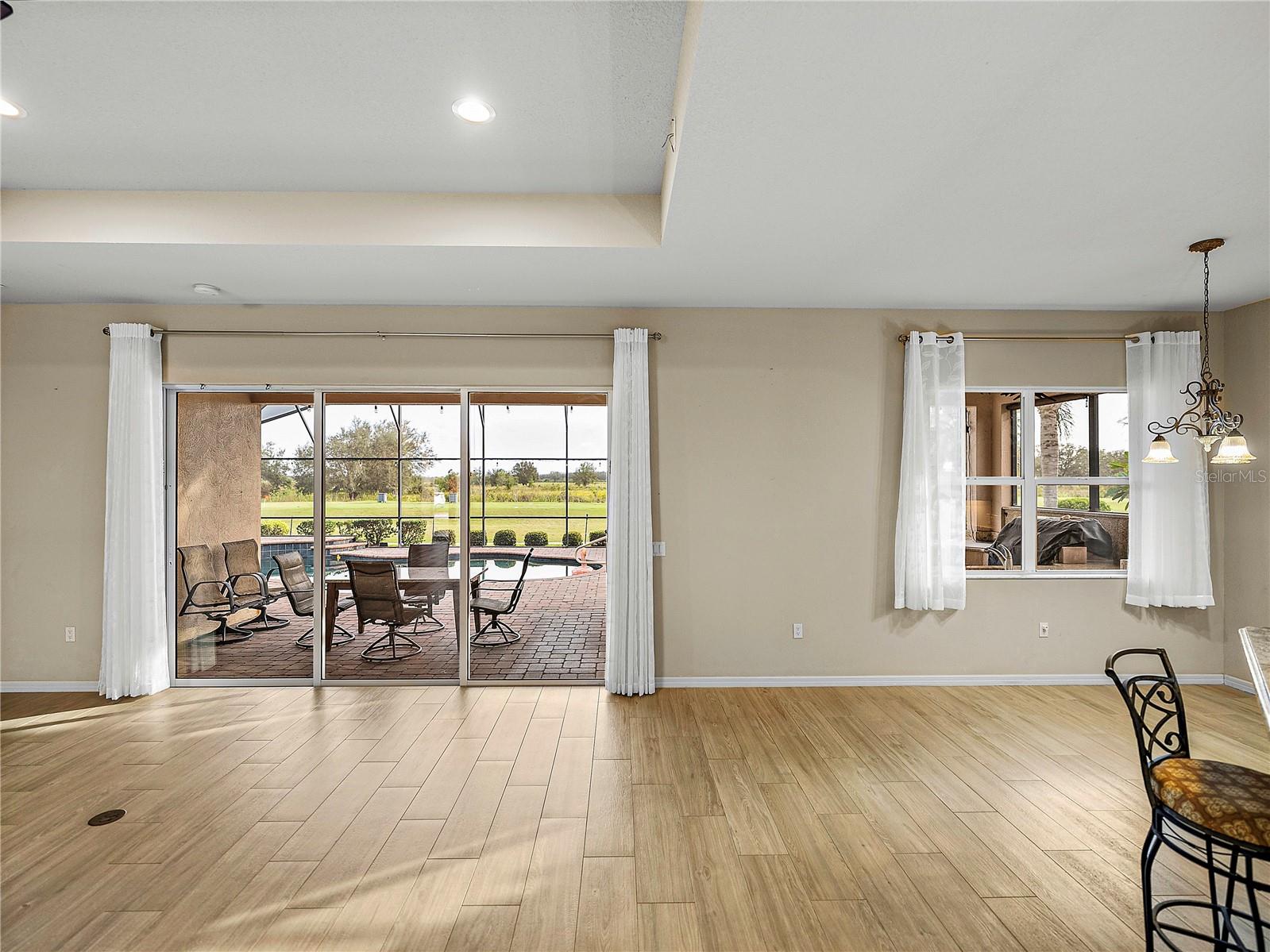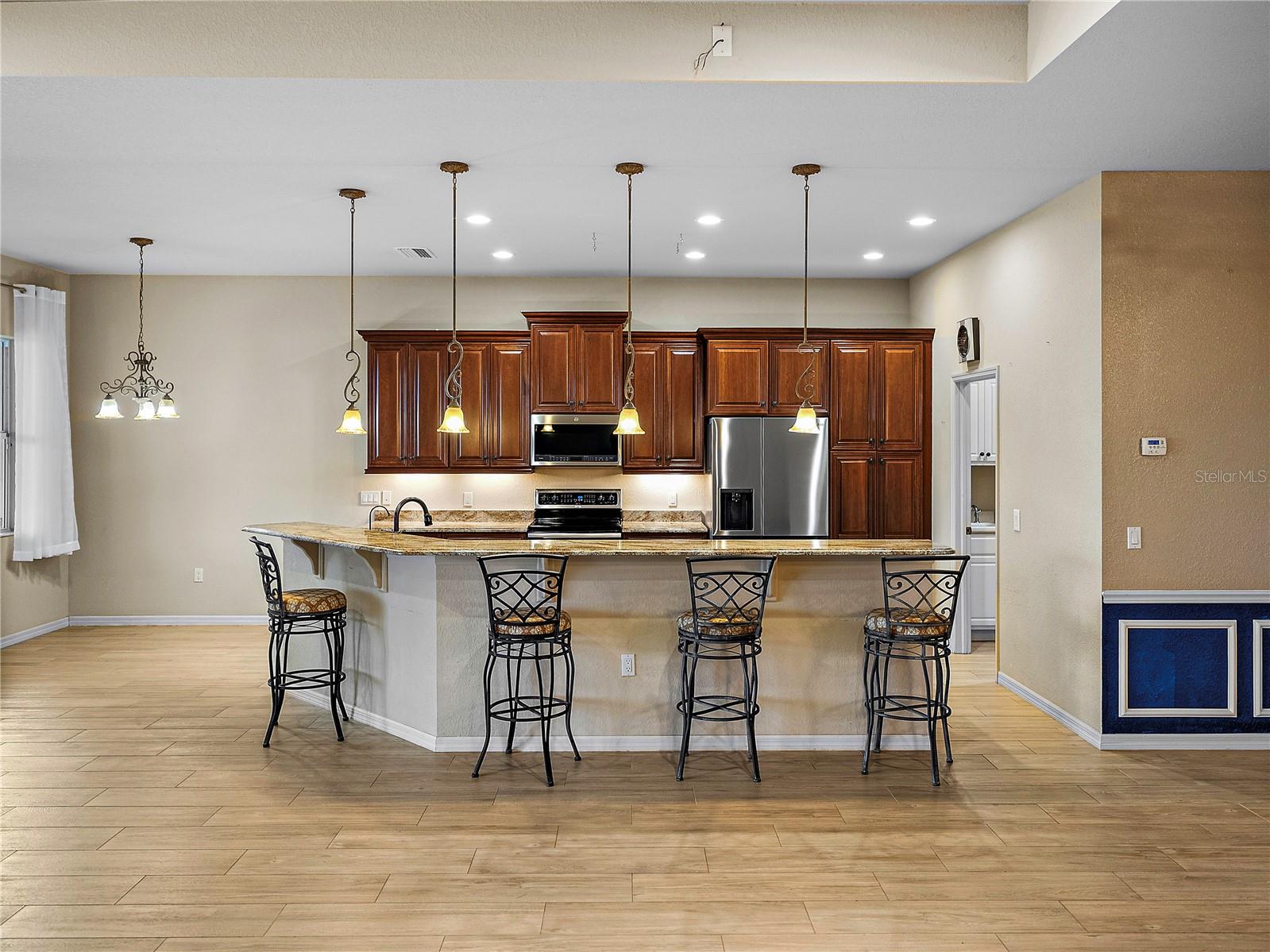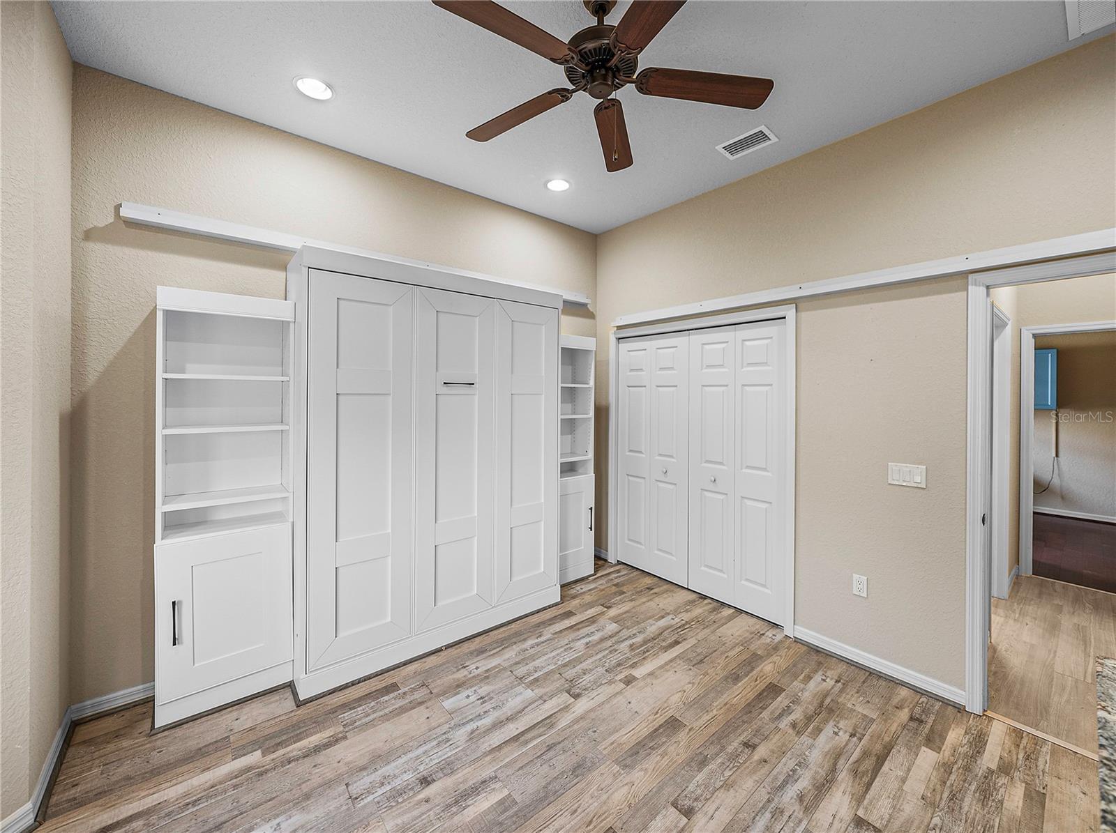 REDUCED PRICE!!! MOTIVATED SELLER!!! Beautiful Pool Home on the Golf Course. This 3 bedroom, 2 bath open floor plan has an attached 2 car garage with golf cart garage AND THE GOLF CART CONVEYS WITH HOME. Come see this salt water pool, with a separate Newer hot tub, an Amazing Outdoor kitchen featuring a charcoal grille, a gas grille, a large gas cooking burner, tons of counter space with beautiful granite countertops, refrigerator, storage drawers, wine refrigerator, bar stools and an outdoor table with chairs (all convey with home). On the inside of the home you will find a large open concept living room/dining room/kitchen which is great for entertaining and has triple sliding doors that gives easy access to the great outdoor pool area. The primary bedroom has an en suite with two walk in closets featuring built in custom storage organizers, dual vanities, walk in shower with glass doors, full tile to ceiling and linen closet. The second bedroom features a built in desk, built in murphy bed with storage on each side and ceiling fan. The third bedroom is a crafter/sewing person's dream room with built in storage and counterspace along with closet and a built in desk or sewing machine area. Golf Cart stays with the sale of home!! Make your appointment today and take a tour of Lake Ashton to see all the amenities such as; Two clubhouses, two 18 hole golf courses, two restaurants, bars, bowling alley, movie theatre, pickle ball, bocce ball, tennis, card rooms, billiard rooms, media centers and so much more!!!