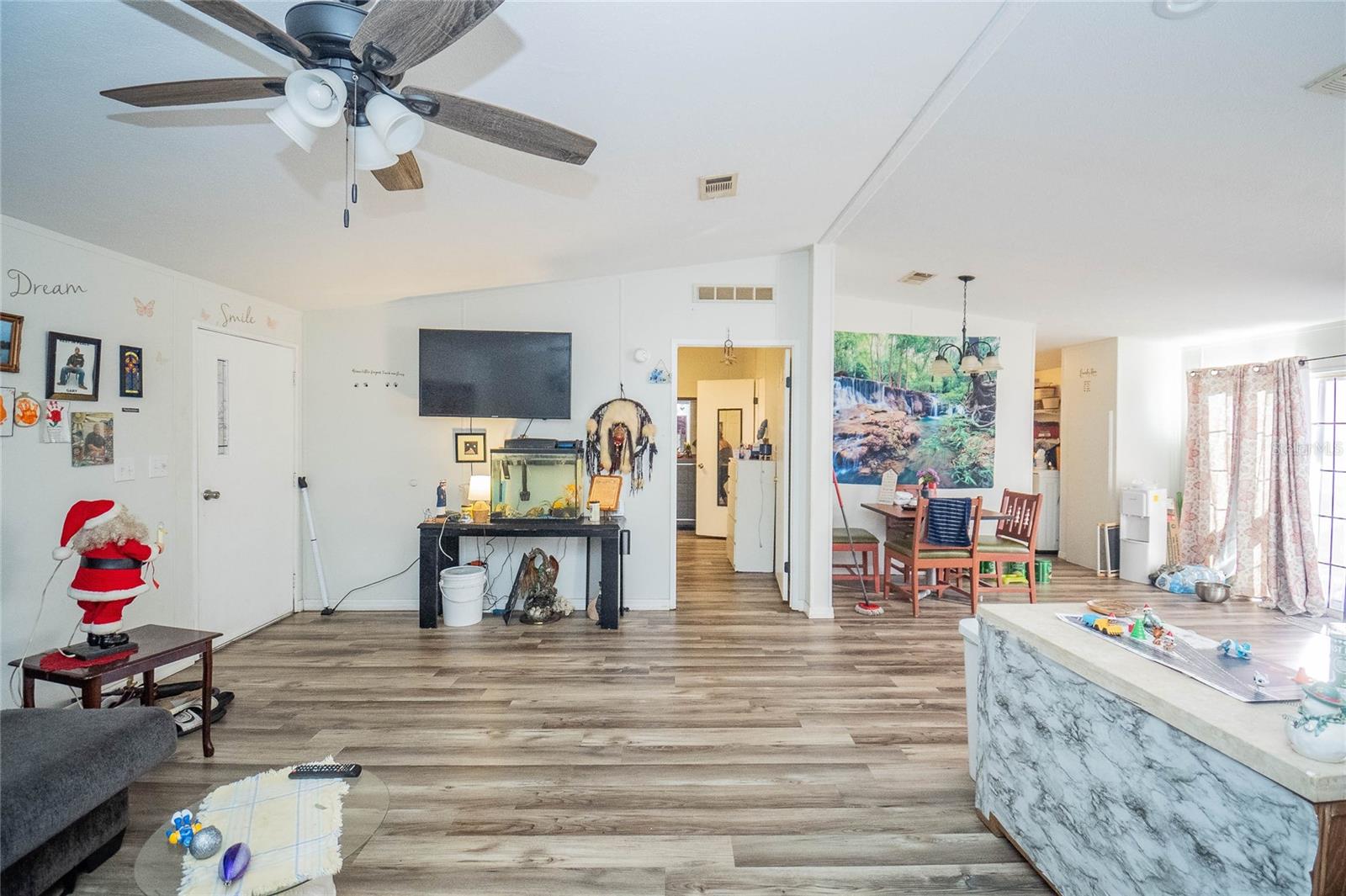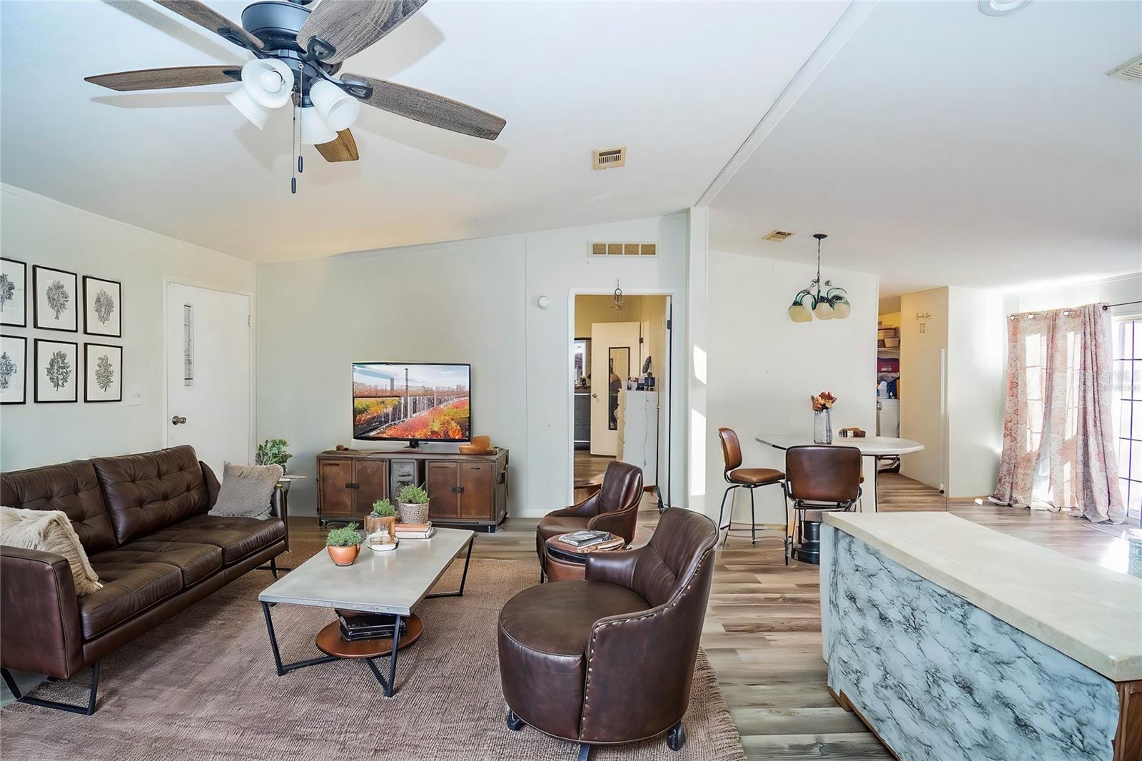 Welcome to 3825 Carriage Drive, a delightful 3-bedroom, 2-bath manufactured home nestled in the tranquil community of Lake Wales, FL. This meticulously maintained residence, crafted with care post-1977, combines modern comforts with timeless functionality. The property showcases elegant vinyl flooring throughout, seamlessly blending style with practicality. Step into the bright and spacious interior, featuring a thoughtful split floorplan designed to maximize both privacy and natural light. The kitchen is a true centerpiece, adorned with sleek stone countertops that effortlessly marry sophistication and durability. Ceiling fans enhance the ambiance, ensuring comfort in every room. Encased in durable vinyl siding with a sturdy shingle roof, this home exudes charm and requires minimal upkeep. Situated in a serene setting yet close to local conveniences, it offers the perfect balance of peaceful living and accessibility. Don’t miss your chance to experience the allure of this Lake Wales treasure. Schedule your private tour today and make this exceptional home yours!