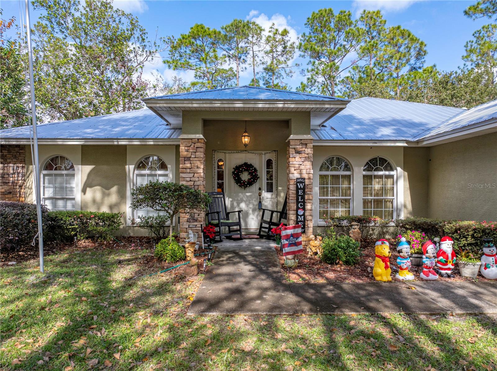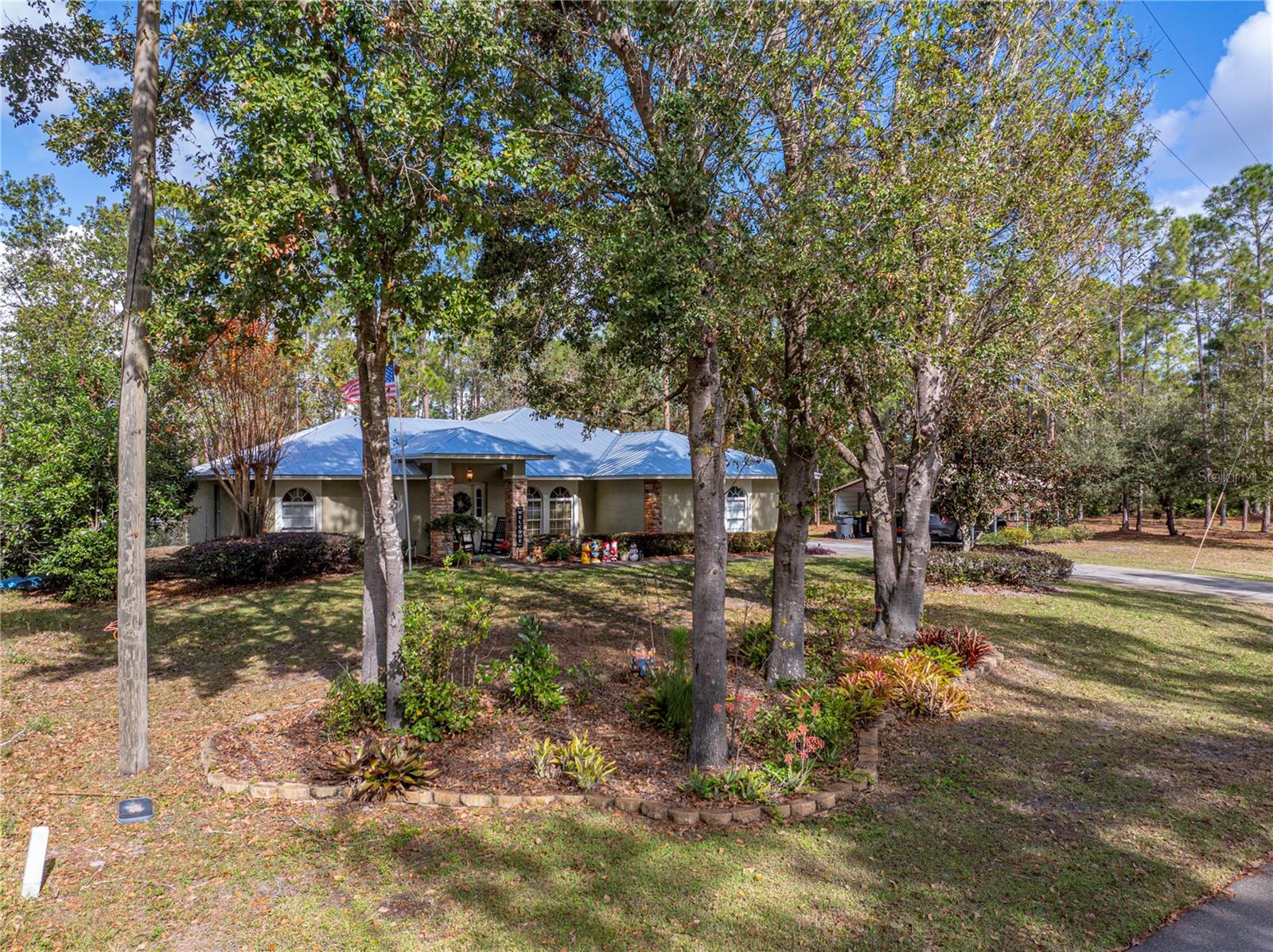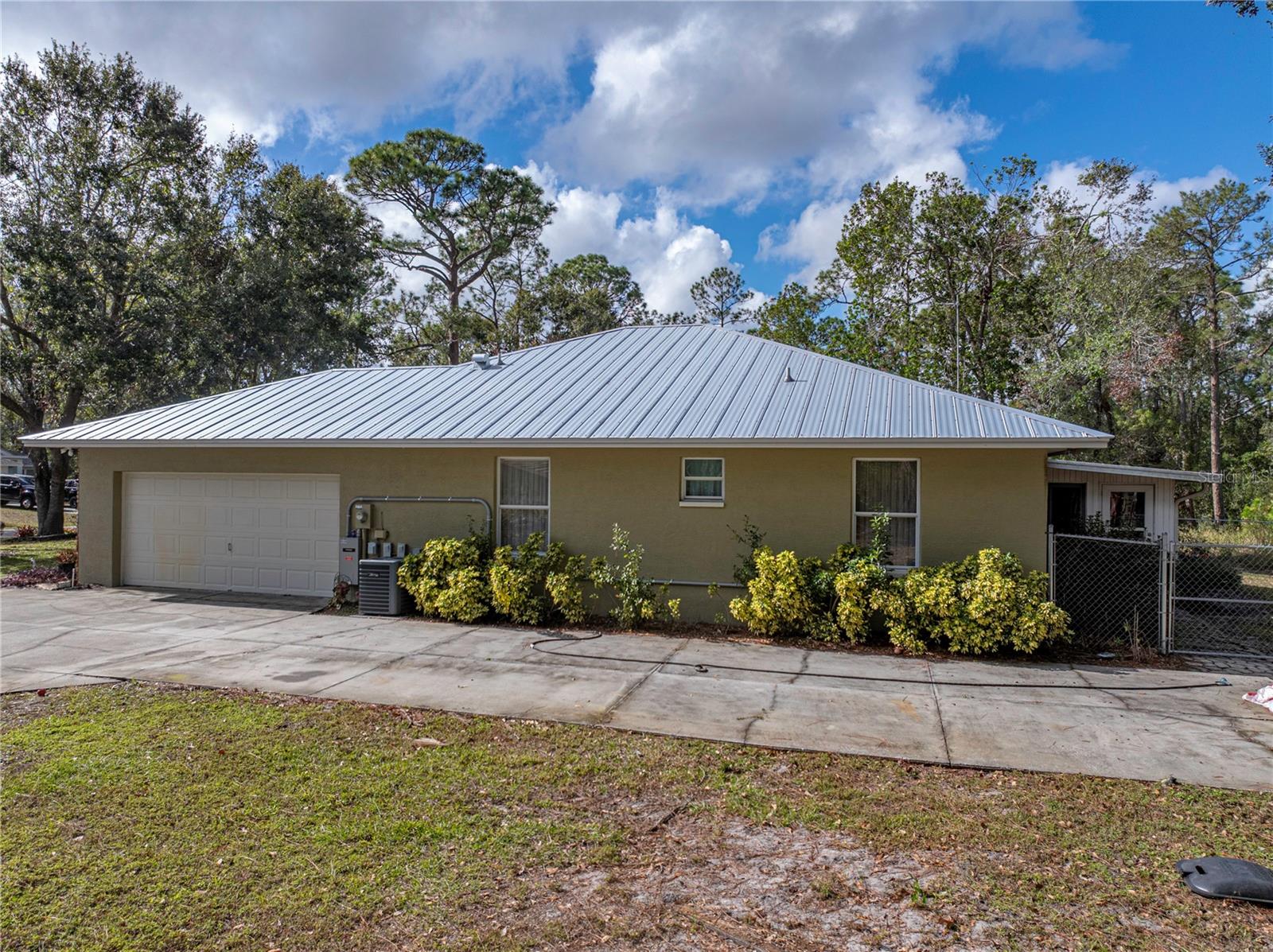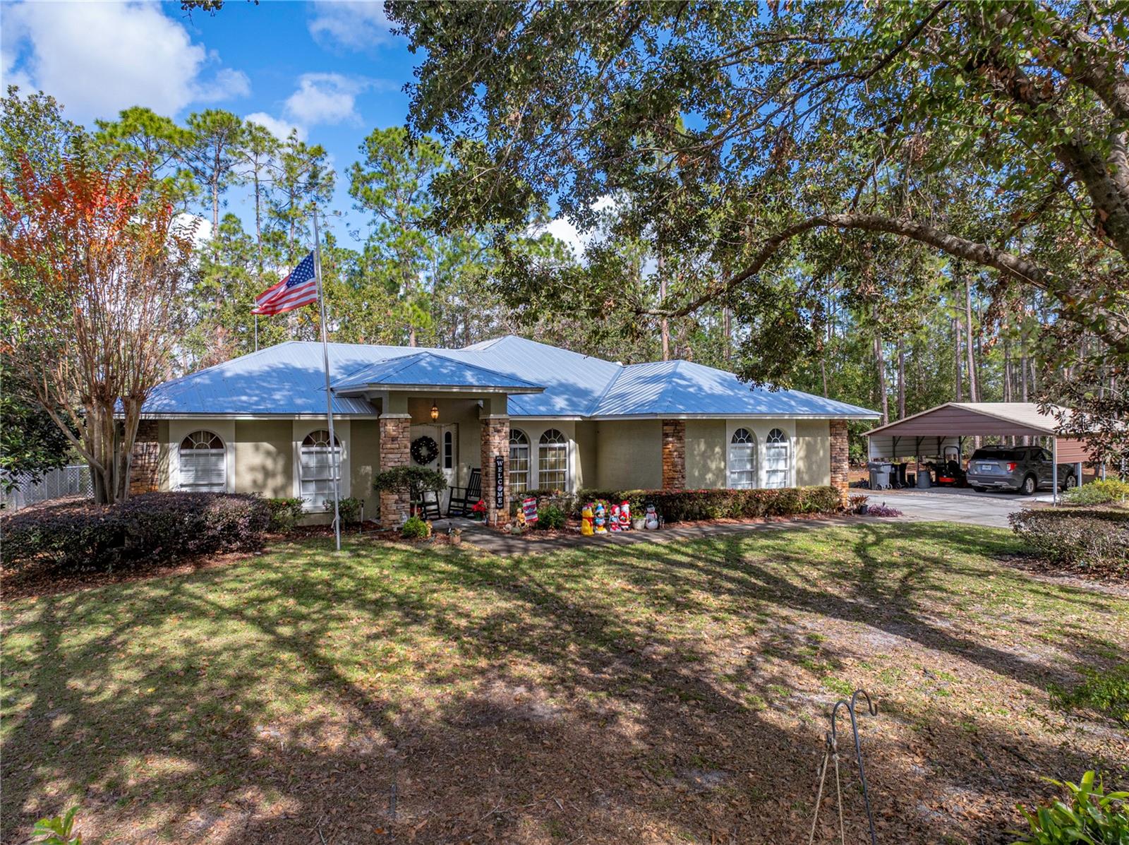 This beautiful house provides approximately 1,960 square feet of living space and sits on a DOUBLE LOT. The property features 3 bedrooms and 2 bathrooms. The home has has been owned by only 2 previous owners. The kitchen offers Corian countertops and an eat-in dining area, and there is a separate formal dining room as well. A BONUS ROOM can be utilized as an additional bedroom. The roof is a METAL ROOF that is approximately 2 years old. An enclosed, air-conditioned porch provides extra living space. Kitchen appliances, a washer and dryer, as well as a deep freezer, are included with the home. The flooring throughout the home is a combination of tile and laminate. The property is located in the desirable Walk In the Water community. A WHOLE HOUSE GENORAC GENERATOR and a 30 AMP RV HOOKUP are additional pluses to owning this home. The yard is fenced in and the lots total OVER AN ACRE. A carport and RETRACTABLE GARAGE SCREEN for the 2 car garage are present.
