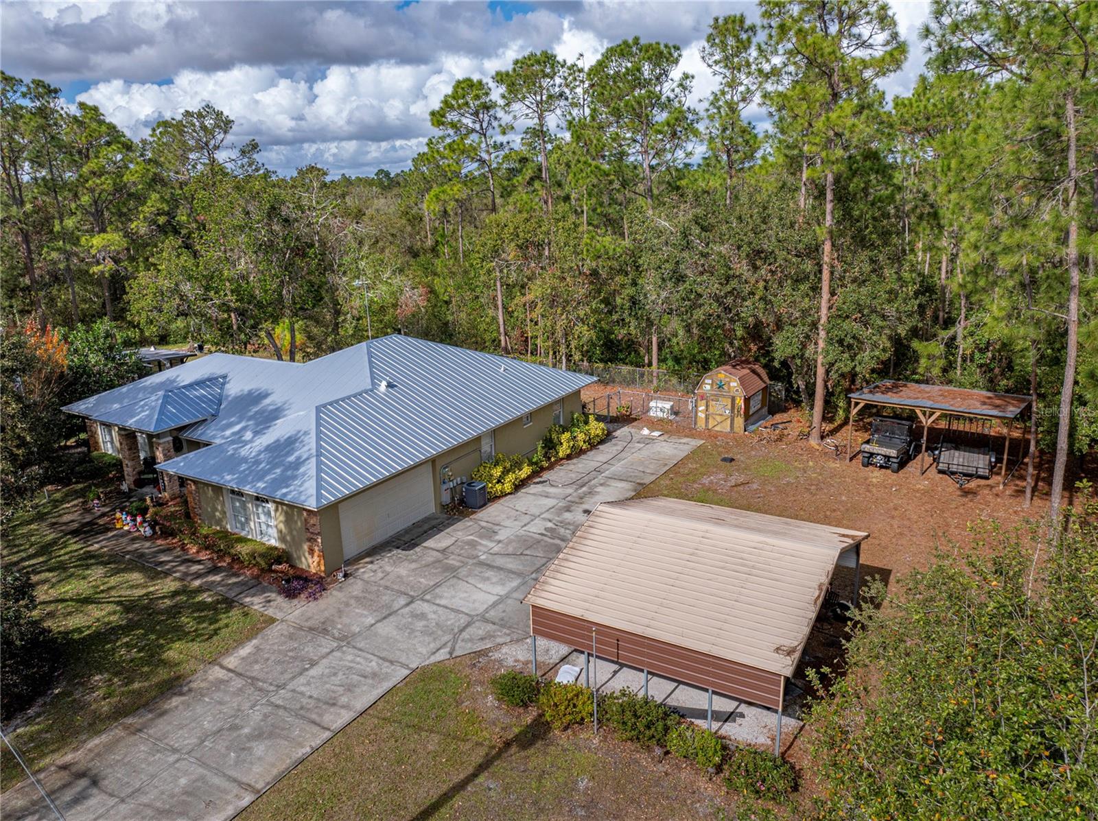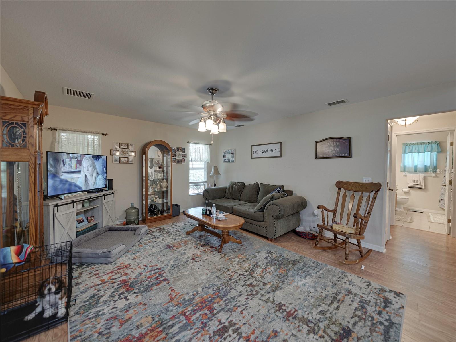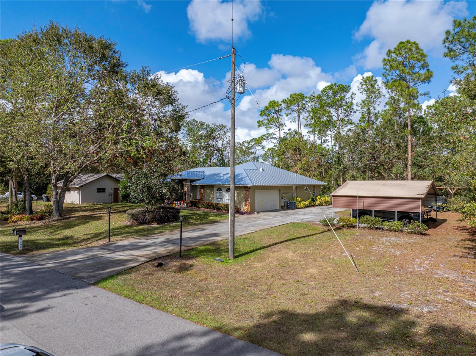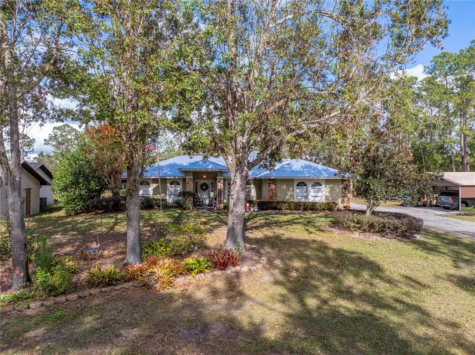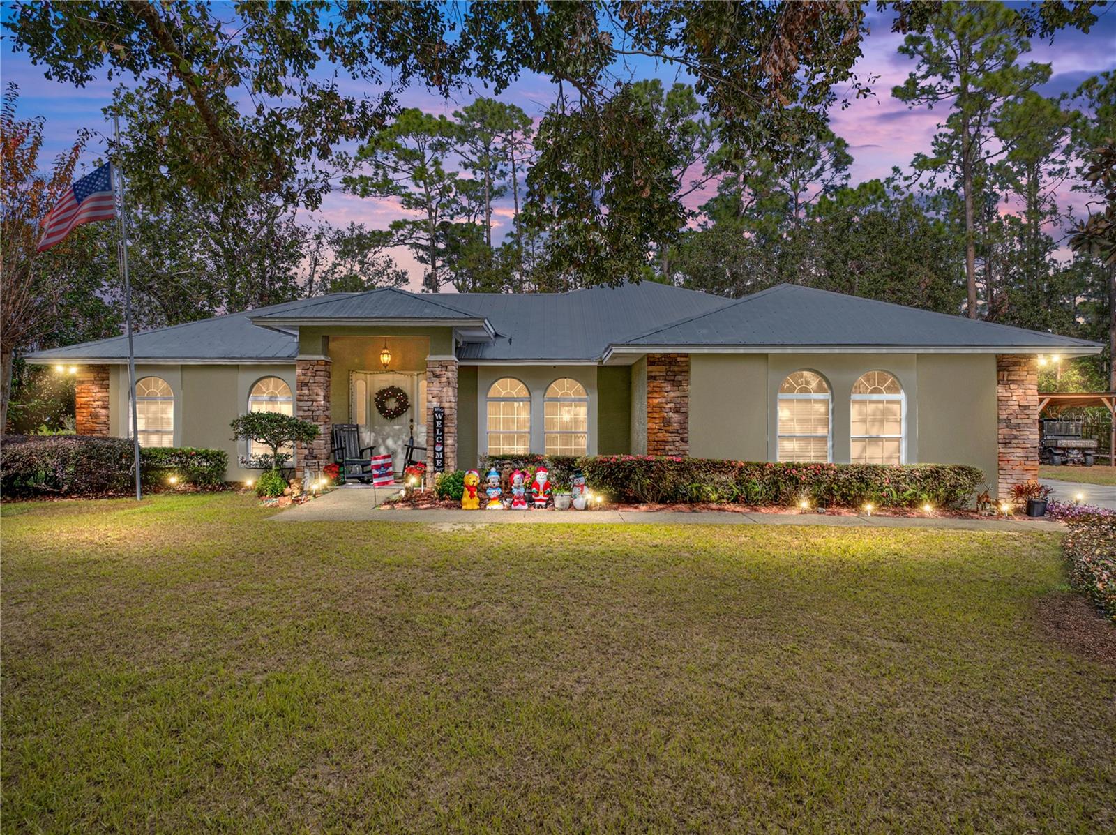This beautiful house provides approximately 1,960 square feet of living space and sits on a DOUBLE LOT. The property features 3 bedrooms and 2 bathrooms. The home has has been owned by only 2 previous owners. The kitchen offers Corian countertops and an eat-in dining area, and there is a separate formal dining room as well. A BONUS ROOM can be utilized as an additional bedroom. The roof is a METAL ROOF that is approximately 2 years old. An enclosed, air-conditioned porch provides extra living space. Kitchen appliances, a washer and dryer, as well as a deep freezer, are included with the home. The flooring throughout the home is a combination of tile and laminate. The property is located in the desirable Walk In the Water community. A WHOLE HOUSE GENORAC GENERATOR and a 30 AMP RV HOOKUP are additional pluses to owning this home. The yard is fenced in and the lots total OVER AN ACRE. A carport and RETRACTABLE GARAGE SCREEN for the 2 car garage are present.