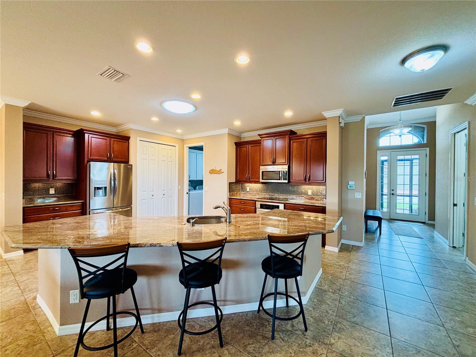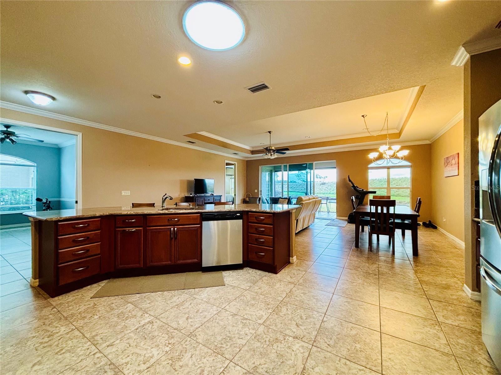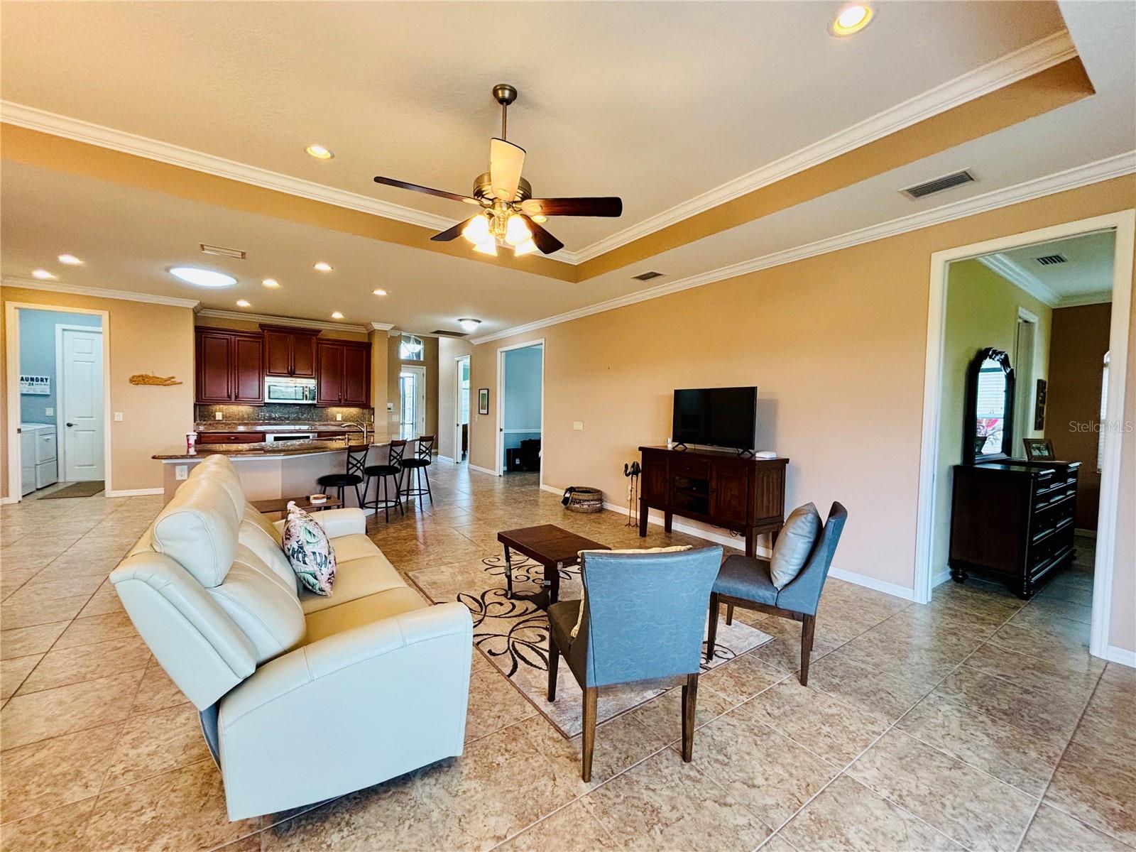If you are looking for a home with the WOW factor and View, here it is!! This beautiful, very upgraded, popular Coronado RV Garage home Floor plan is now available for your viewing!! This Home is located in beautiful Lake Ashton and is on a canal. This home has energy efficiency benefits that you will enjoy in this home are: Double pane windows, low E windows, R-30 insulation, foil back radiant barrier in attic, quick recovery water heater and do much more. As you enter the Front door which is upgraded to a French Door with a Screened in Entrance and Ring Doorbell. The entire home has large matching 18" Tile, Pocket Doors, Granite Counters and Crown Molding. The Upgrades in the Kitchen include an Induction Stove, 42" Glazed Maple Cabinets, Refrigerator with Freezer located on the bottom, Double Pantry, Bank of Drawers throughout, Granite Counters, 22" Sun Tunnel for added light, One Compartment Sink with Goose neck Faucet and Soap Dispenser, The Columns on each side of the Breakfast Bar have been removed for complete openness. The Great Room has a large Tray Ceiling, Ceiling Fan/Light and an extra Window and Eyebrow were added to the Dining area for added enjoyment of the amazing view and added brightness in the Home. The Master Bedroom also has the Tray Ceiling, Fan/light Fixture, Added Double Window to enjoy the awesome view in the rear of the home and a French Door leading to the Screened Veranda. The Master Bath area has has been customized to have a very large Walk in Closet with added Shelving, and Frosted Block window in the Shower area, Double Sinks and upgraded Lights and Faucets. The Laundry Room has 42" cabinets and Sink with granite counter. The Guest Bedroom and Bath area have a Pocket door to give your Guests complete privacy. The Den has Double French Doors that are pocket Doors. The Garage area is for 2 Cars with an electric retractable screen and an RV area that is 55 x 15.8 with complete Hook-ups which include 50 amp service, water, sewer and cable. A complete dream garage which includes a storage room in the rear and an Epoxy Floor covering. The Veranda is Screened and a Paver Patio has been added.