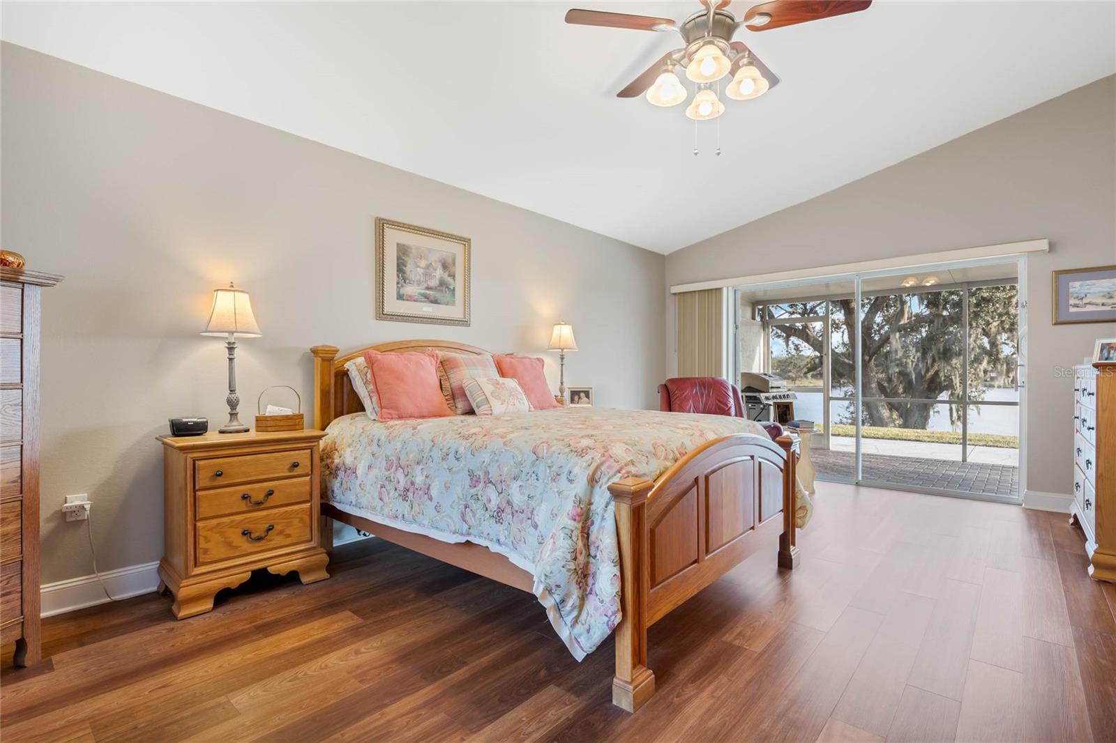 This stunning lakefront home, located in the maintenance-free, gated community of Chalet Estates, offers breathtaking views and a unique layout designed for comfort and versatility. The sought-after 3-bedroom, 3-bathroom Sauvignon floor plan includes a detached mother-in-law/guest suite, providing privacy and convenience for visitors. As you enter through the front door, you’ll be welcomed into a private, screened-in courtyard—an inviting outdoor retreat. The spacious great room features soaring vaulted ceilings and triple glass sliding doors that frame the panoramic views of Lake Suzanne. The well-appointed kitchen boasts elegant cherry wood cabinetry with crown molding, pull-out shelving, Corian countertops, a custom tile backsplash, a closet pantry, and an upgraded appliance package. A large breakfast bar enhances both function and style. For seamless indoor-outdoor entertaining, the dining room’s French doors open directly into the courtyard, creating an airy, open ambiance. The generously sized primary suite offers ample space for a sitting area, a walk-in closet, French doors leading to the courtyard, and stunning lake views through sliding glass doors. The ensuite bath is designed for comfort and elegance, featuring a comfort-height dual vanity, an updated light fixture, a linen closet, a heat lamp, and a seated walk-in shower with a glass enclosure. Outdoor living is a delight with a spacious screened-in lanai and a paver patio overlooking the tranquil waters of Lake Suzanne. Whether enjoying a quiet morning coffee or an evening sunset, this serene setting provides the perfect escape. Additional features of this remarkable home include a dedicated laundry room with a washer and dryer, solid surface flooring throughout, hurricane shutters, a paved walkway, gutters, exterior lighting, decorative stone landscape curbing, an irrigation system with a meter, a 2022 architectural shingle roof, courtyard and lanai adorned with pavers, pull-down attic stairs, a utility sink in the garage, and a 2-car garage with a garage door opener and keyless entry pad. Chalet Estates offers an active and vibrant 55+ lifestyle, complete with a waterfront clubhouse, a heated pool, a fitness center, a patio area, and access to Lake Suzanne. With its prime location near shopping, dining, medical facilities, major routes, and Legoland, this home offers both tranquility and convenience. Don’t miss the opportunity to experience the best of lakefront living in this beautifully designed, maintenance-free home!
