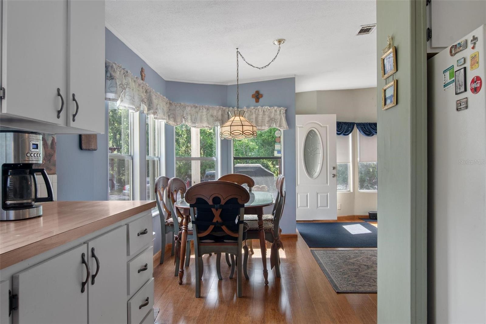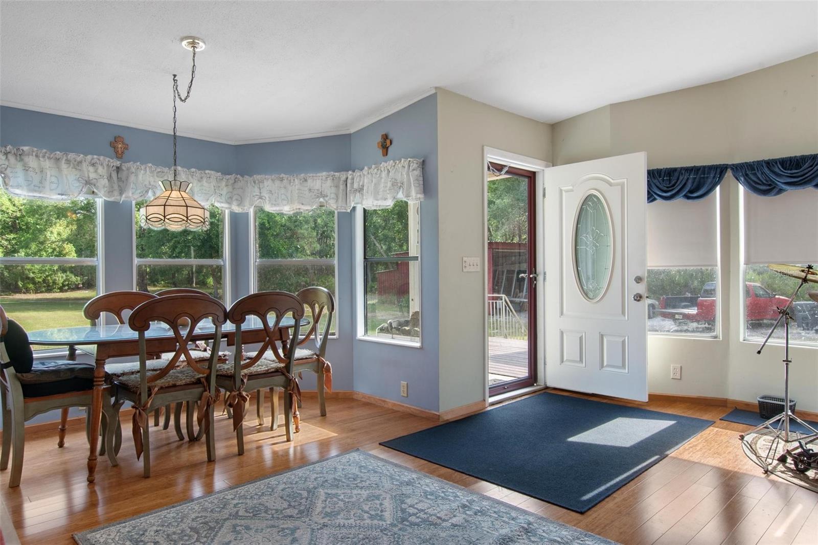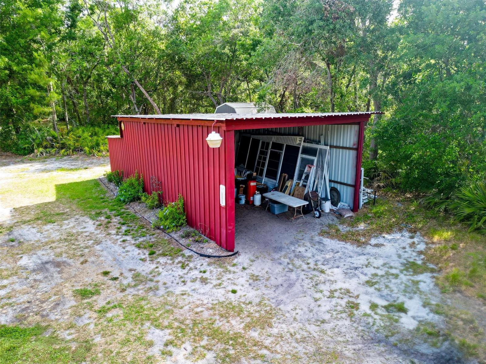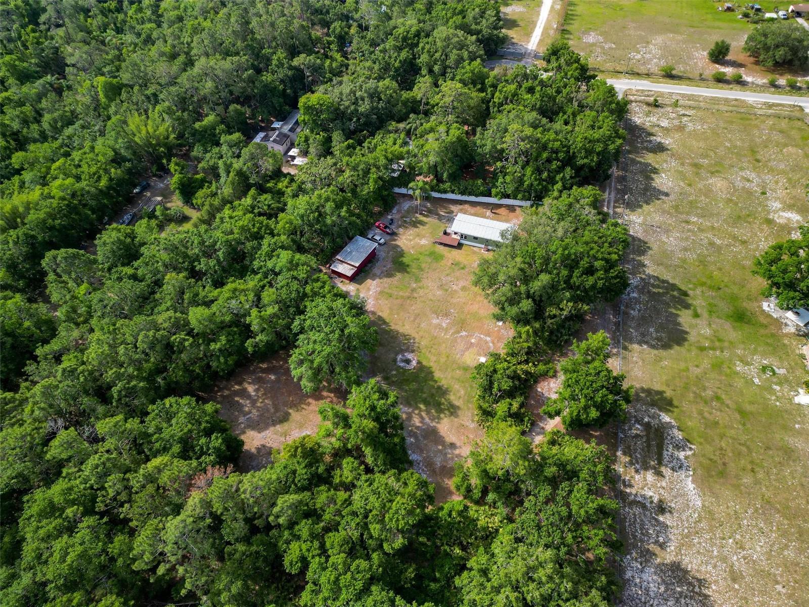 Welcome to your enchanting retreat, nestled on a sprawling 3.3 acres of vibrant greenery and surrounded by a picturesque landscape that provides both tranquility and privacy. This charming double-wide home boasts two bedrooms and two baths, making it an ideal escape for families or outdoor lovers alike. As you step inside, you are greeted by an inviting open-concept layout that seamlessly integrates the living, dining, and kitchen areas. Elegant solid bamboo flooring flows throughout the home, while cozy carpeting in the bedrooms ensures a comforting haven for rest. Large bay windows invite sunlight to dance across the space, framing delightful views of the lush surroundings. One of the standout features of this property is the expansive cleared area, offering a vast canvas for your outdoor dreams, whether it be gardening, recreation, or simply enjoying the serenity of nature. This cleared space is enveloped by a beautiful array of trees, providing a natural barrier for ultimate privacy. Step outside onto the large sun deck—perfect for soaking up the sun, hosting barbecues, or simply enjoying your morning coffee while basking in the beauty of your surroundings. This outdoor oasis will be your go-to spot for relaxation and gatherings with friends and family. For those who require extra storage or have a penchant for hobbies, this property comes equipped with both a storage building and a barn building—ideal for storing tools, equipment, using as a 4 car garage or even transforming into your dream workshop! Embrace the great outdoors with Lake Pierce just a stone's throw away, complete with a convenient boat ramp for all your water sports adventures. And when you need a taste of city life, you’re only 10 minutes from all essential amenities. Don’t let this unique opportunity slip away! Schedule your private tour today and step into a lifestyle where comfort meets nature. Your dream home awaits!