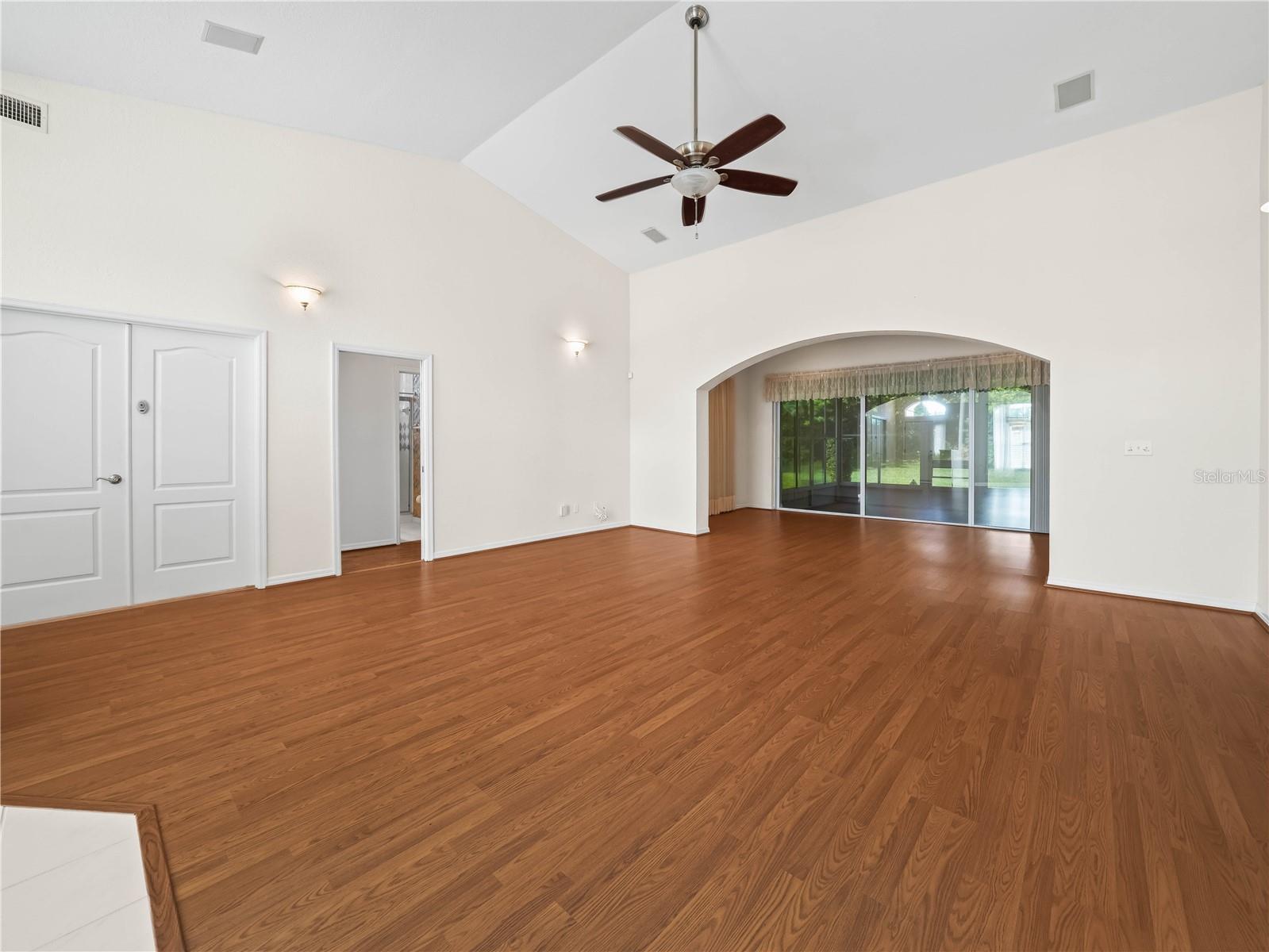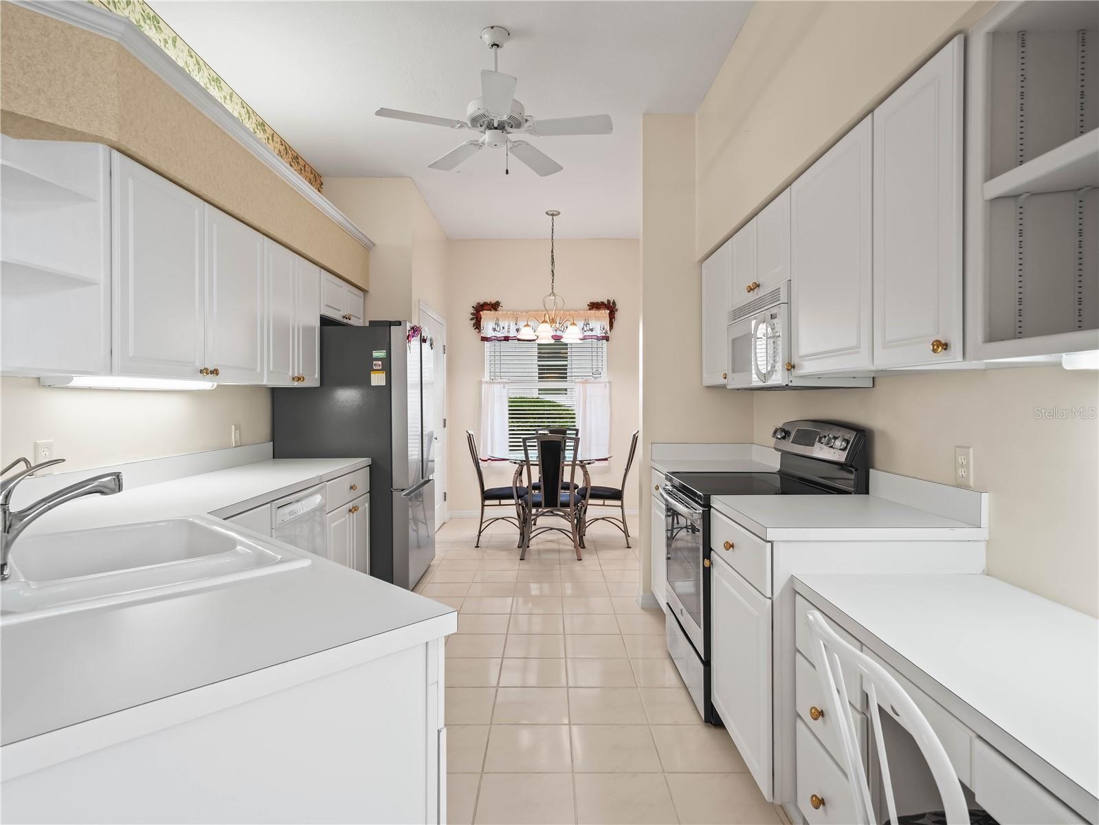 Charming 3-Bedroom, 2-Bath Mediterranean Home in Lake Wales Country Club! Welcome to this beautifully maintained Mediterranean-style block home located in Lake Wales Country Club. Boasting a thoughtful layout and stylish finishes, this home offers comfort, convenience, and plenty of space to entertain. Step inside to discover wood laminate and ceramic tile flooring throughout. The spacious great room features a dining area plus an additional sitting area, flowing seamlessly into the open-concept kitchen. The kitchen is a chef’s dream with abundant cabinet storage, a built-in desk, a deep sink, a dinette, and seating at the counter. Stainless steel appliances include a NEW side-by-side refrigerator, electric range, dishwasher, and microwave range hood. The master suite is a true retreat, measuring 17x13, with a remote-controlled ceiling fan, window treatments, a small mounted TV, and an en suite bathroom featuring a dual-sink vanity, soaking tub, stand-up shower, walk-in closet, linen closet, and tall ceilings. Guest bedrooms are equally comfortable, complete with ceiling fans and window treatments, while the guest bathroom offers a convenient stand-up shower. Enjoy Florida living with a large three-panel sliding glass door opening onto a screened lanai with a newly painted floor, overlooking a spacious backyard with property lines extending beyond the trees. Additional features include an inside utility room with washer and dryer, a large 2-car garage with refinished floor, garage door opener, portable generator hookup, wash tub, water filtration system, gas water heater, and NEW air conditioning system. The home is also wired for a security system. The HOA includes yard maintenance, irrigation well and system, and access to the community pool and clubhouse. Don’t miss this incredible opportunity to own a home in Lake Wales Country Club—schedule your showing today!