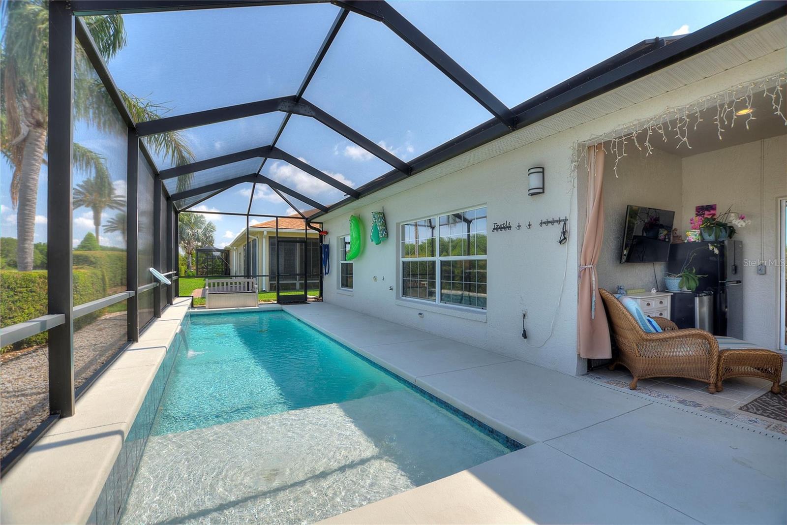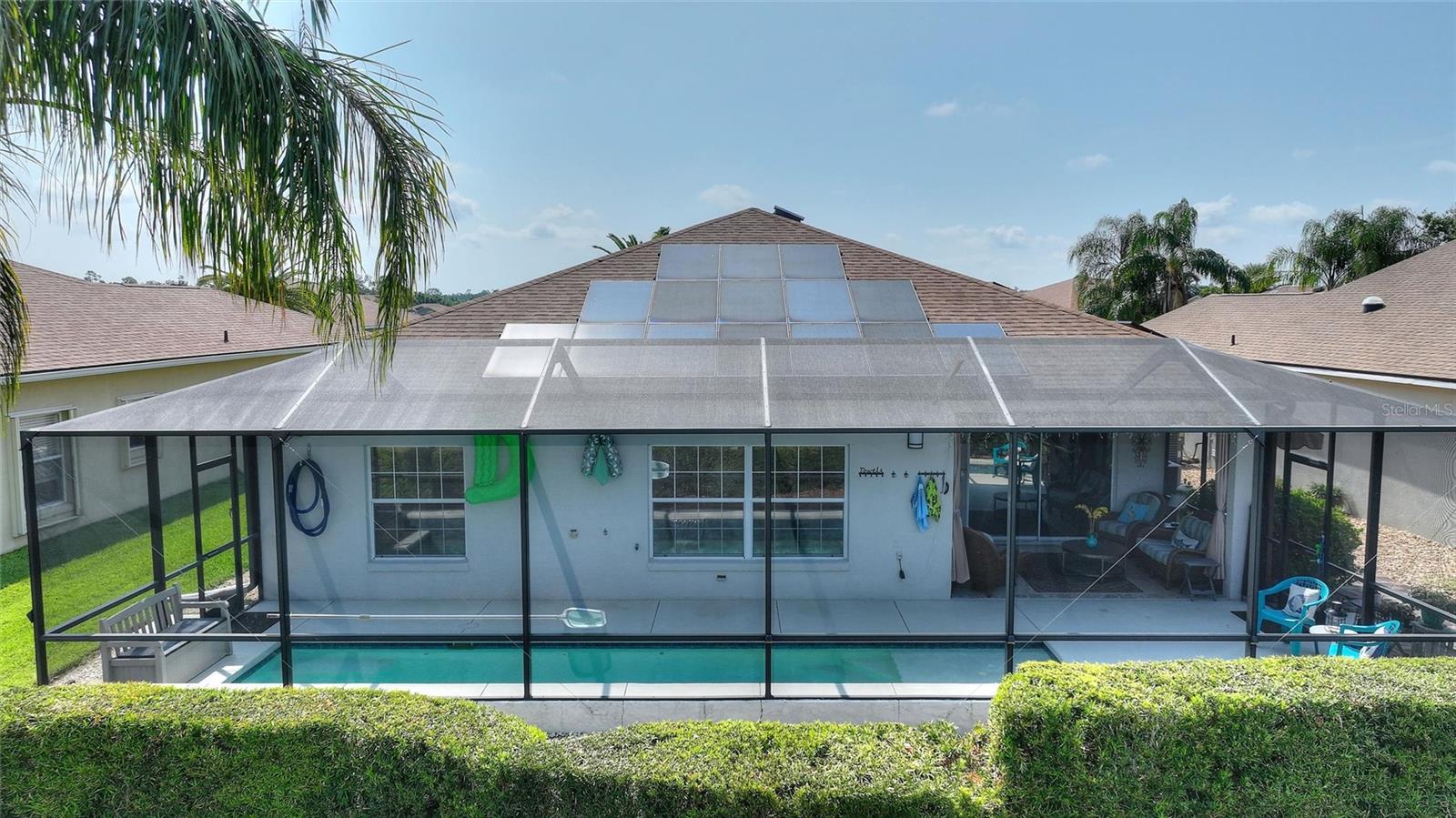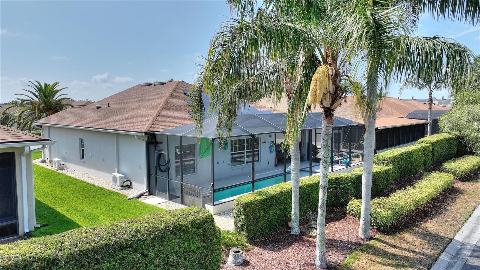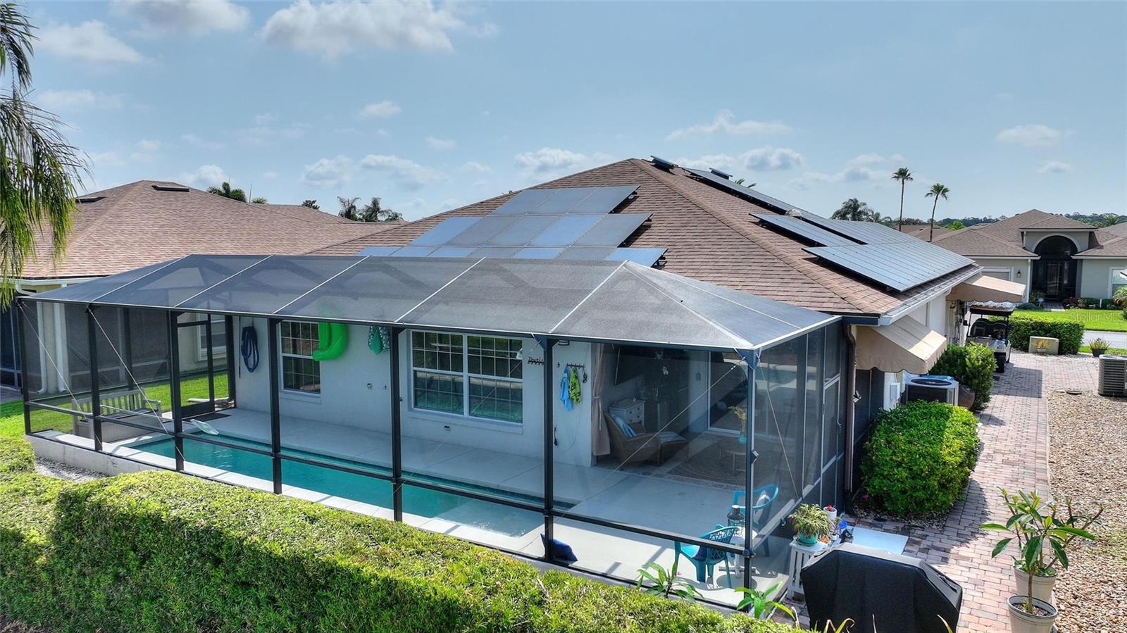 MOVE RIGHT INTO THIS IMMACULATE POOL HOME LOCATED IN THE BEAUTIFUL 55+ COMMUNITY OF LAKE ASHTON LOCATED IN CENTRAL FLORIDA!!! So many updates including a 30 x 8 full screened and heated pool w/ PebbleTec finish (2019), solar panels = PAID IN FULL (2020), new roof (2020), 3 ton 18 seer HVAC (2019), additional added mini-splits added in each bedroom, Luxury Vinyl Plank flooring throughout (2022), new walk-in pantry with built-in shelving (2024), hybrid hot water (2019), solar attic fans, newer beautiful level 3 granite in kitchen and newer stainless appliances! This home also features double paned windows, Skeeter Beater, wired for a generator and has a garage length of 22ft. A widened pavered driveway ensures you have plenty of parking for cars/carts and also features a custom awning for protecting your personal cart from the Florida sun. This home boasts so much and most importantly is extremely efficient with the "OWNED" solar saving you lots of $$ each month! You'll love the amenities at Lake Ashton featuring (2) 24 hour guarded/gated entrances, (2) clubhouses, (2) restaurants, (2) golf courses, movie theater, gym, indoor/outdoor pools, bowling alley, tennis/pickle ball courts, dog parks and much more. You'll have activities available every day of the month. Lake Ashton is conveniently located in Winter Haven/Lake Wales, FL and is close to shopping, medical and LEGOLAND!