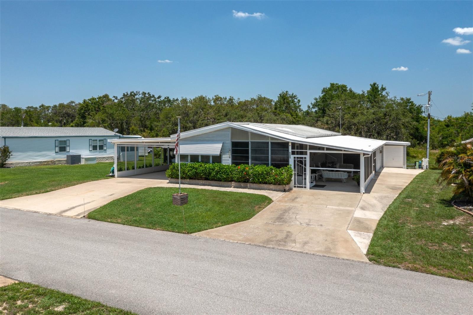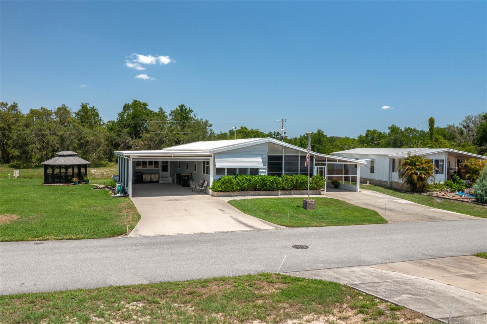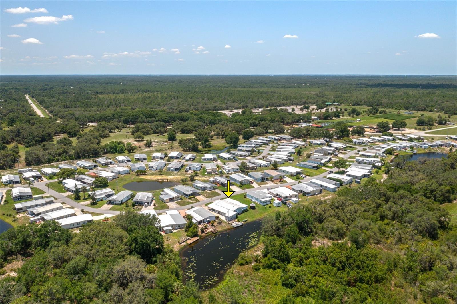 YOU OWN THE LAND!! THIS ONE-OF-A-KIND HOME COULD BE YOURS! It offers so much! BRAND NEW 3.5 TON AC, WITH NEW DUCT WORK AND NEW THERMOSTAT IS BEING INSTALLED ON WEDNESDAY, MAY 28, 2025. WARRANTY WILL TRANSFER TO NEW OWNER. It's a fabulously maintained home with 3 bedrooms and 2 bathrooms and is in a very sought after 55+ rural community on the largest lake in Polk County! LAKE WALK IN WATER. There is crown molding throughout. Very large spacious home on a pond. Also, this home sits on 2 lots, totaling almost one-third of an acre. A beautiful gazebo overlooks the pond and has a swing to sit and relax in the evenings, or a quiet place to have your coffee in the morning. There are 2 driveways, and a huge, screened lanai on each side with remote automatic opening screens that will allow you to put your vehicle inside. One lanai is currently set up as a large sitting area. The other lanai is being used as a carport. With a modern kitchen and all the updates, you can think of, you won't have to lift a finger here. Nothing is left for you to do but enjoy the calm serenity of the area. This home has an office and a Florida room. Plenty of room for guests and entertaining. There is a pond and woods behind the home, so no rear neighbors. 2 huge sheds with garage doors for plenty of storage. The metal roof, AC, water heater are newer. The golf cart goes with the home. Furnishings are negotiable. YOU MUST SEE THIS HOME IN PERSON TO REALLY APPRECIATE ALL THIS HOME HAS! You will enjoy the feel of living in the country but still be close to all the conveniences. This home is part of an optional share program that would normally cost a $2,400 one-time fee to join, but the seller has already paid it for you. You just pay $100 monthly and have use of all the amenities the community offers. You can fish from your own dock in the pond that is loaded with fish, or fish from the pier at the lake at the clubhouse. Breeze Hill has a very active clubhouse, so you will always have the option of participating in the many activities that are offered. You need to make an appointment to see this home. It's a wonderful opportunity to see this for yourself. If not, you don't know what you're missing. This very well could be the dream home you have always wanted.