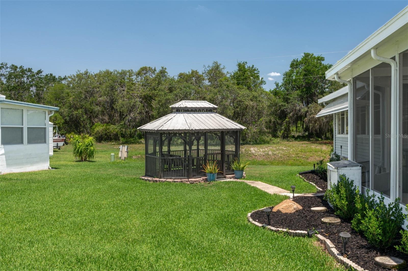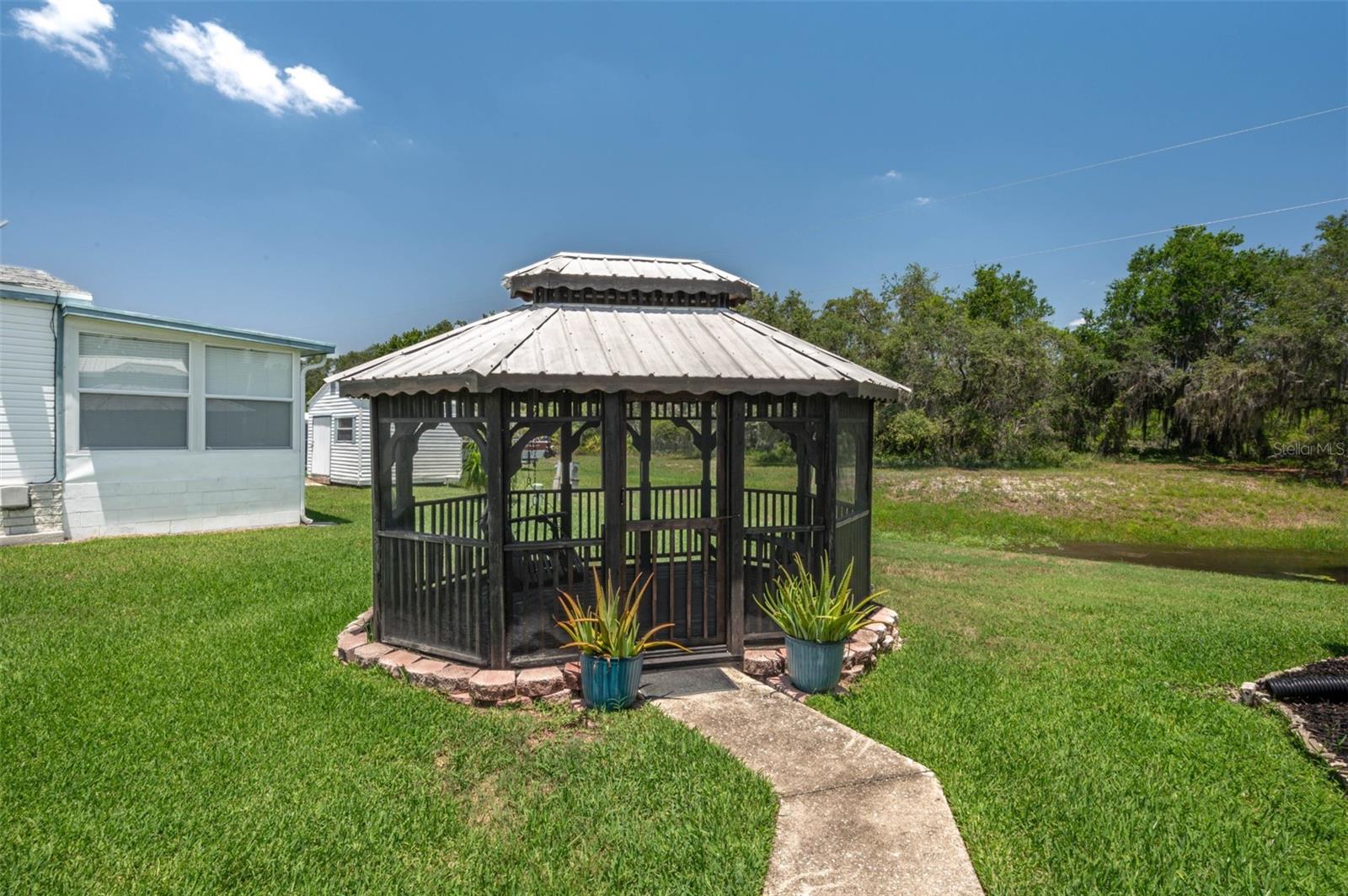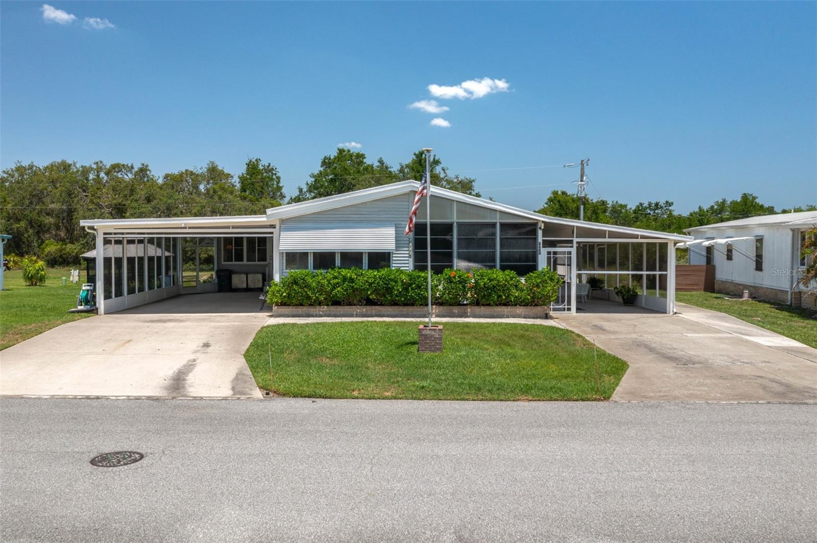 YOU OWN THE LAND!! THIS ONE-OF-A-KIND HOME COULD BE YOURS! It offers so much! BRAND NEW 3.5 TON AC, WITH NEW DUCT WORK AND NEW THERMOSTAT IS BEING INSTALLED ON WEDNESDAY, MAY 28, 2025. WARRANTY WILL TRANSFER TO NEW OWNER. It's a fabulously maintained home with 3 bedrooms and 2 bathrooms and is in a very sought after 55+ rural community on the largest lake in Polk County! LAKE WALK IN WATER. There is crown molding throughout. Very large spacious home on a pond. Also, this home sits on 2 lots, totaling almost one-third of an acre. A beautiful gazebo overlooks the pond and has a swing to sit and relax in the evenings, or a quiet place to have your coffee in the morning. There are 2 driveways, and a huge, screened lanai on each side with remote automatic opening screens that will allow you to put your vehicle inside. One lanai is currently set up as a large sitting area. The other lanai is being used as a carport. With a modern kitchen and all the updates, you can think of, you won't have to lift a finger here. Nothing is left for you to do but enjoy the calm serenity of the area. This home has an office and a Florida room. Plenty of room for guests and entertaining. There is a pond and woods behind the home, so no rear neighbors. 2 huge sheds with garage doors for plenty of storage. The metal roof, AC, water heater are newer. The golf cart goes with the home. Furnishings are negotiable. YOU MUST SEE THIS HOME IN PERSON TO REALLY APPRECIATE ALL THIS HOME HAS! You will enjoy the feel of living in the country but still be close to all the conveniences. This home is part of an optional share program that would normally cost a $2,400 one-time fee to join, but the seller has already paid it for you. You just pay $100 monthly and have use of all the amenities the community offers. You can fish from your own dock in the pond that is loaded with fish, or fish from the pier at the lake at the clubhouse. Breeze Hill has a very active clubhouse, so you will always have the option of participating in the many activities that are offered. You need to make an appointment to see this home. It's a wonderful opportunity to see this for yourself. If not, you don't know what you're missing. This very well could be the dream home you have always wanted.