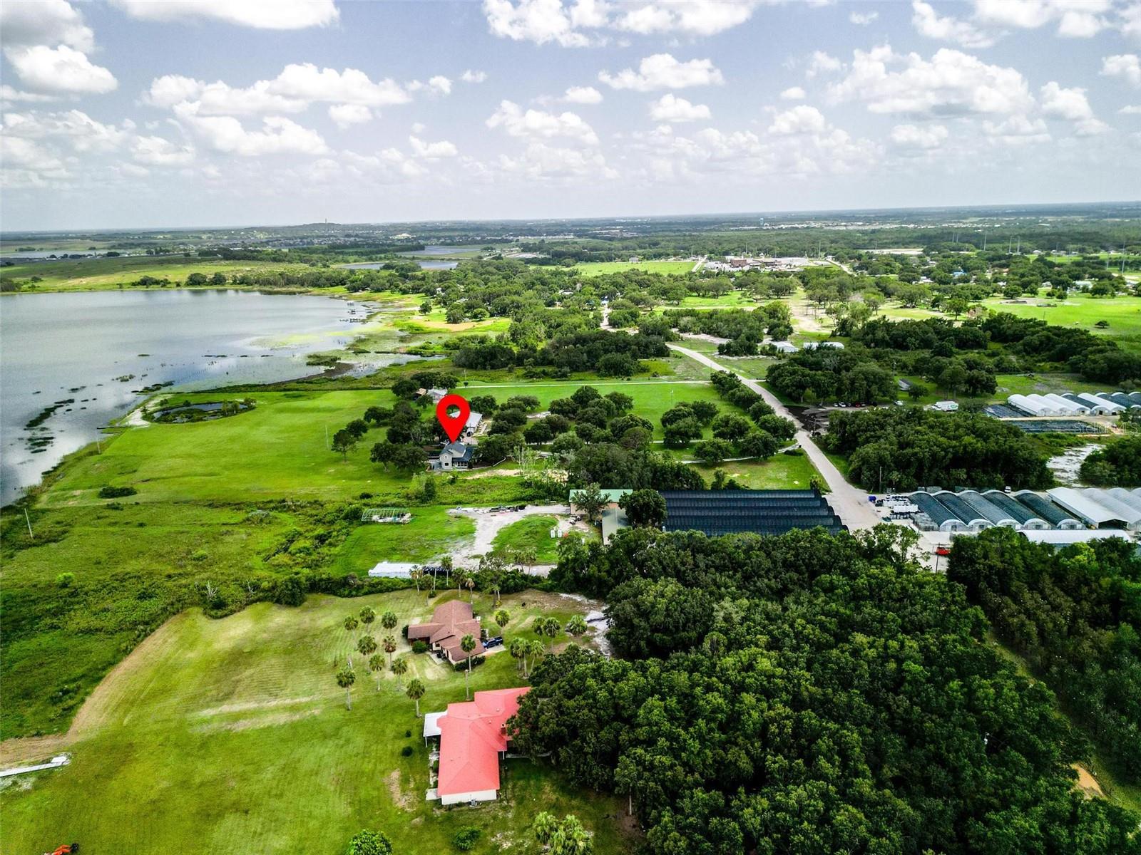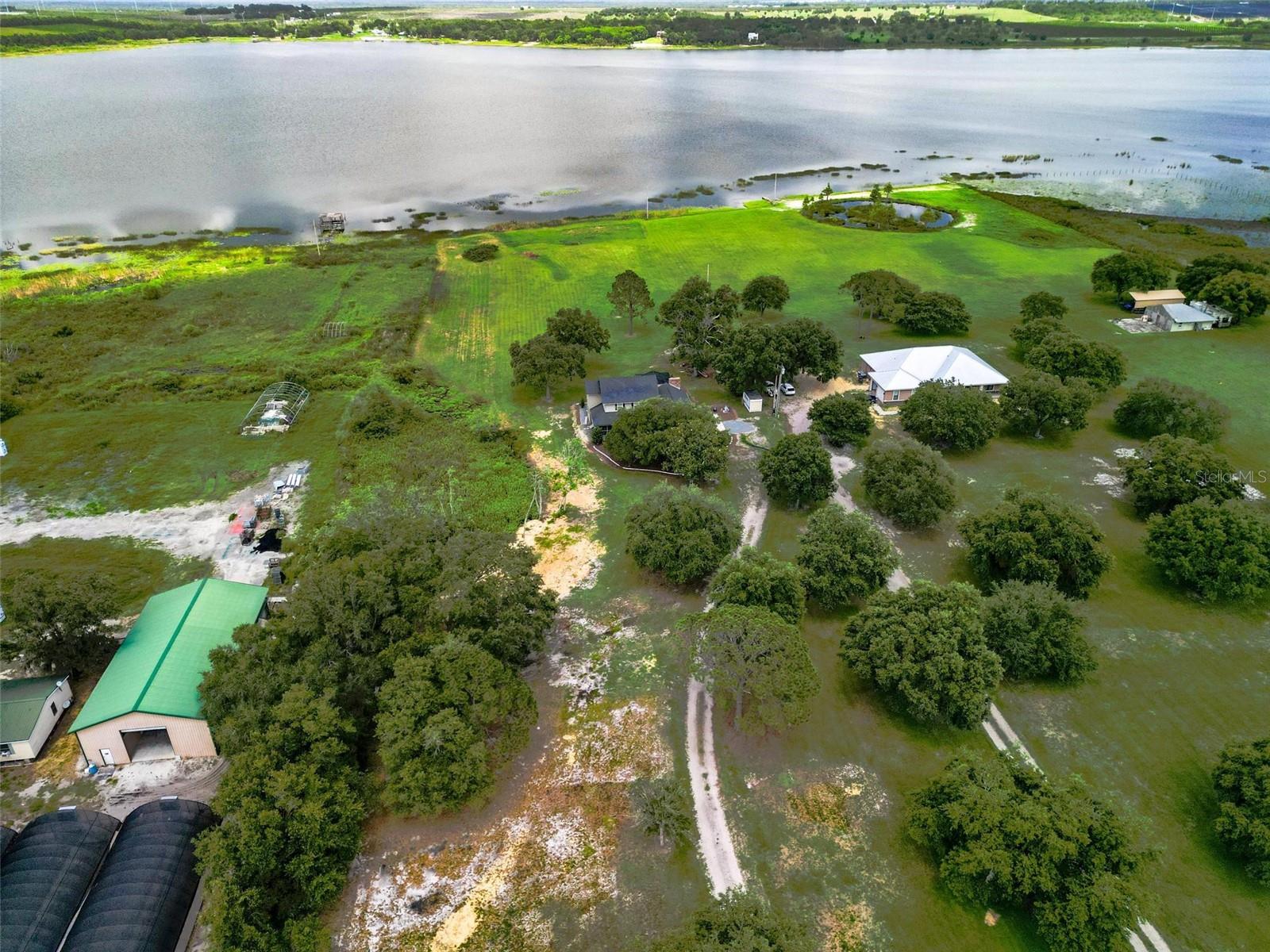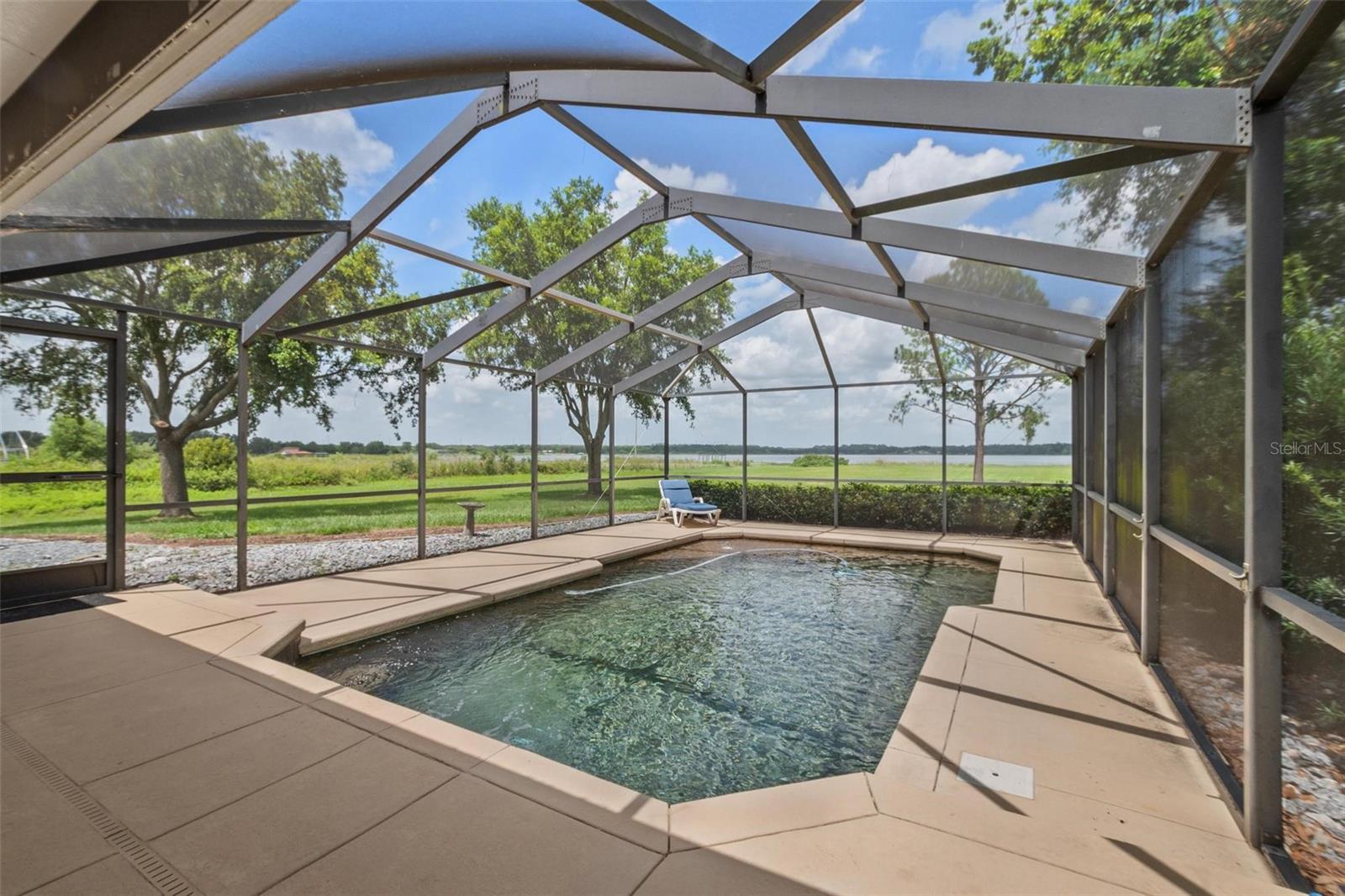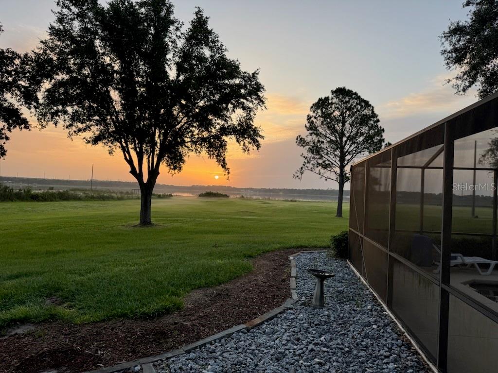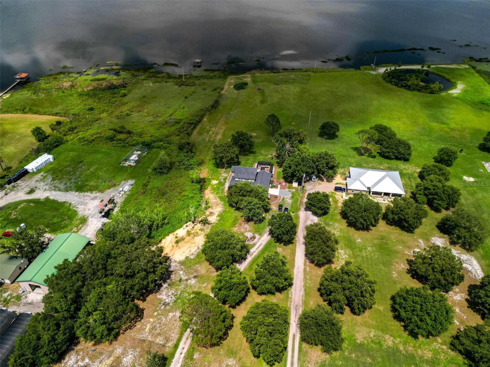 One or more photo(s) has been virtually staged. Discover your dream lakefront oasis on Lake Annie, where breathtaking sunrises greet you each morning and the world feels a million miles away. Situated on a private road, this stunning property boasts 5 acres of lakefront beauty adorned with mature trees, plus an additional fenced and gated 3.5 acres across the road, offering ample space and privacy with room for livestock. As you drive down the winding path, you’ll truly leave the world behind. The home features a natural color PebbleTec pool that seamlessly blends into the landscape, creating a perfect retreat for relaxation. The screen-enclosed pool area allows you to enjoy the crisp autumn breezes without the annoyance of bugs, while the screened front porch invites you to open the doors and let refreshing air flow through the home. Inside, the spacious open floor plan is accentuated by elegant travertine floors and Silestone engineered quartz countertops in the kitchen, complemented by huge windows that flood the space with natural light. The formal living room showcases engineered hardwood flooring, and the family room boasts a charming brick fireplace, creating a cozy atmosphere for gatherings. A formal dining room provides an ideal setting for entertaining. Ascend the extra-wide wood stairway to find an inviting open area crowned with a picture window that frames stunning lake views, where you can also catch glimpses of rocket launches in the distance. The upstairs area features luxury vinyl plank flooring throughout, including an en-suite bath in the master bedroom. This home is equipped with a generator transfer switch and generator for peace of mind, as well as a water filtration system for clean, refreshing water. With tons of storage and three interior rooms that can serve as protective shelters during hurricane season, this property is not just a home; it’s a sanctuary waiting for you to make it your own. Conveniently located just 2 miles from Highway 27, shops, and restaurants, this is the perfect blend of seclusion and accessibility.