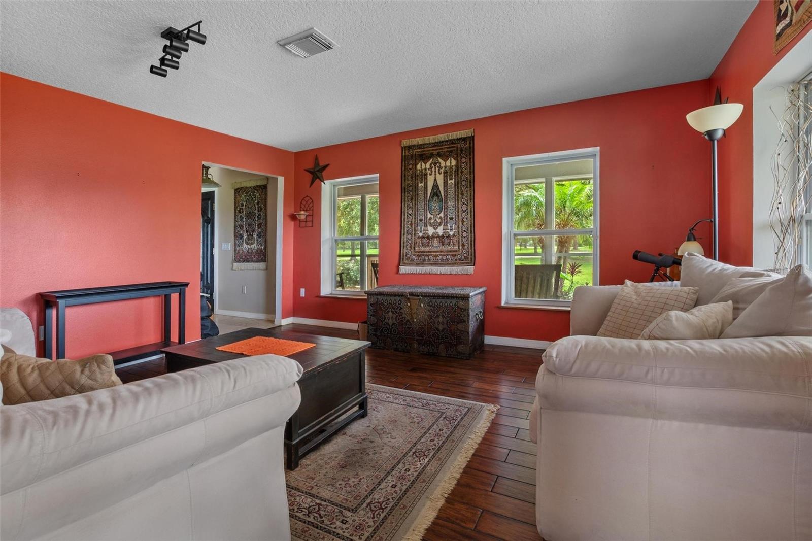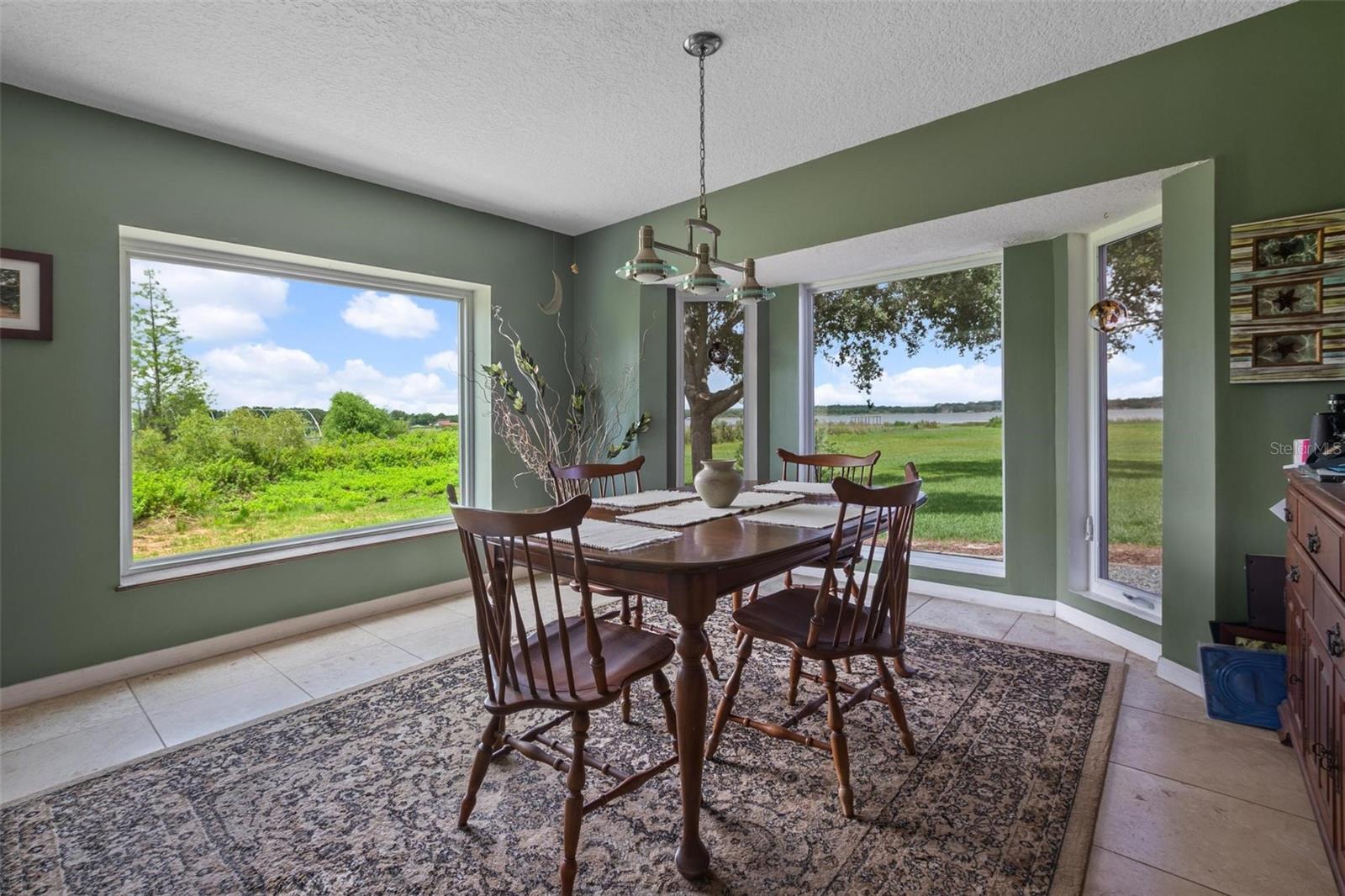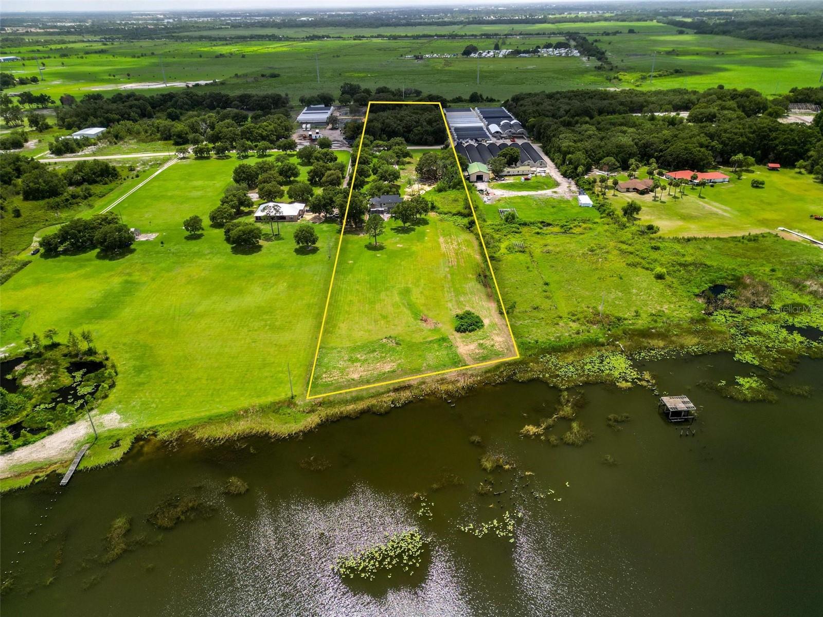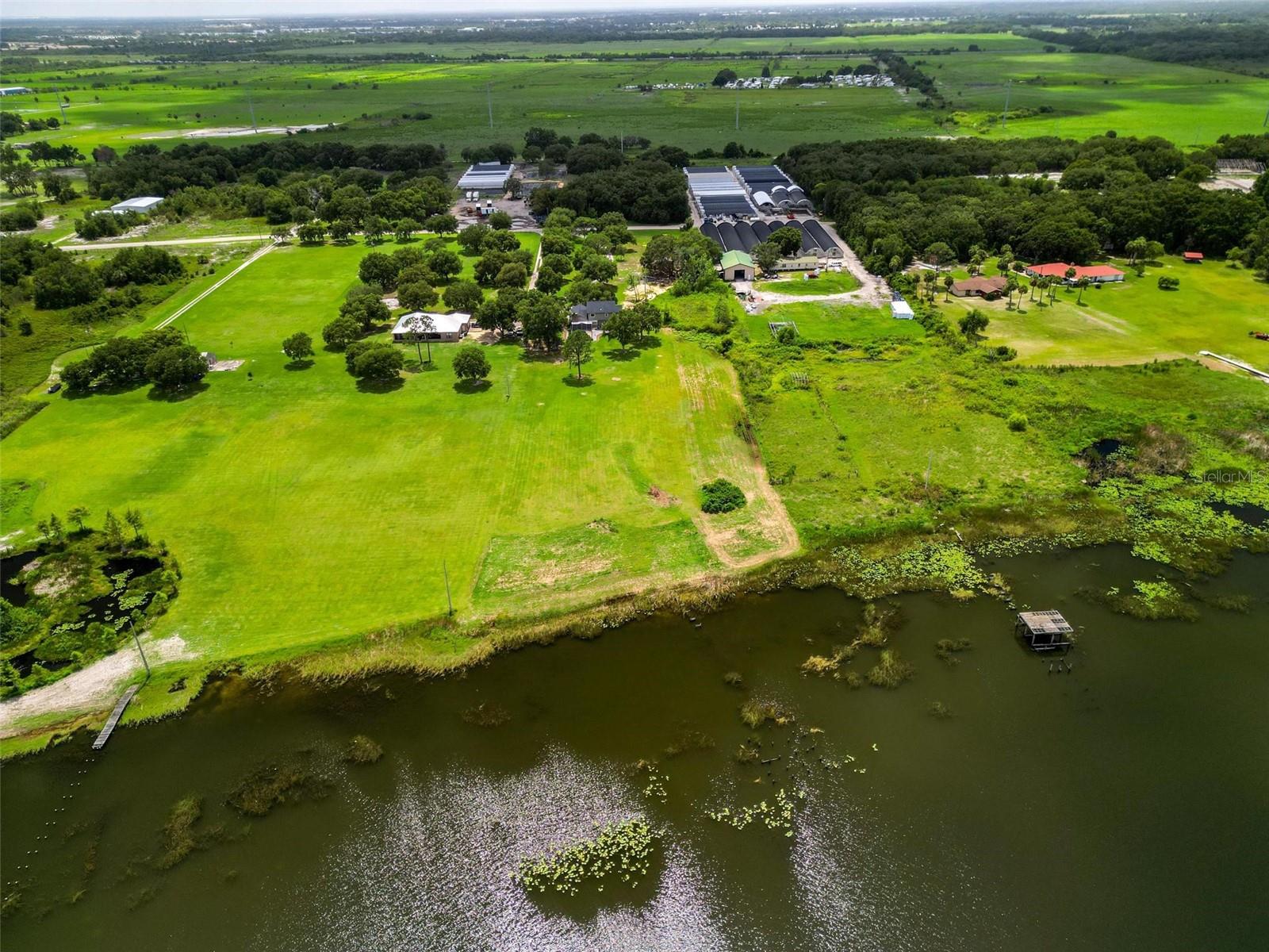 One or more photo(s) has been virtually staged. Discover your dream lakefront oasis on Lake Annie, where breathtaking sunrises greet you each morning and the world feels a million miles away. Situated on a private road, this stunning property boasts 5 acres of lakefront beauty adorned with mature trees, plus an additional fenced and gated 3.5 acres across the road, offering ample space and privacy with room for livestock. As you drive down the winding path, you’ll truly leave the world behind. The home features a natural color PebbleTec pool that seamlessly blends into the landscape, creating a perfect retreat for relaxation. The screen-enclosed pool area allows you to enjoy the crisp autumn breezes without the annoyance of bugs, while the screened front porch invites you to open the doors and let refreshing air flow through the home. Inside, the spacious open floor plan is accentuated by elegant travertine floors and Silestone engineered quartz countertops in the kitchen, complemented by huge windows that flood the space with natural light. The formal living room showcases engineered hardwood flooring, and the family room boasts a charming brick fireplace, creating a cozy atmosphere for gatherings. A formal dining room provides an ideal setting for entertaining. Ascend the extra-wide wood stairway to find an inviting open area crowned with a picture window that frames stunning lake views, where you can also catch glimpses of rocket launches in the distance. The upstairs area features luxury vinyl plank flooring throughout, including an en-suite bath in the master bedroom. This home is equipped with a generator transfer switch and generator for peace of mind, as well as a water filtration system for clean, refreshing water. With tons of storage and three interior rooms that can serve as protective shelters during hurricane season, this property is not just a home; it’s a sanctuary waiting for you to make it your own. Conveniently located just 2 miles from Highway 27, shops, and restaurants, this is the perfect blend of seclusion and accessibility.
