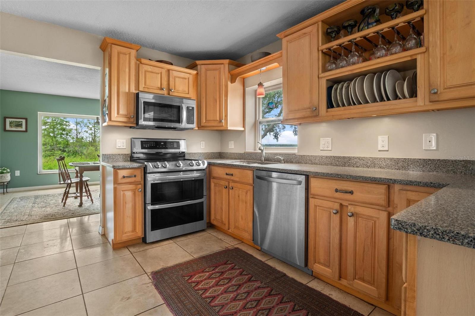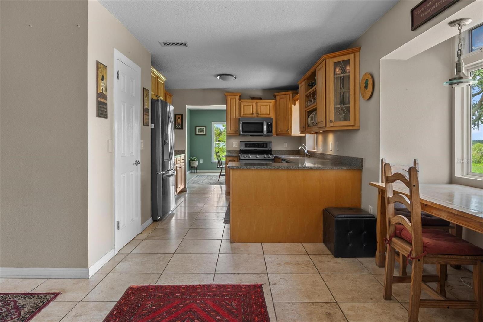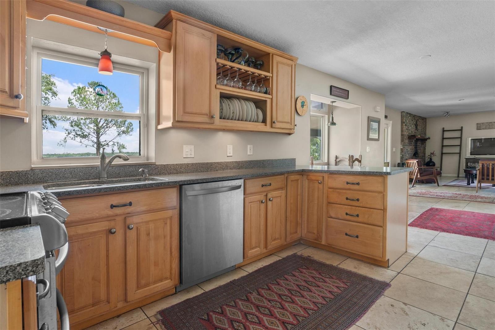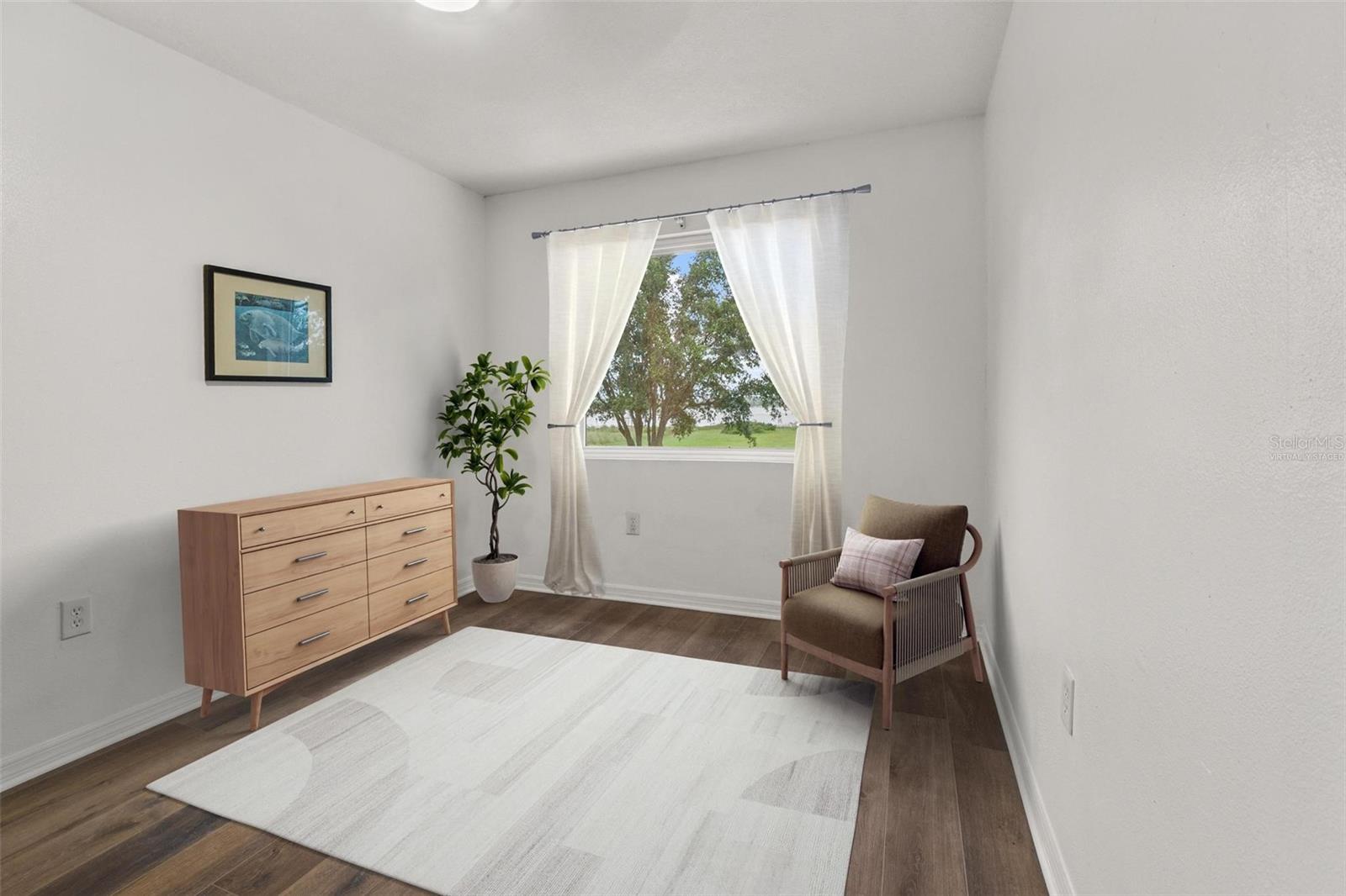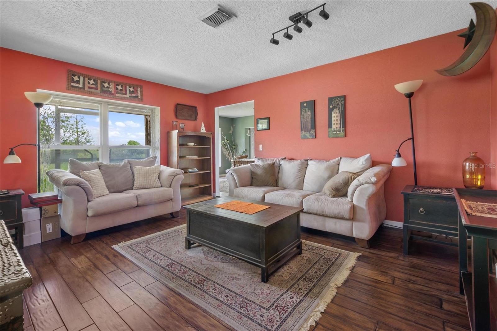 One or more photo(s) has been virtually staged. Discover your dream lakefront oasis on Lake Annie, where breathtaking sunrises greet you each morning and the world feels a million miles away. Situated on a private road, this stunning property boasts 5 acres of lakefront beauty adorned with mature trees, plus an additional fenced and gated 3.5 acres across the road, offering ample space and privacy with room for livestock. As you drive down the winding path, you’ll truly leave the world behind. The home features a natural color PebbleTec pool that seamlessly blends into the landscape, creating a perfect retreat for relaxation. The screen-enclosed pool area allows you to enjoy the crisp autumn breezes without the annoyance of bugs, while the screened front porch invites you to open the doors and let refreshing air flow through the home. Inside, the spacious open floor plan is accentuated by elegant travertine floors and Silestone engineered quartz countertops in the kitchen, complemented by huge windows that flood the space with natural light. The formal living room showcases engineered hardwood flooring, and the family room boasts a charming brick fireplace, creating a cozy atmosphere for gatherings. A formal dining room provides an ideal setting for entertaining. Ascend the extra-wide wood stairway to find an inviting open area crowned with a picture window that frames stunning lake views, where you can also catch glimpses of rocket launches in the distance. The upstairs area features luxury vinyl plank flooring throughout, including an en-suite bath in the master bedroom. This home is equipped with a generator transfer switch and generator for peace of mind, as well as a water filtration system for clean, refreshing water. With tons of storage and three interior rooms that can serve as protective shelters during hurricane season, this property is not just a home; it’s a sanctuary waiting for you to make it your own. Conveniently located just 2 miles from Highway 27, shops, and restaurants, this is the perfect blend of seclusion and accessibility.