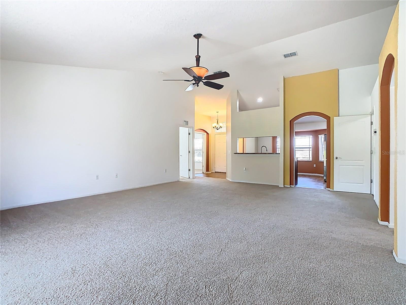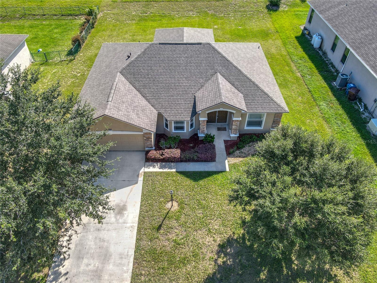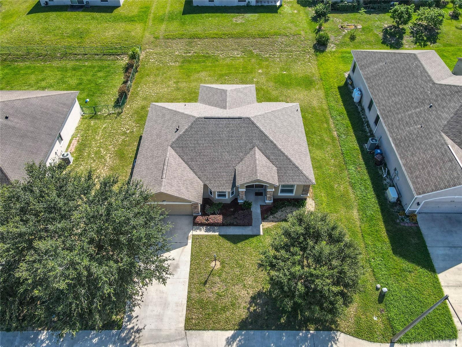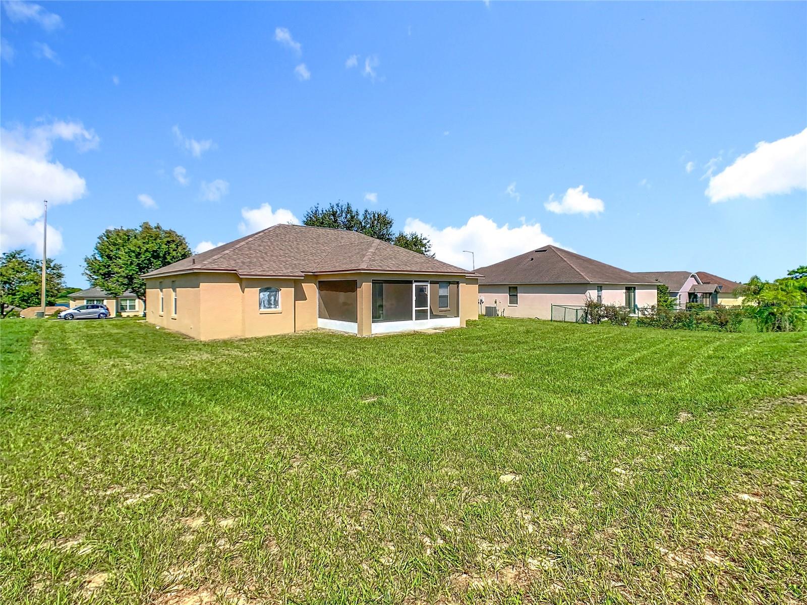 Updated Price!!! The updated price reflects the seller's motivation to sell. Do not miss seeing this beautiful home with a new roof. This model is The Roanoke. As you walk through the door to the foyer, on the left is your kitchen with vaulted ceilings, a pantry, plus a breakfast nook and on the right a nice-sized formal dining room, which you can convert into a fourth bedroom. Walk straight to the extended Great Room (18.8x23.4-with brand new carpet). This particular model is a size upgrade, large enough to accommodate a formal dining room. To the left of the Great Room are two bedrooms with the second bathroom. To the right is a nice size Master Suite with Tray ceiling and crown molding and also a his and hers walk in closets plus the Master bath with a jacuzzi/jet and a separate walking shower. From the Great room you can walk through the sliding doors into the screened lanai and easy to clean ceramic tiled flooring, which is a decent size to relax after a busy day at work. There is also a playground in the community.