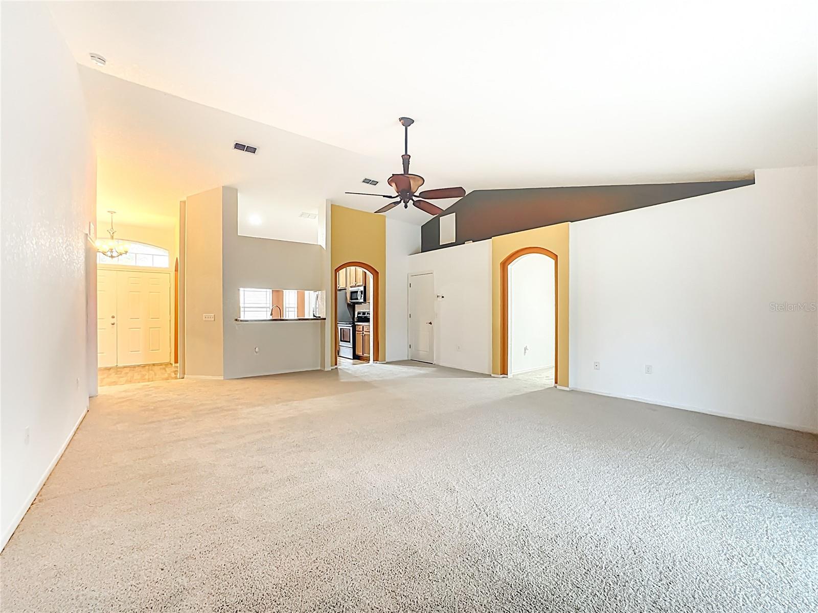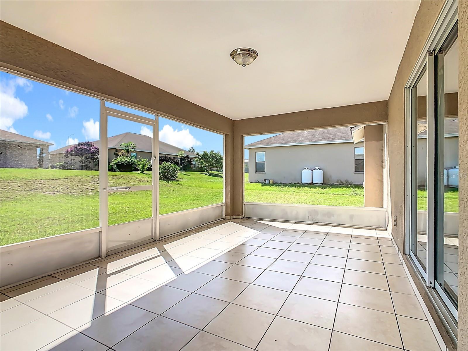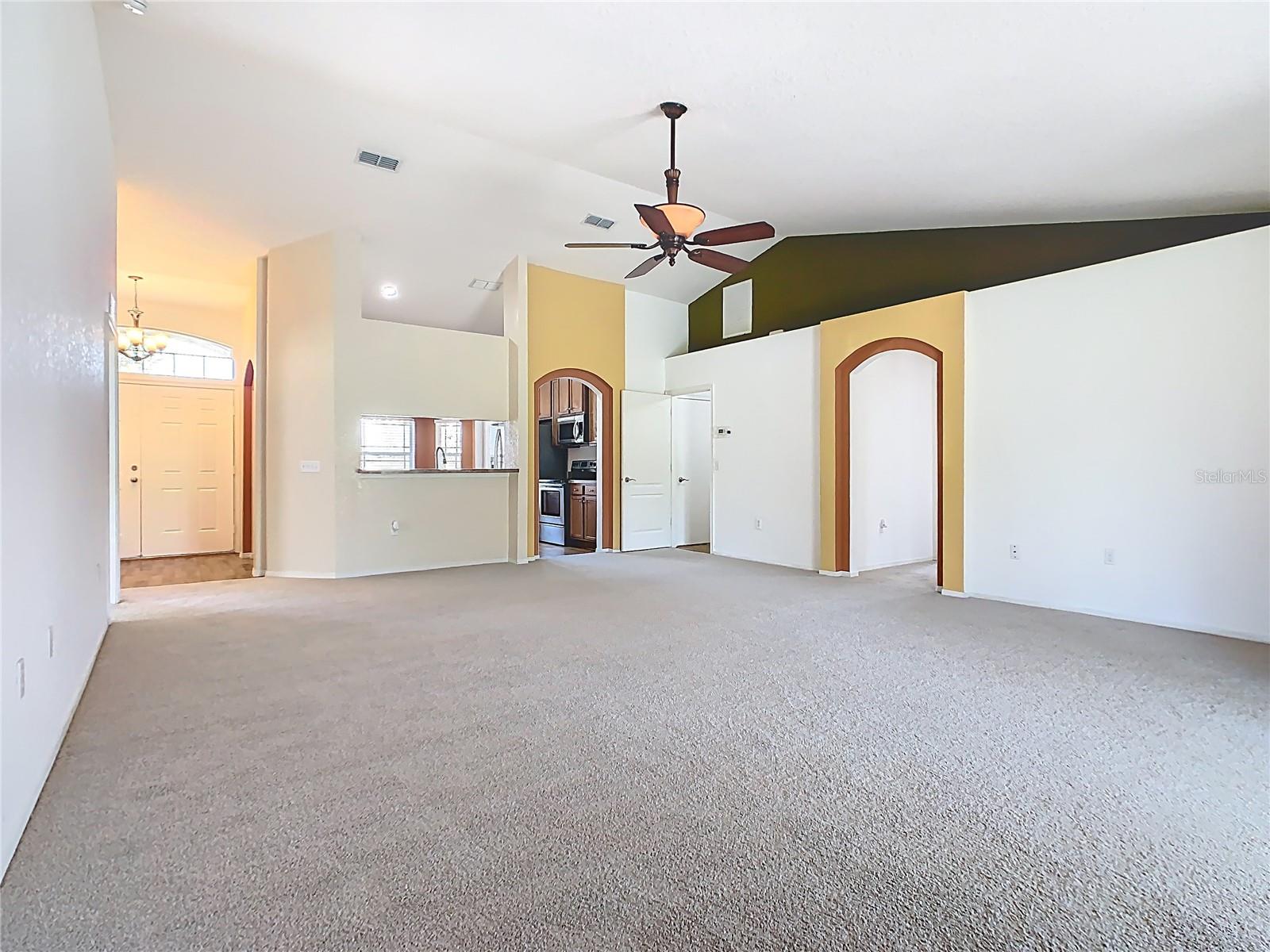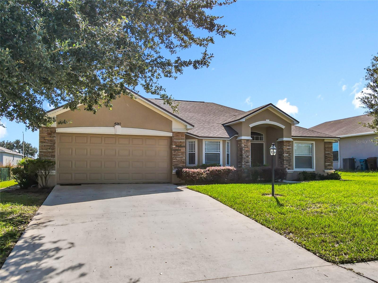 Updated Price!!! The updated price reflects the seller's motivation to sell. Do not miss seeing this beautiful home with a new roof. This model is The Roanoke. As you walk through the door to the foyer, on the left is your kitchen with vaulted ceilings, a pantry, plus a breakfast nook and on the right a nice-sized formal dining room, which you can convert into a fourth bedroom. Walk straight to the extended Great Room (18.8x23.4-with brand new carpet). This particular model is a size upgrade, large enough to accommodate a formal dining room. To the left of the Great Room are two bedrooms with the second bathroom. To the right is a nice size Master Suite with Tray ceiling and crown molding and also a his and hers walk in closets plus the Master bath with a jacuzzi/jet and a separate walking shower. From the Great room you can walk through the sliding doors into the screened lanai and easy to clean ceramic tiled flooring, which is a decent size to relax after a busy day at work. There is also a playground in the community.