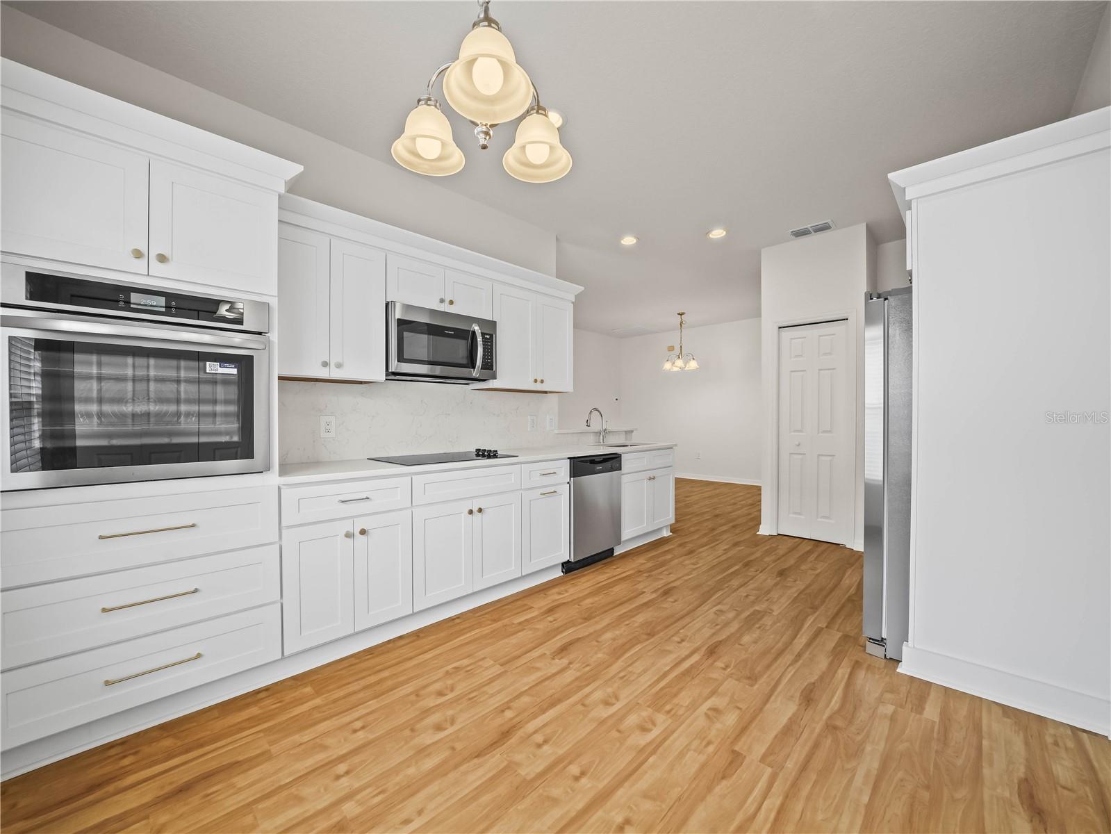 One or more photo(s) has been virtually staged. **** BEAUTIFUL, NEWLY UPDATED HOME with NO BACKYARD NEIGHBORS and CDD DEBT PAID IN FULL**** Retirement at its best in this Beautiful 2 Bedroom, PLUS Den, 2 Bath home located in Lake Ashton, an exclusive 55+ community in Florida. This Essex floor plan home with over 1,500 sq. ft. living area has been remodeled and it shows like a NEW HOME. The list of "NEW" items in the home includes: NEW EXTERIOR PAINT (October 2025), New Flooring in the entire home, New Kitchen, New Primary Bath, New Ceiling Fans, New A/C, New Interior Paint and MORE. As you walk into the large entry foyer thru the beautiful decorative front glass door with glass window above the natural light and elegance allows you to feel the warmth and beauty throughout the entire home. To your right is a pocket door to provide privacy for your guests. Located behind the pocket door is Bedroom 2, Guest Bath and Linen Closet. Bedroom 2 is on the front of the home with large closet space and is conveniently located to the Guest Bathroom. The Guest bathroom features a NEW COMFORT HEIGHT VANITY, NEW QUARTZITE COUNTER TOP, NEW MIRROR, NEW FIXTURES, TOILET, and NEW TILE surrounding the Shower/Tub Combo. There is a linen closet in the hallway with shelving for your storage needs. The common living space in the home features a formal dining area, kitchen, and living room. The space flows seamlessly together and is ideal for entertaining. The living room features triple sliders that provide natural light into the home and provides access to the covered/screened lanai. The bright and spacious, remodeled kitchen has an elegant QUARTZITE countertop and backsplash, soft close cabinets with crown molding, soft close doors and drawers, stylish brass hardware, stainless steel appliances, one compartment sink, glass cook top, built in wall oven and pantry. The built in wall oven is very convenient, and the cook top is ideal. The Den has a pocket door and is located directly off the formal dining area. The Den could be used as an office, craft room or additional bedroom. You have options! The spacious Primary Bedroom Suite with large walk in closet is the perfect retreat after a long day. Located on the back of the home, you'll enjoy the private view of the conservation area. Grab a book and glass of wine and step out into the covered, screened lanai directly from the Primary Suite by opening the Double Glass Sliders. The Primary Bath has a NEW COMFORT HEIGHT VANITY with DUAL SINKS, SOFT CLOSE DOORS/DRAWERS, QUARTZITE COUNTER TOP, NEW MIRRORS, NEW TOILET and NEW TILED SHOWER AREA. The washer/dryer are located behind the bi-fold doors in the kitchen. There's a lot to LOVE about this home. The garage has a wash sink and there is a separate side door entry. The roof was replaced in 2021 and the Hot Water Heater was replaced, too. Lake Ashton has 2 clubhouses, an indoor pool and outdoor pool, hot tubs, sauna, 2 restaurants, two 18 hole golf courses, bocce ball, pickleball, tennis, movie theatre, bowling alley, billiard room, craft rooms, cards, media center with library and so much more. Make your appointment today to tour this BEAUTIFUL home in Lake Ashton and discover the 55+ lifestyle you've been waiting for.