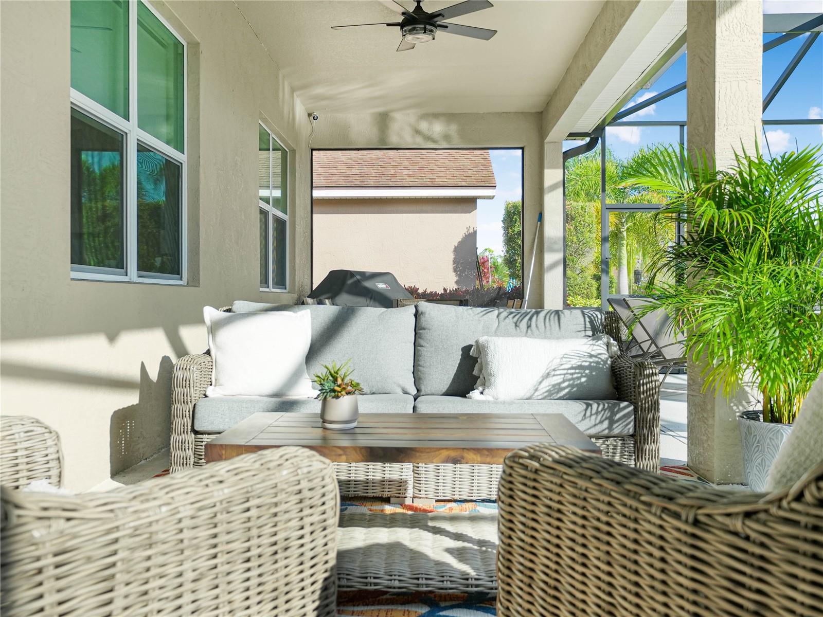 Discover this charming "Wellington" home positioned on a spacious corner lot with heated salt pool. You'll be wowed when you tour this well designed home located in Lake Ashton. This generously sized home with over 2,064 sq.ft. living area is one of the few homes in Lake Ashton with an In-Law Suite; a true gem. The Open and Spacious Entry with soaring ceilings, gray wood-grain tile plank floors & elegant double arches is Warm & Inviting. You'll appreciate the natural light that filters through this home with premium upgrades. From the entry of this home you have an unobstructed view of the expansive Living Room & Outdoor Pool Area. To the right of the front entry is the Den and to your left is the Formal Dining area. The triple glass slider in the Living Room provide a seamless transition to the outdoor entertainment area, a sizeable covered, screened lanai with swimming pool. The water feature on the pool is calming. The DRY BAR with mini refrigerator, extra counter/cabinet space makes entertaining fun and easy. The chef of the house will enjoy the spacious Kitchen with Granite counter tops, 42" cabinets, Stainless Steel Appliances, Breakfast Bar and Eat-In Dining Area. A separate Island with drawers and cabinets is ideal for food prep/display. It's a huge win! The lighting fixtures over the kitchen bar and eat in dinette area are stylish and upgraded. The PRIMARY SUITE is a perfect retreat! The custom carpet, His/ Her closets with organization systems, Dual Vanity with Quartz Countertop, Large Soaking Tub, Walk In Shower with Glass Door & Separate Toilet room are upgrades you will truly appreciate. Pour a glass of wine and grab a blanket and close the pocket doors on the cozy den. You can tailor this space to fit your lifestyle. It could be a reading nook, additional television room or even formal sitting area. @@ Let's talk about the In-Law Suite!!!! It's located behind a pocket door to ensure privacy for your overnight guests. The In-Law Suite currently features a Guest Bedroom that overlooks the fabulous pool area, Guest Bath with comfort height vanity with Quartz countertop, walk in shower with glass enclosure and a Sitting Room with TV, Refrigerator, Sink and Microwave. The sitting room could be utilized as a bedroom, craft or hobby room. You have options in this space. The salt water pool with screened enclosure is heated and has a light display. It's surrounded by mature landscape and the additional lighting in the landscape is perfect for nightly entertainment with friends and family. The laundry room has beautiful modern storage cabinetry and is accessible from the garage. The washer/dryer will convey with the sale of the home. The washer is a stacked dual washing machine. Additional upgrades include a Nest Thermostat, Separate Irrigation Meter, Landscape Lighting in the front and back of the home, Hanging storage racks in the garage and MORE. Lake Ashton is a gated and guarded Florida Active Community with resort style amenities (2 Clubhouses with Movie Theater, Restaurant, Outdoor/Indoor Pools, Fitness Centers and More! Residents enjoy activities like Karaoke, Trivia, Dances, Entertainment Series, Holiday Events and so much more. You can stay busy living the Florida Retirement Dream every single day. For those that love the game of golf, there are 2 18-Hole Golf Courses, a Pro Shop, Driving Range, Putting Green and the Eagles Nest (Hole 19). Don't wait to tour this home; tour it today!